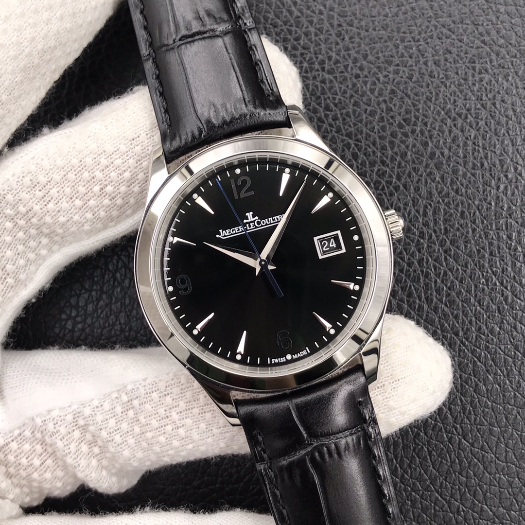ZF Jaeger-LeCoultre Master Series Q1548420. As one of the slimmest replica watches, with a thickness of only 8.5mm (synchronized with the genuine product) 9015 movement, watch size 39mm. Both front and back are made of sapphire crystal glass. The watch is elegant and stylish, with a simple and slim wearing effect. The black dial paired with elegant dauphine hands highlights its exquisite beauty. The 12 hour markers are made using an applique process (matching the original). When buying Jaeger-LeCoultre, trust ZF. ZF products are always top quality.