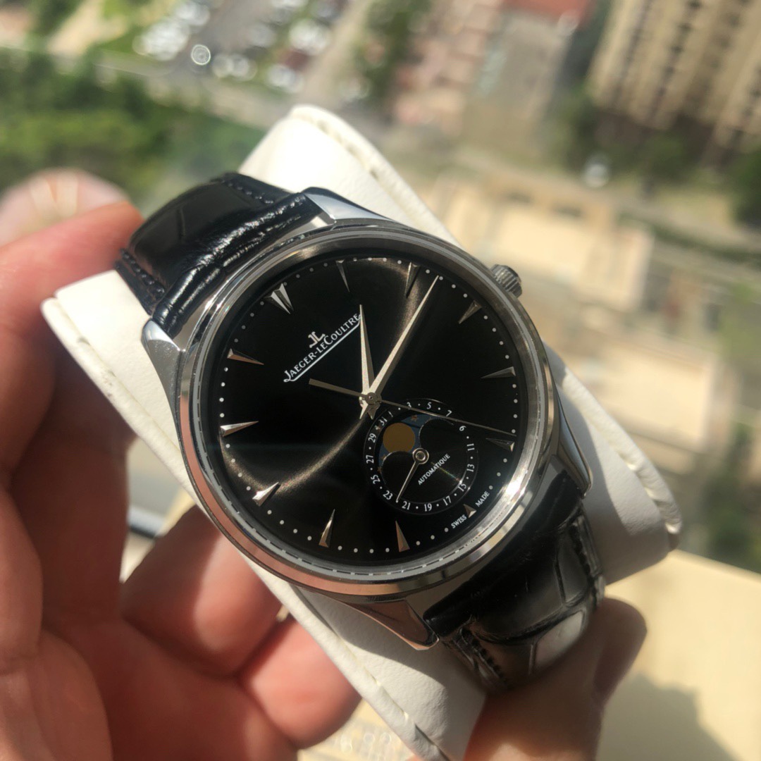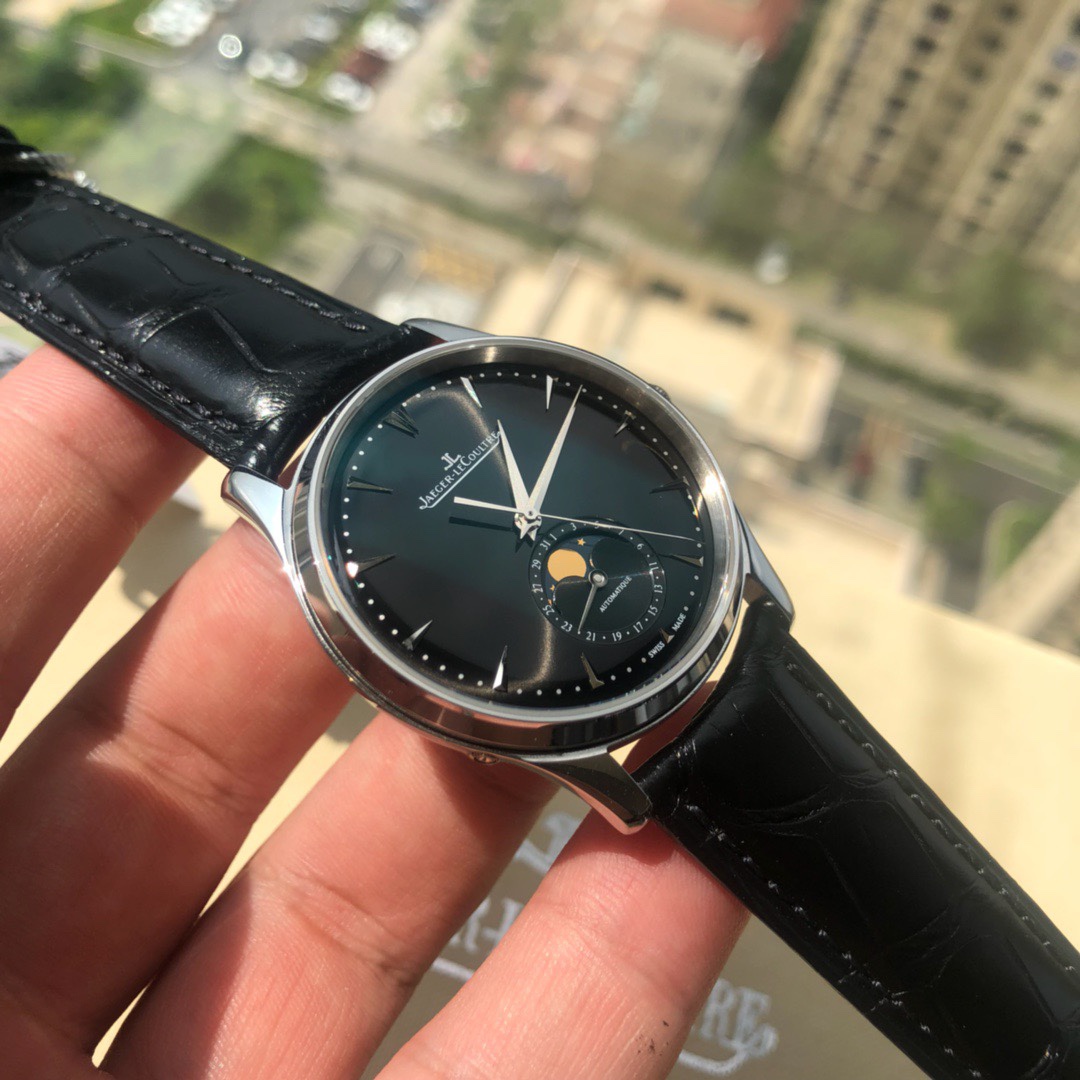 Special channels, great products are coming. [Long accumulation leads to a grand release - the annual masterpiece] Jaeger-LeCoultre Master Moon Phase series, case diameter 39mm x 9.9mm, synchronized with the original. Equipped with Jaeger-LeCoultre genuine crocodile leather strap. The sub-dial at 6 o'clock features dual displays for the Gregorian and lunar calendars (moon phase). The moon phase completes one cycle per month, with functions identical to the genuine product. [Technical breakthrough] Uses 9015 to replace the Jaeger-LeCoultre self-produced cal.9251 movement, with functions 100% synchronized with the original self-produced movement. Stable timekeeping, reliable quality. Three codes unified, one watch one code. [Detail breakthrough] Observing the watch dial from the side reveals a slight curvature. Achieving this effect required time-consuming and laborious adjustments to the mold multiple times, ensuring the charm and feel can rival the original. The Jaeger-LeCoultre Master Moon Phase fulfills all your beautiful sentiments towards the moon phase.