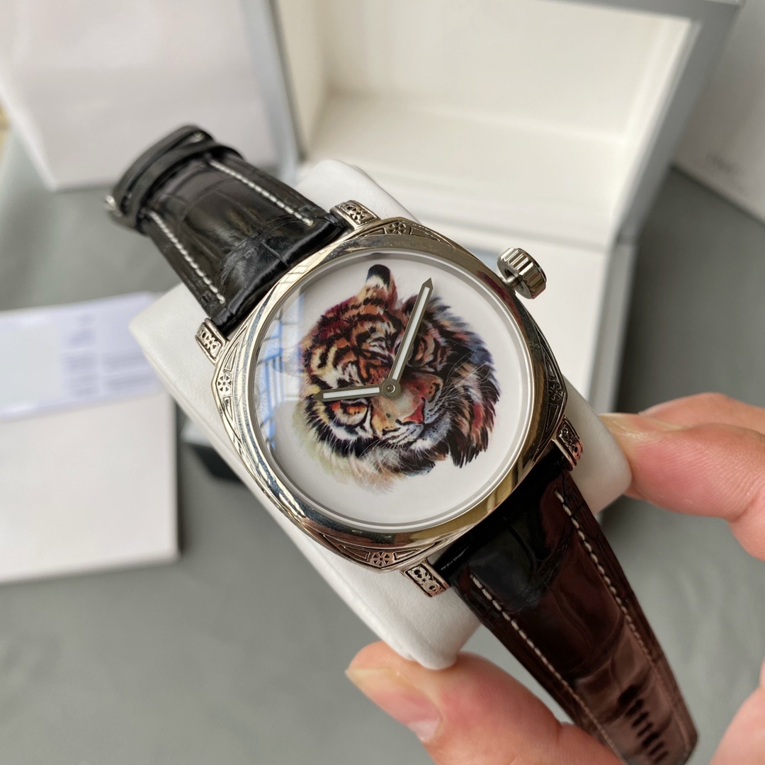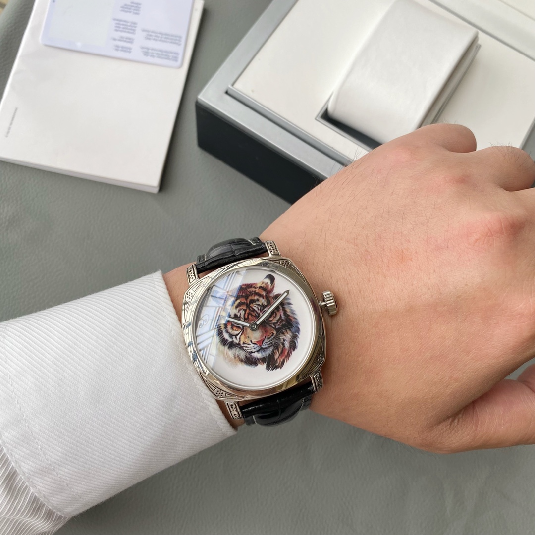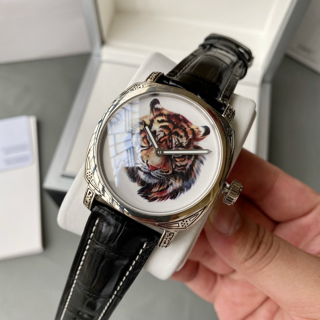 【Dial】Unique hand-painted dial featuring brave lions and leopards. One dial takes a master of arts and crafts 3 days to complete, showcasing exceptional craftsmanship.