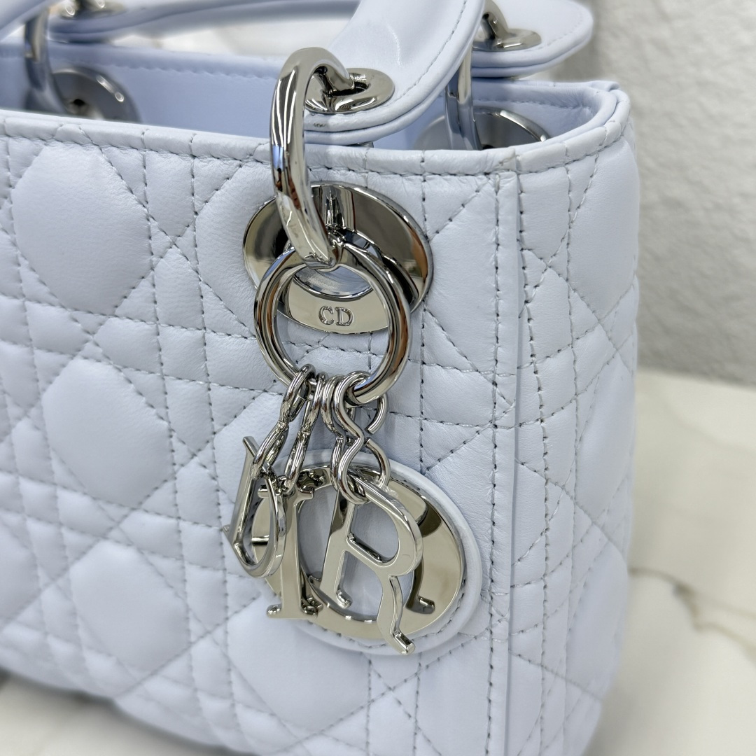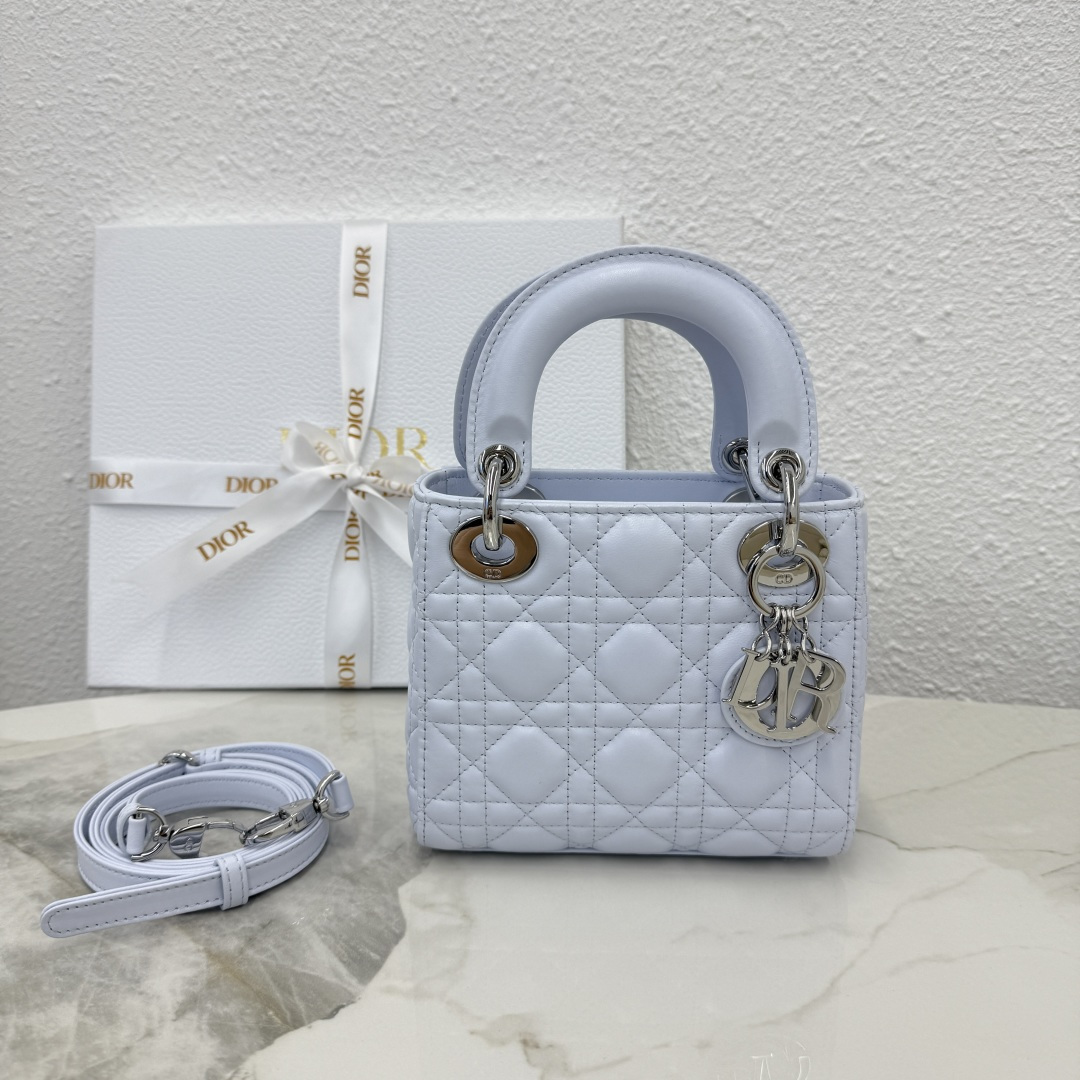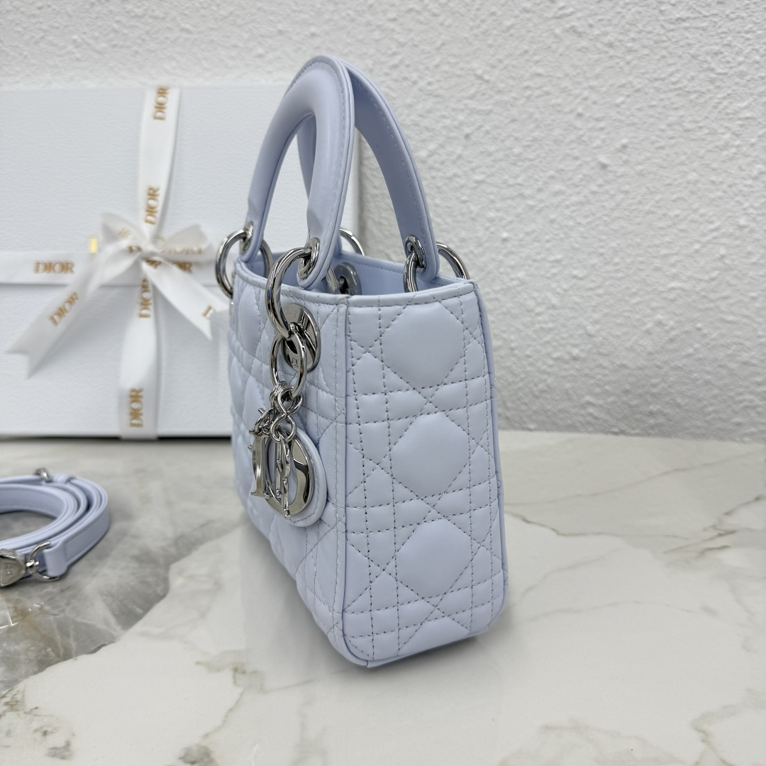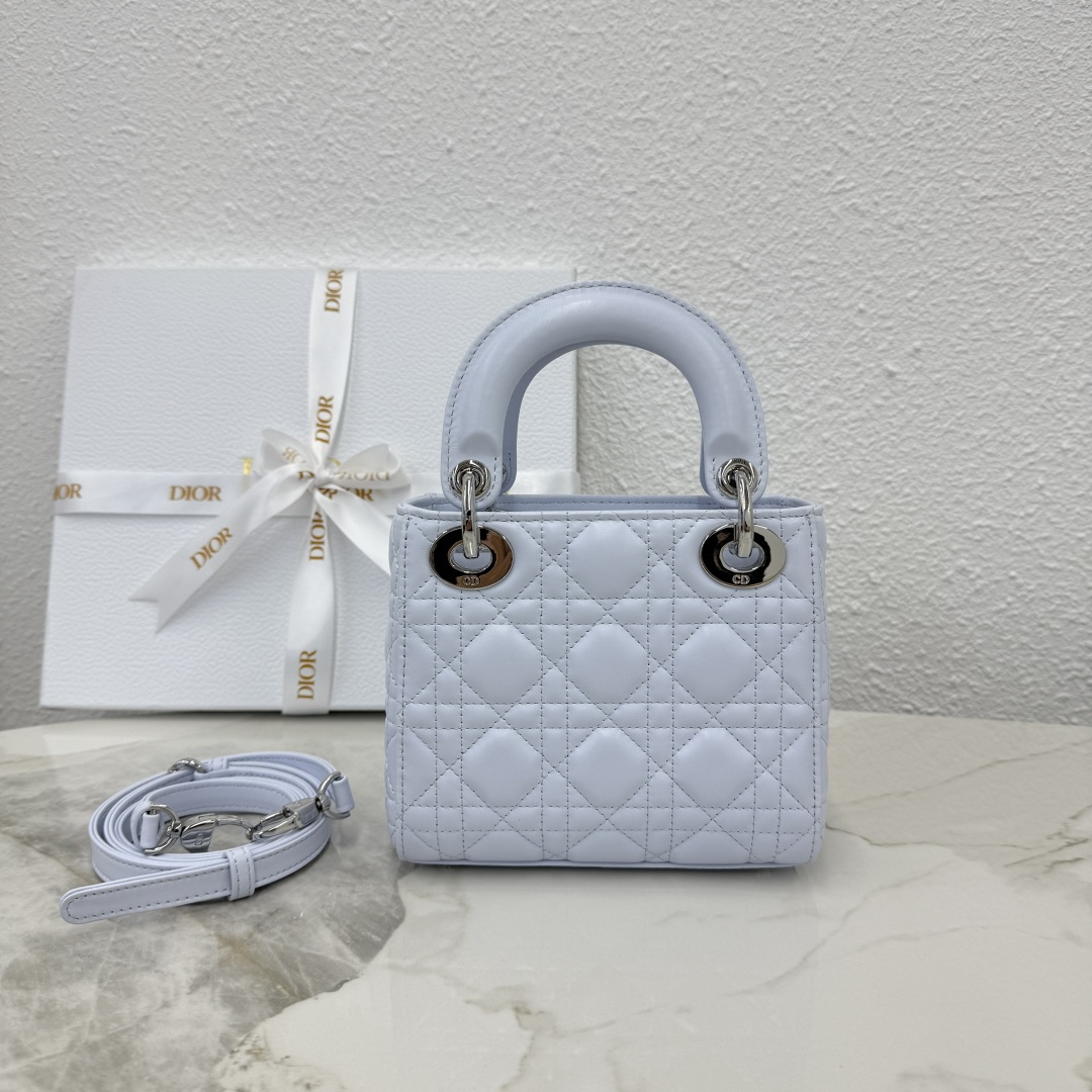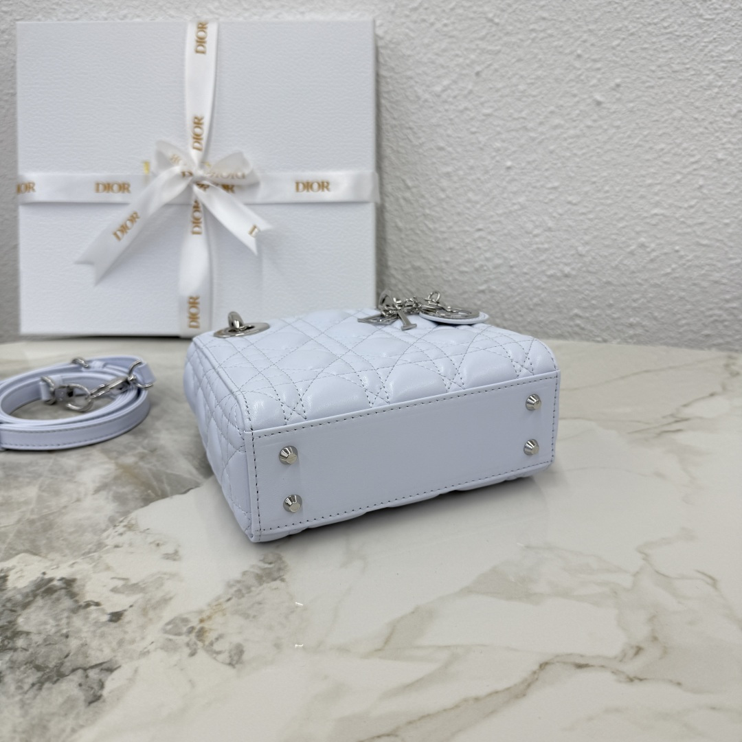 Dior micro lady bag three-grid lambskin glacier blue