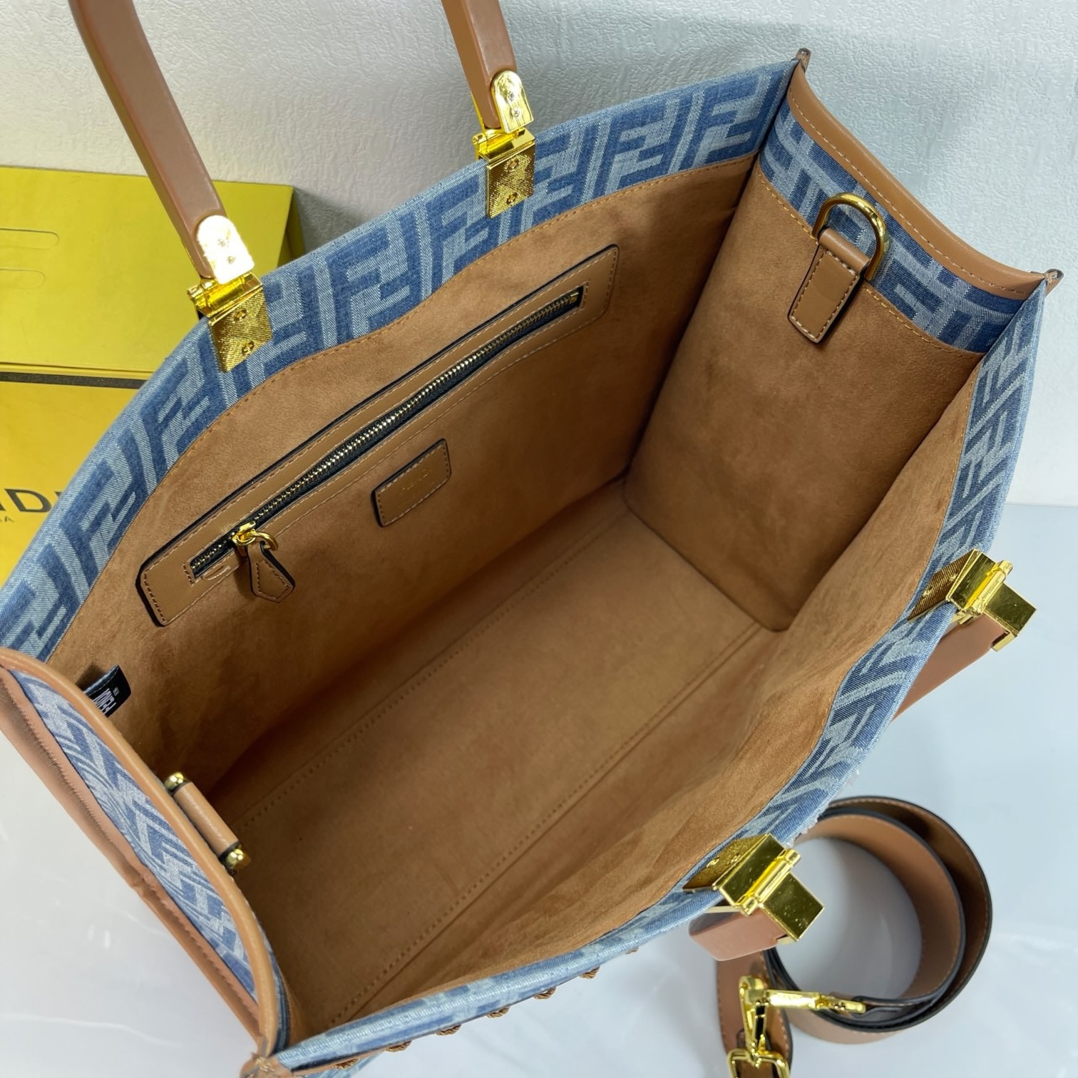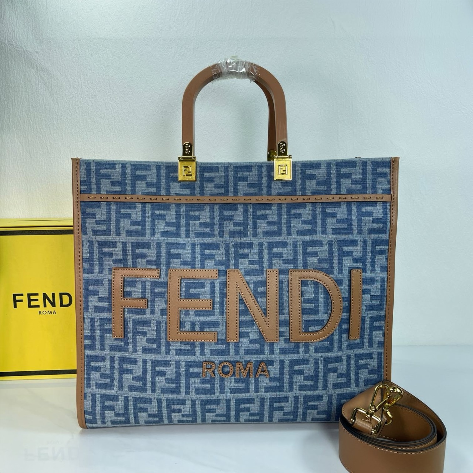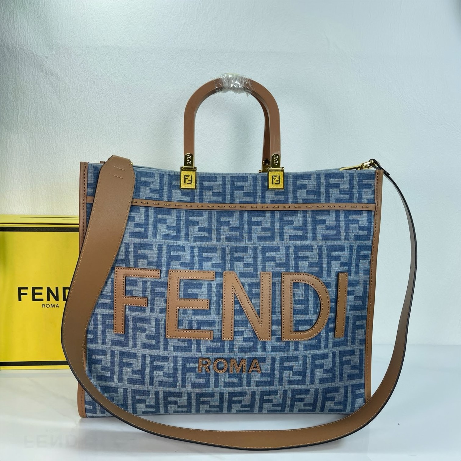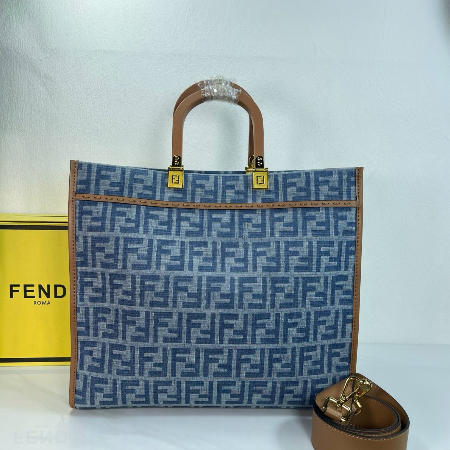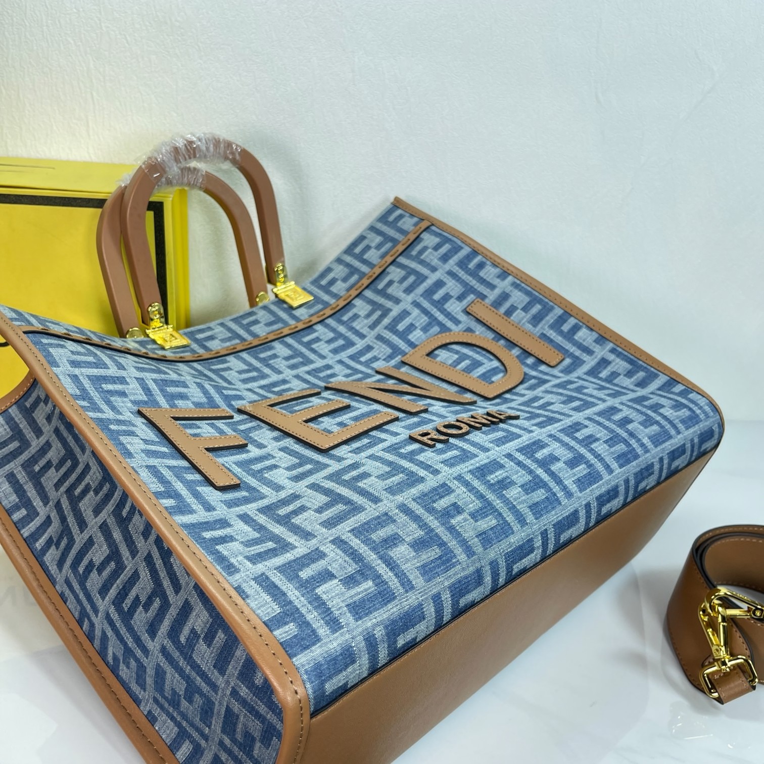 Factory direct sales, new 0FÉŃĎI TOTE tote bag "Sunshine Handbag". Classic double-F denim body, amber double handles are the biggest highlight of the entire bag. Carrying it alone exudes strong presence and doesn't hurt the hands. The overall retro vibe is very strong and comes with a long shoulder strap, perfect for fashion lovers who adore the retro style. Highly recommended hard product!