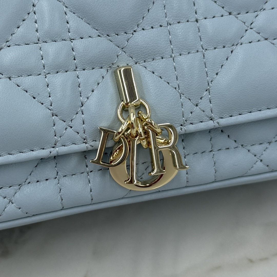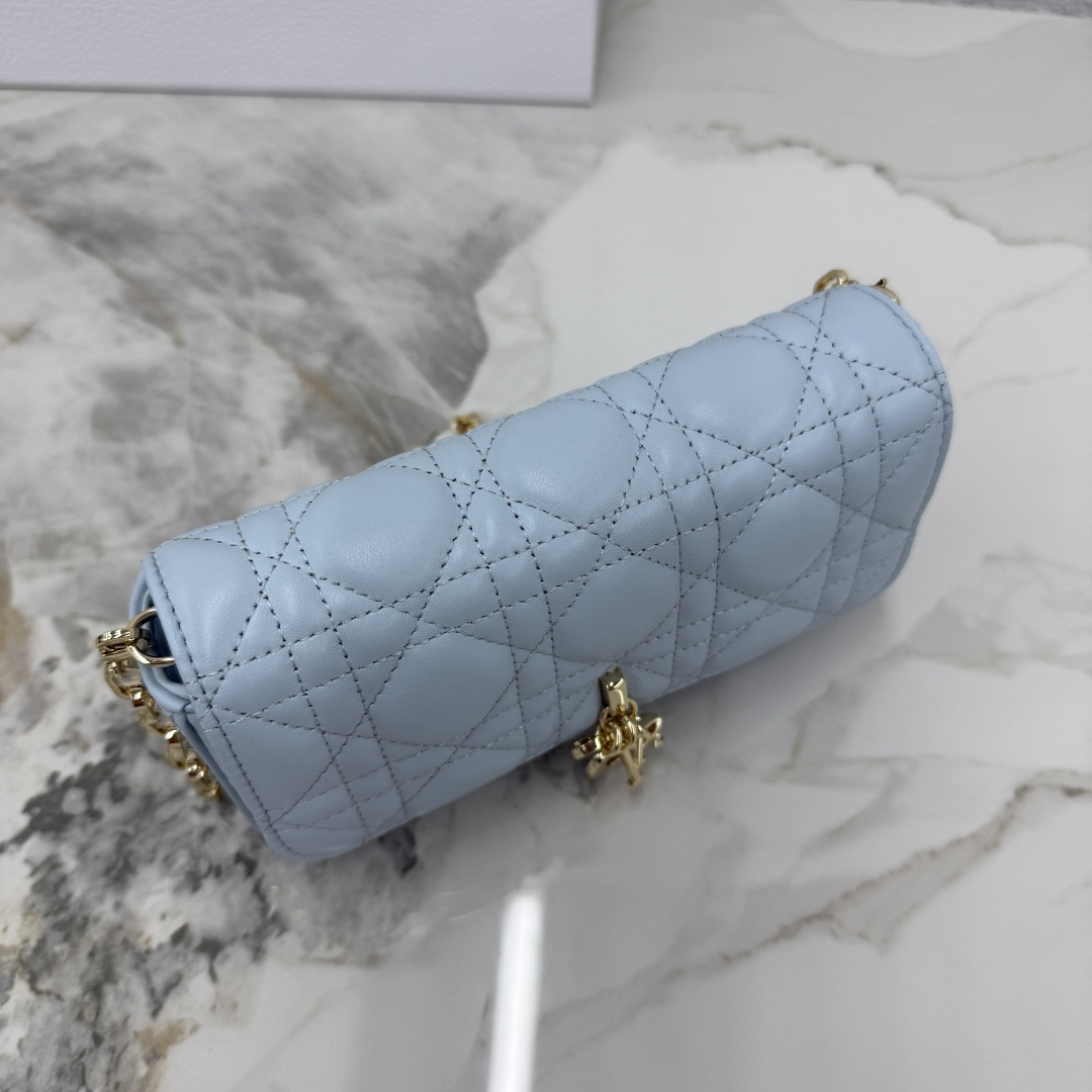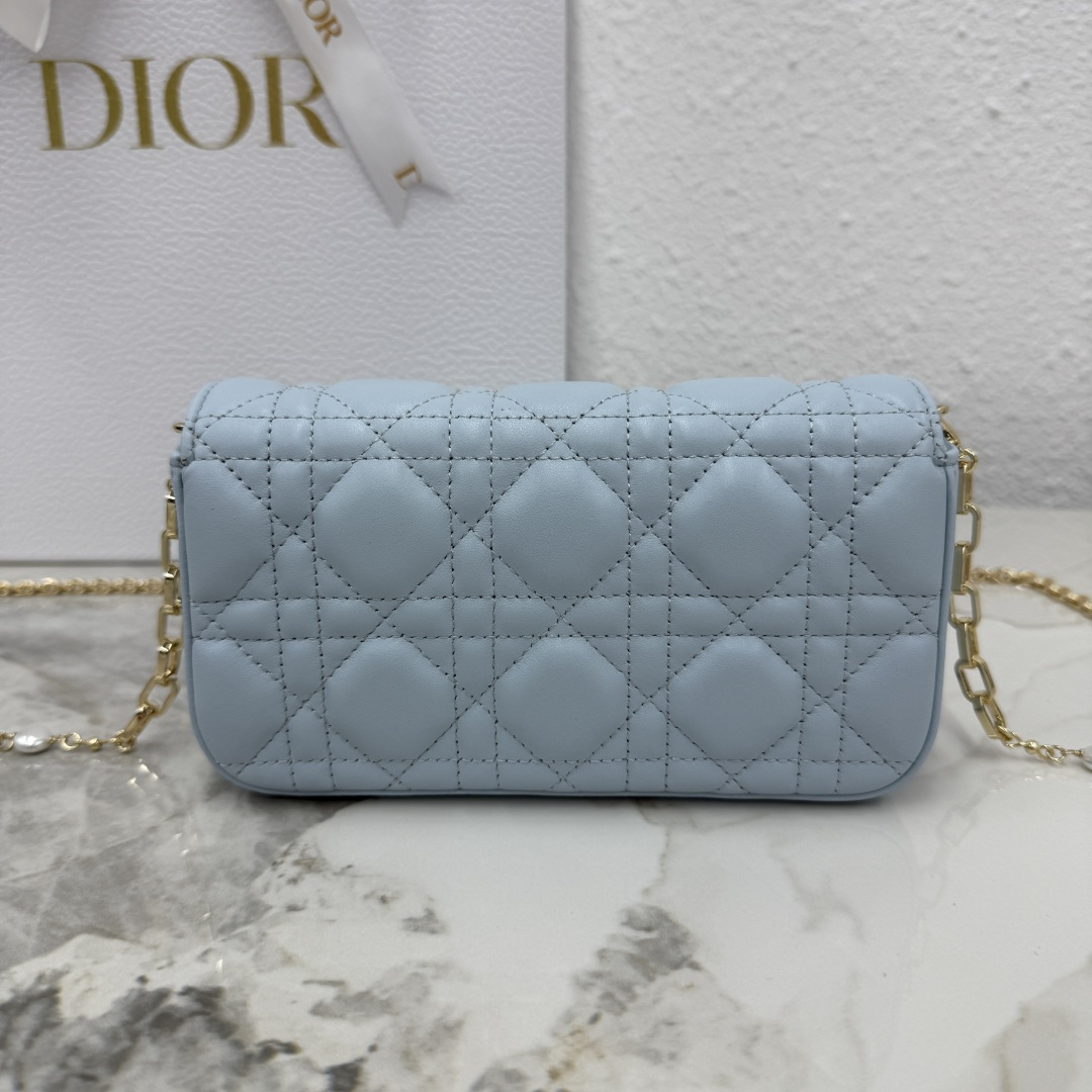 My Dior - Dior Talk phone pouch is elegant and exquisitely crafted. Made from carefully selected lambskin in space blue, it features a cannage pattern and a light gold-finish metal D.I.O.R. charm. The elegant design includes a removable chain adorned with resin beads, allowing it to be carried by hand, on the shoulder, or across the body.