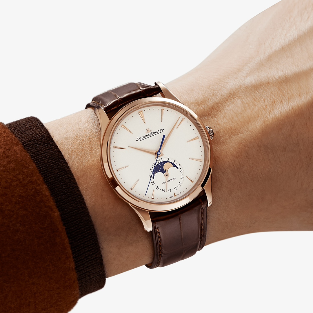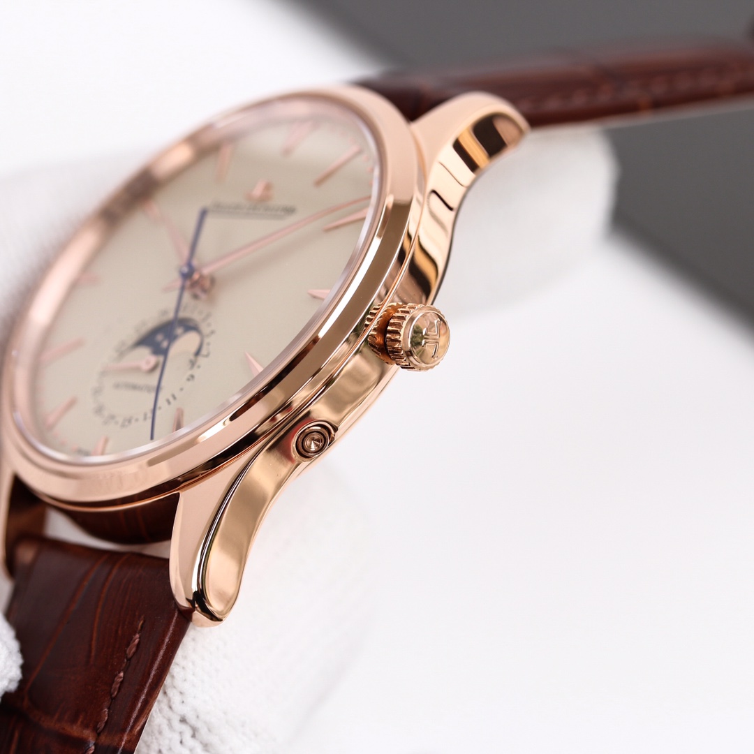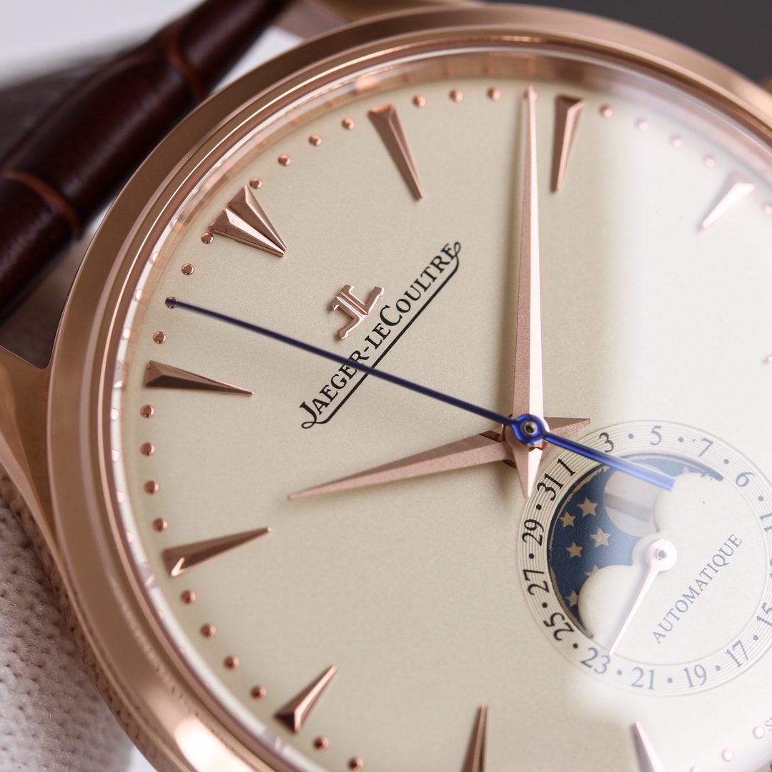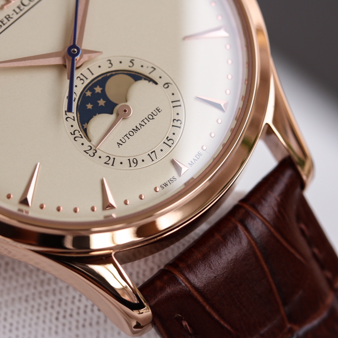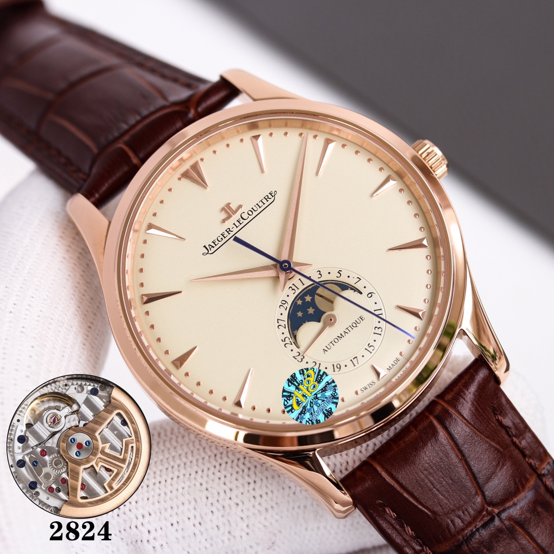 H8 Jaeger-LeCoultre Master Series (Classic Moon Phase) equipped with Cal2824 modified/9015 modified movement, diameter 39mm! 316 stainless steel perfectly replicates the original master, transparent sapphire crystal glass, exquisite yin-yang mother-child hands, flash silver wire panel, imported platinum scales from Taiwan, Italian calfskin and original butterfly clasp, all showcasing elegance and delicacy comparable to genuine boutique products! Meticulously crafted, enjoy luxury, exclusive quality.