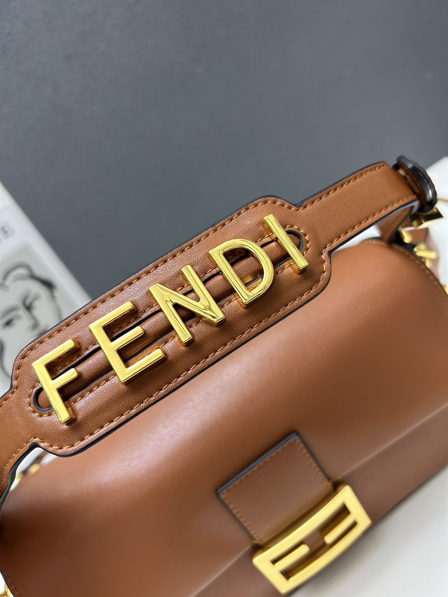 Factory direct sales, volume price. Official website's latest Fendi limited edition baguette first release! Collaboratively launched the classic medium Baguette bag, uniquely made from classic smooth calfskin. Wrist strap adorned with Fendi lettering, delivering a refreshing visual feast! Cover hardware perfectly combines with the bag's calfskin body. Bag comes with a detachable handle and long shoulder strap. Wrist strap paired with long shoulder strap can be extended! Can be carried by hand, single shoulder, or cross-body, meeting daily needs! Comes with packaging box, full of premium feel. Model 2366 Caramel, dimensions 27-6-15. Place order + WeChat [Hi881689]
