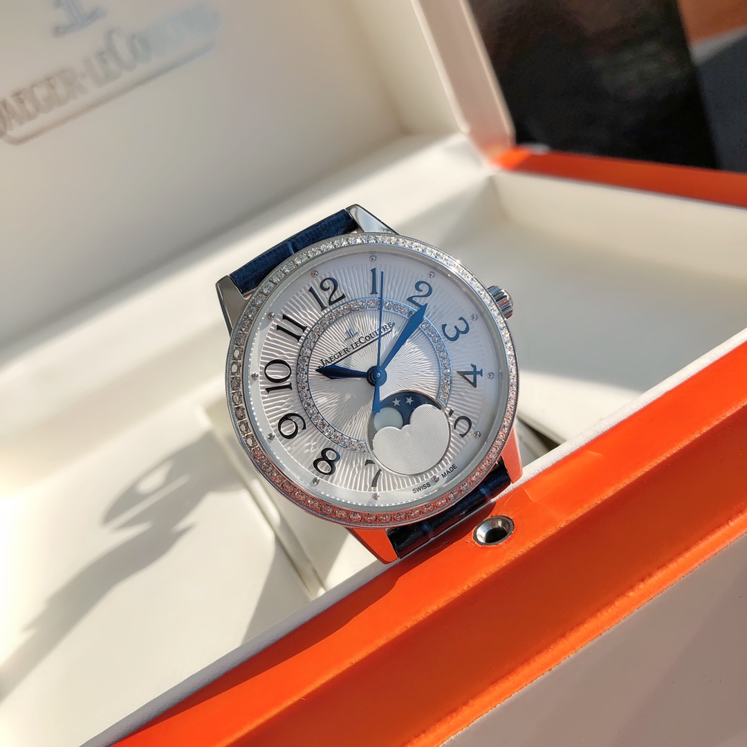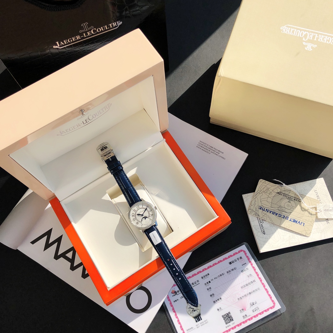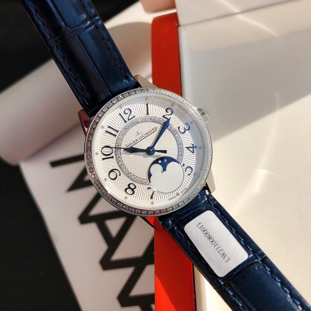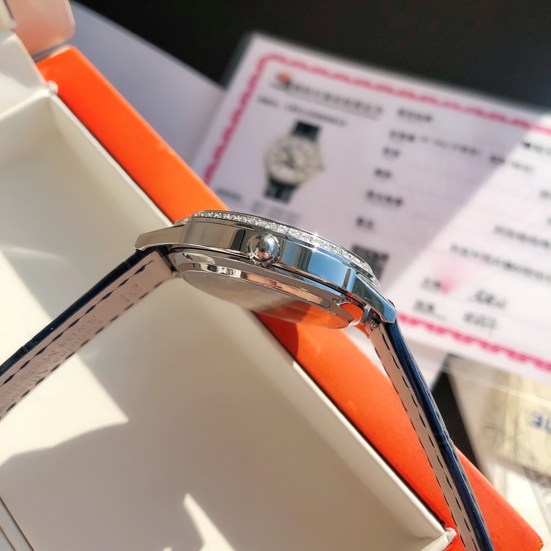 Simple and elegant, fully displaying romantic charm! Watch size 34MM / thickness 8.9MM, the bezel is set with a total of 60 VS1.5 top-grade natural South African diamonds weighing 0.69 carats. Buying diamonds at this price is worth it! Each one is hand-set. The setting work is rigorous, built with high cost. Corrects all shortcomings of any current market versions, the simple and sleek case is finely polished to ensure the polishing craftsmanship matches, with texture synchronized to the genuine product. Restores the most beautiful style of the genuine product! Uses a 9015 modified Jaeger-LeCoultre self-produced CAL.898A movement, perfectly achieving the original calendar day and night star optional / hour, minute, second change functions, closely following the original replica! Stable timekeeping, quality assured! Exactly the same as the genuine product, electric light blued hands shine brilliantly in the sun. Italian calfskin is lightweight and breathable, with excellent texture, paired with Jaeger-LeCoultre's classic folding clasp. Equipped with a national inspection agency testing certificate, original gift box, lifetime warranty, perfect recommendation for gifts or personal use!