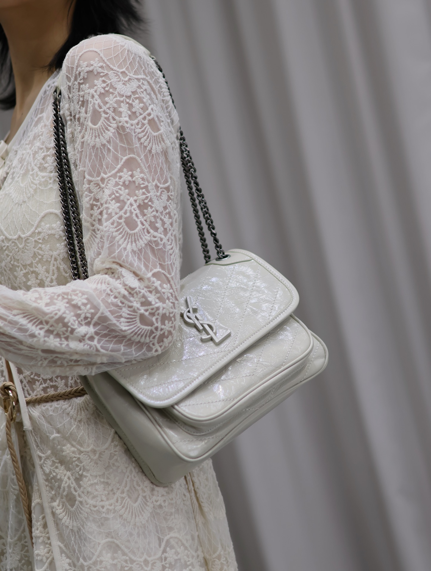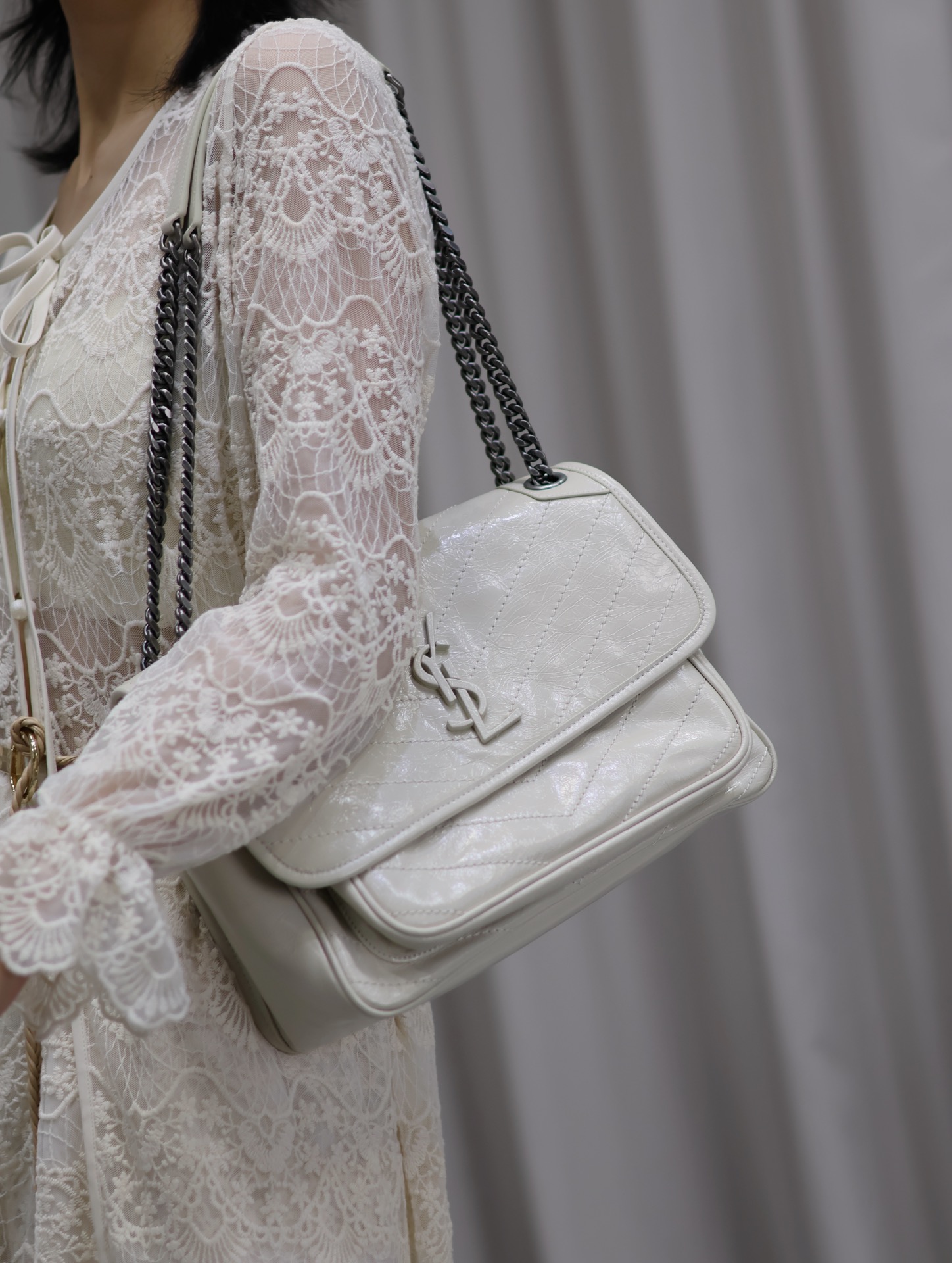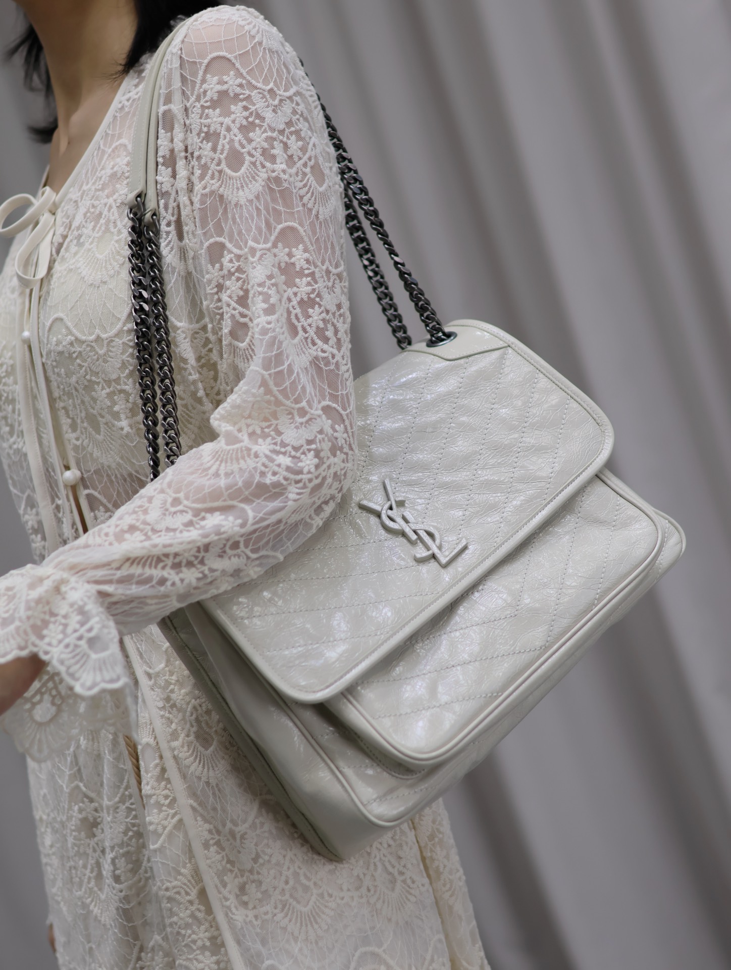 YSL Saint Laurent Niki, Milk White Waxed Leather, 22/28/32cm