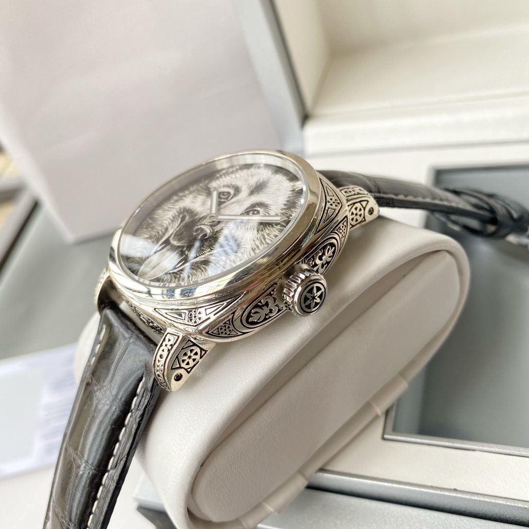 [Dial] Unique hand-painted dial featuring a brave lion and leopard. One dial takes a master of arts and crafts three days to complete, showcasing exceptional artistry.