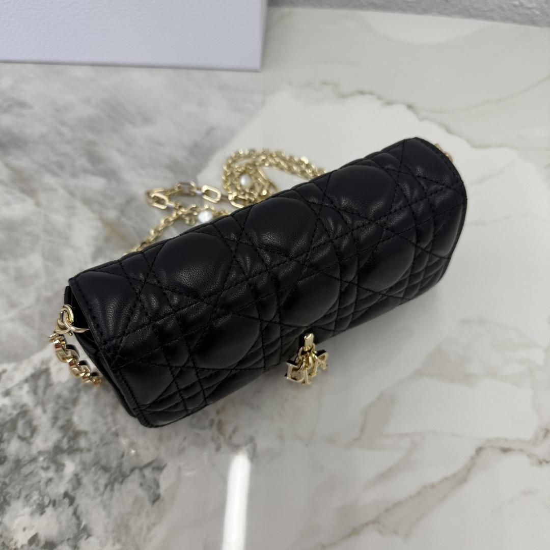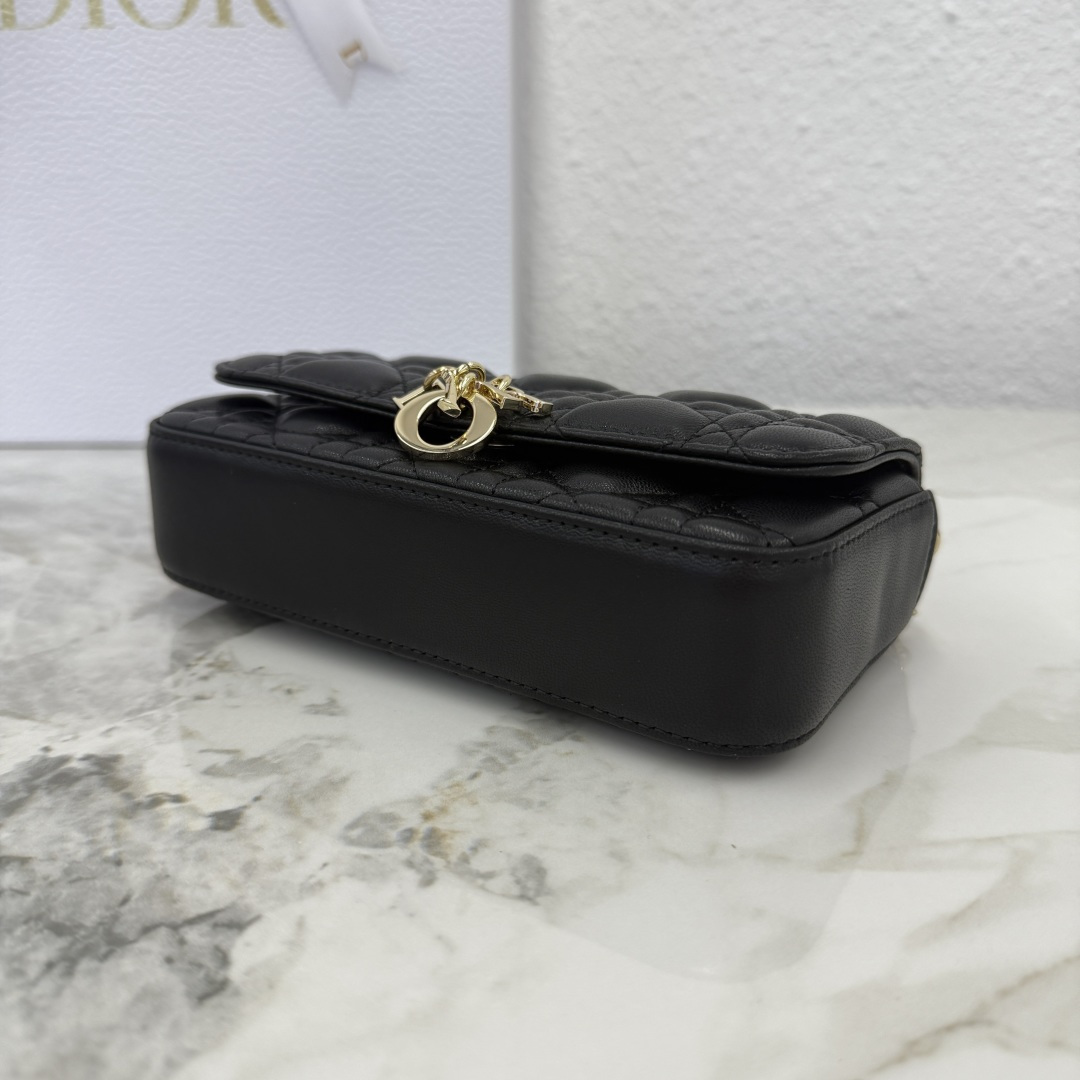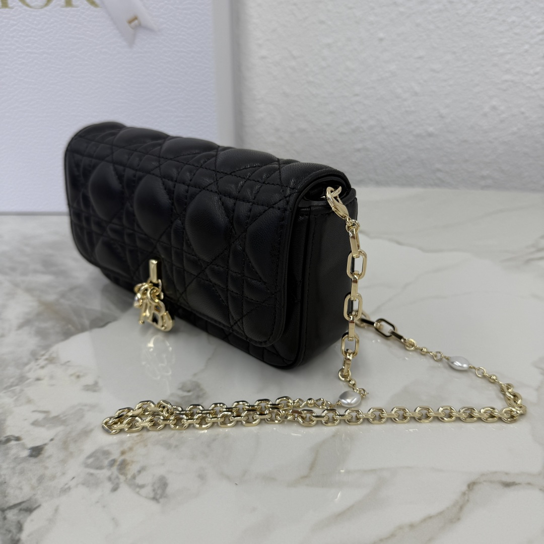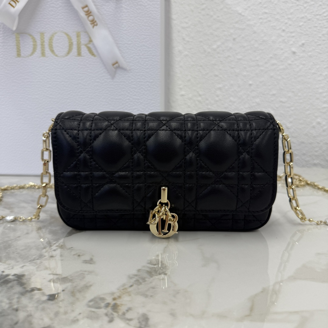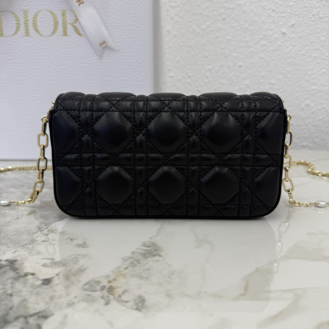 My Dior - Dior Talk phone pouch features an elegant and exquisite style. Meticulously crafted from sheep leather in a beige color, adorned with a cannage pattern and complemented by a light gold-finished metal D.I.O.R. charm. The elegant design includes a detachable chain decorated with resin beads, allowing it to be carried by hand, over the shoulder, or across the body.