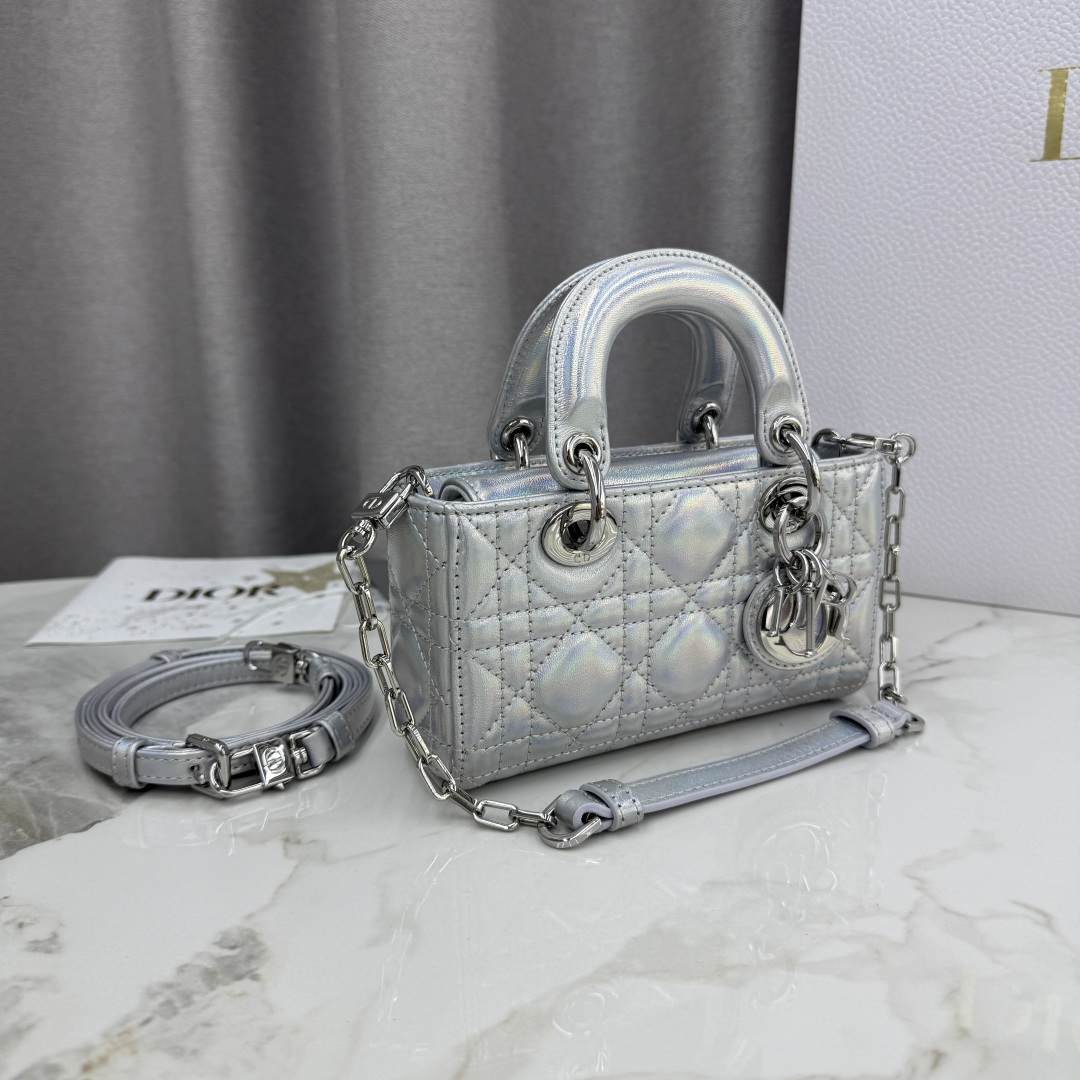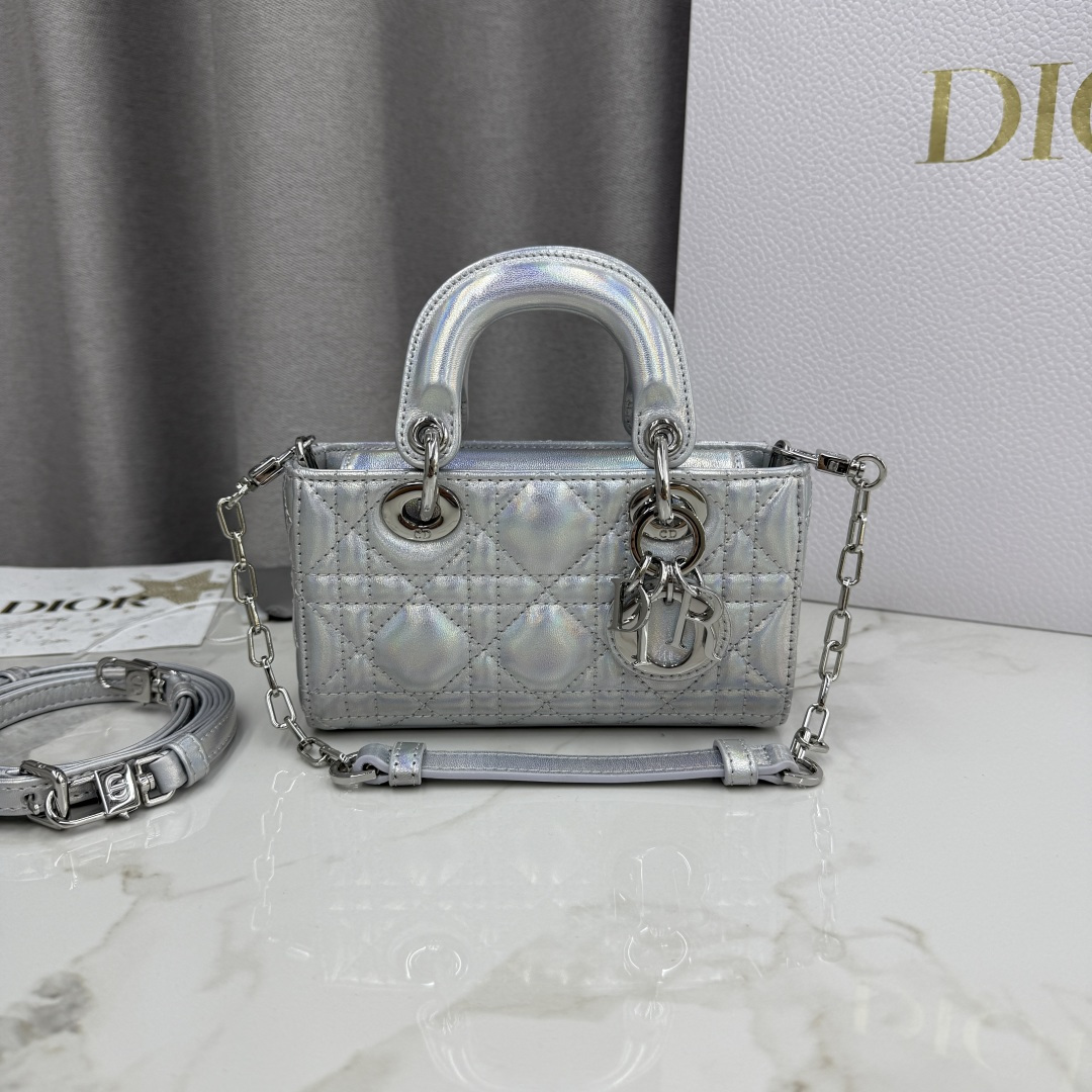 The new Lady D-Joy handbag interprets Dior's profound insight into elegance and beauty. The elegant and classic style is meticulously crafted from imported patent leather embroidery thread, featuring the brand's classic Cannage pattern. It is enhanced with a light gold-finished metal D·I·O·R charm, adding a touch of dynamism to the exquisite silhouette. Equipped with a detachable chain shoulder strap and an adjustable, detachable leather shoulder strap, it can be carried by hand, on the shoulder, or across the body, making it an ideal choice for everyday goddesses.