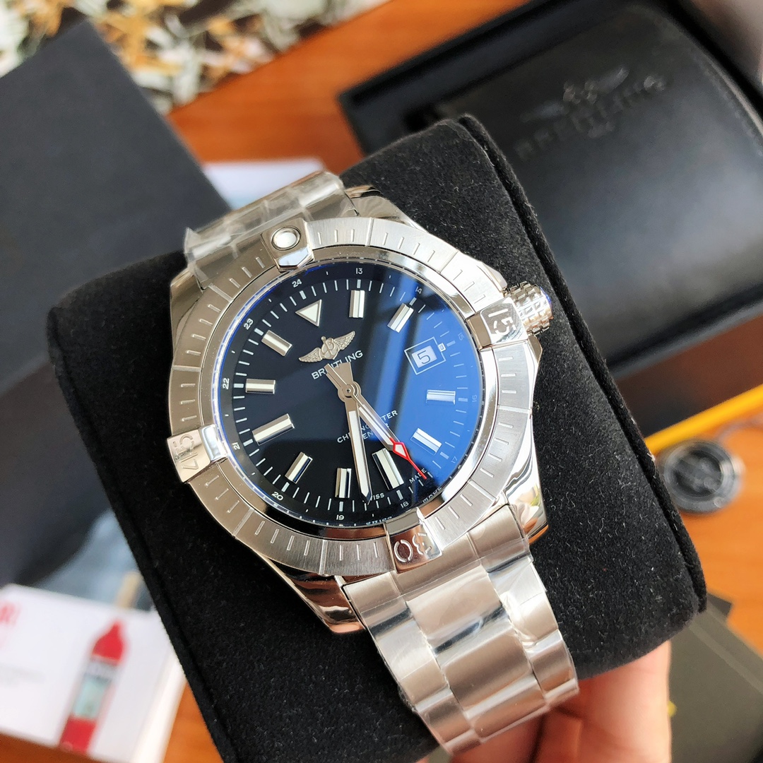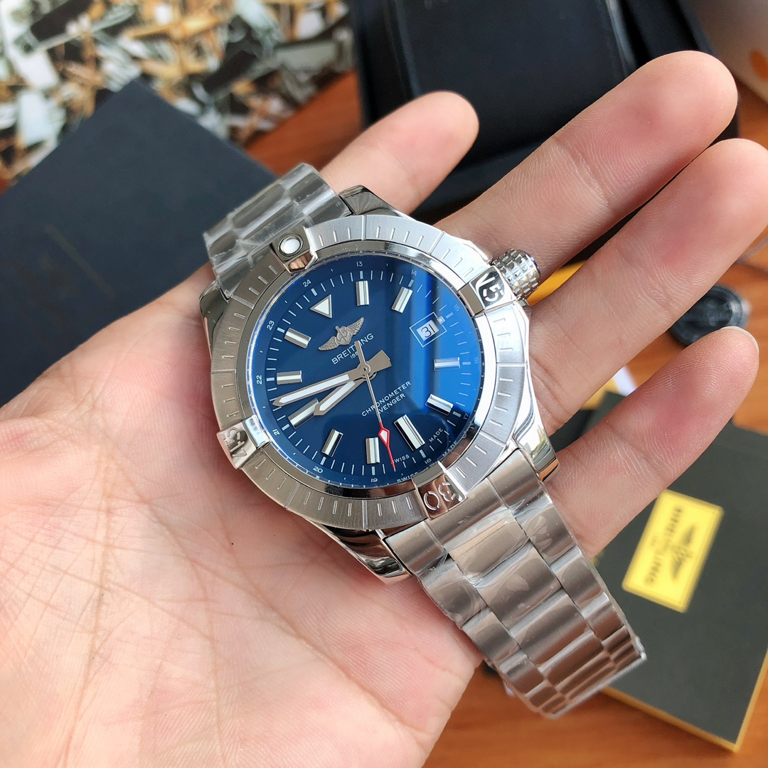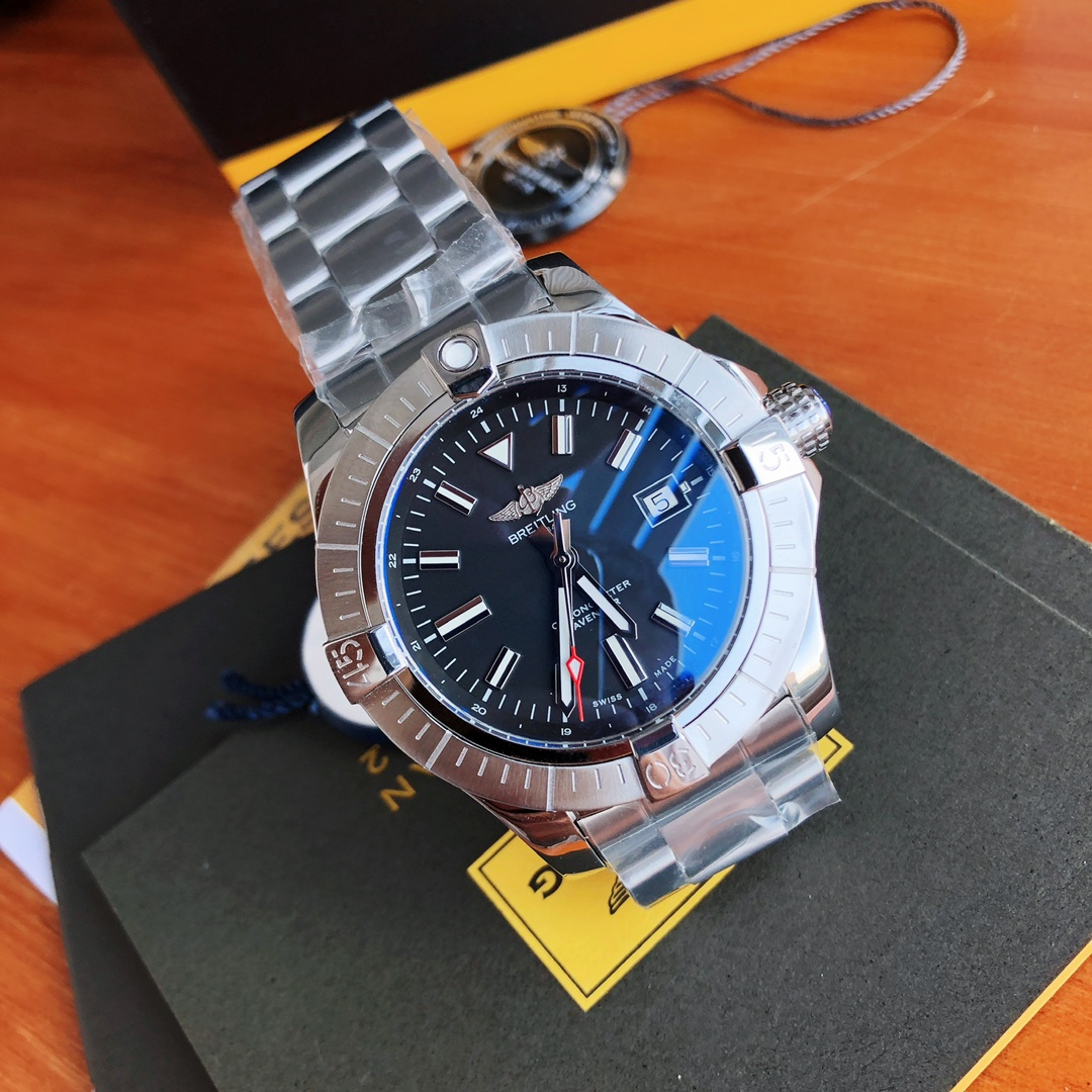 This Breitling Avenger watch features a robust stainless steel case with a diameter of 43 mm and a water resistance of 200 meters (660 feet). It is equipped with an automatic movement certified by the Swiss Official Chronometer Testing Institute (COSC), perfectly showcasing the youthful, dynamic, and invincible spirit of the Challenger series. The satin-brushed bezel includes four distinctive bezel indicators, ensuring optimal operability while effectively protecting the double-sided anti-reflective sapphire crystal. The dial is available in black, blue, and silver-white, all adorned with large luminous hands and hour markers.