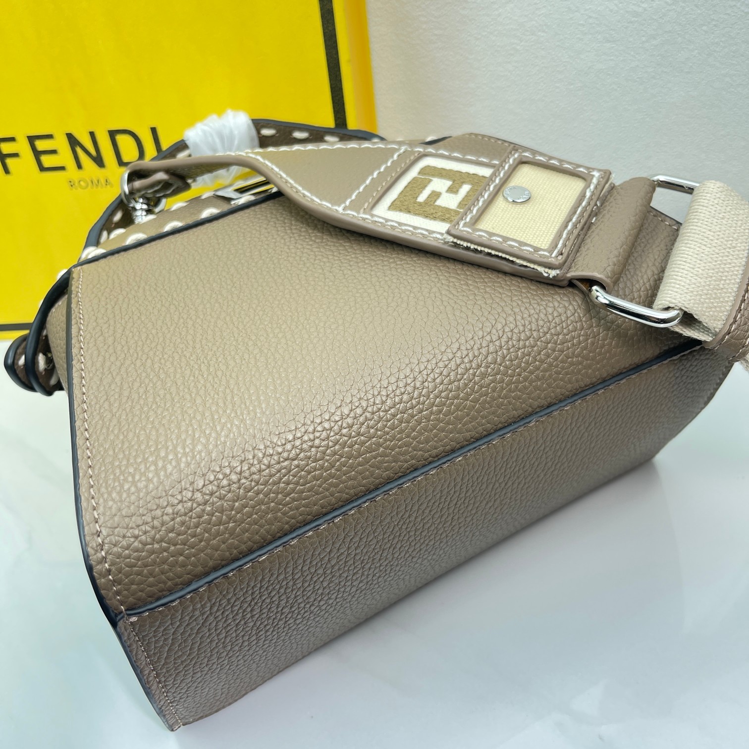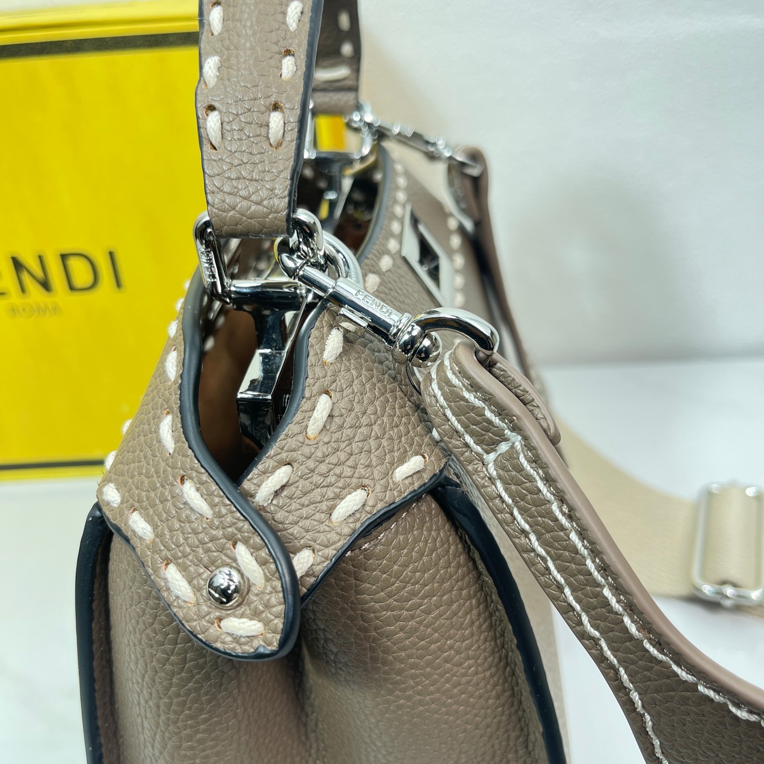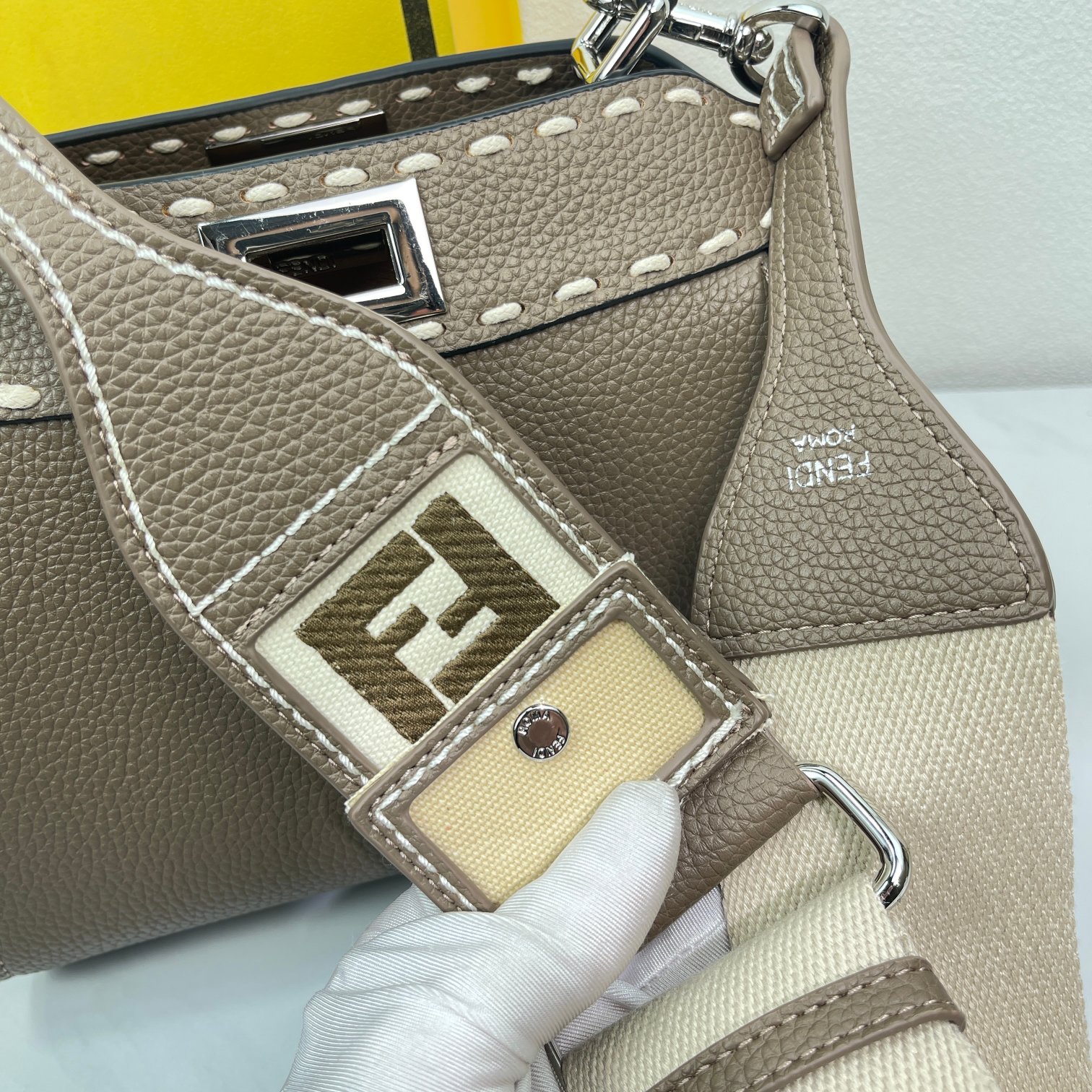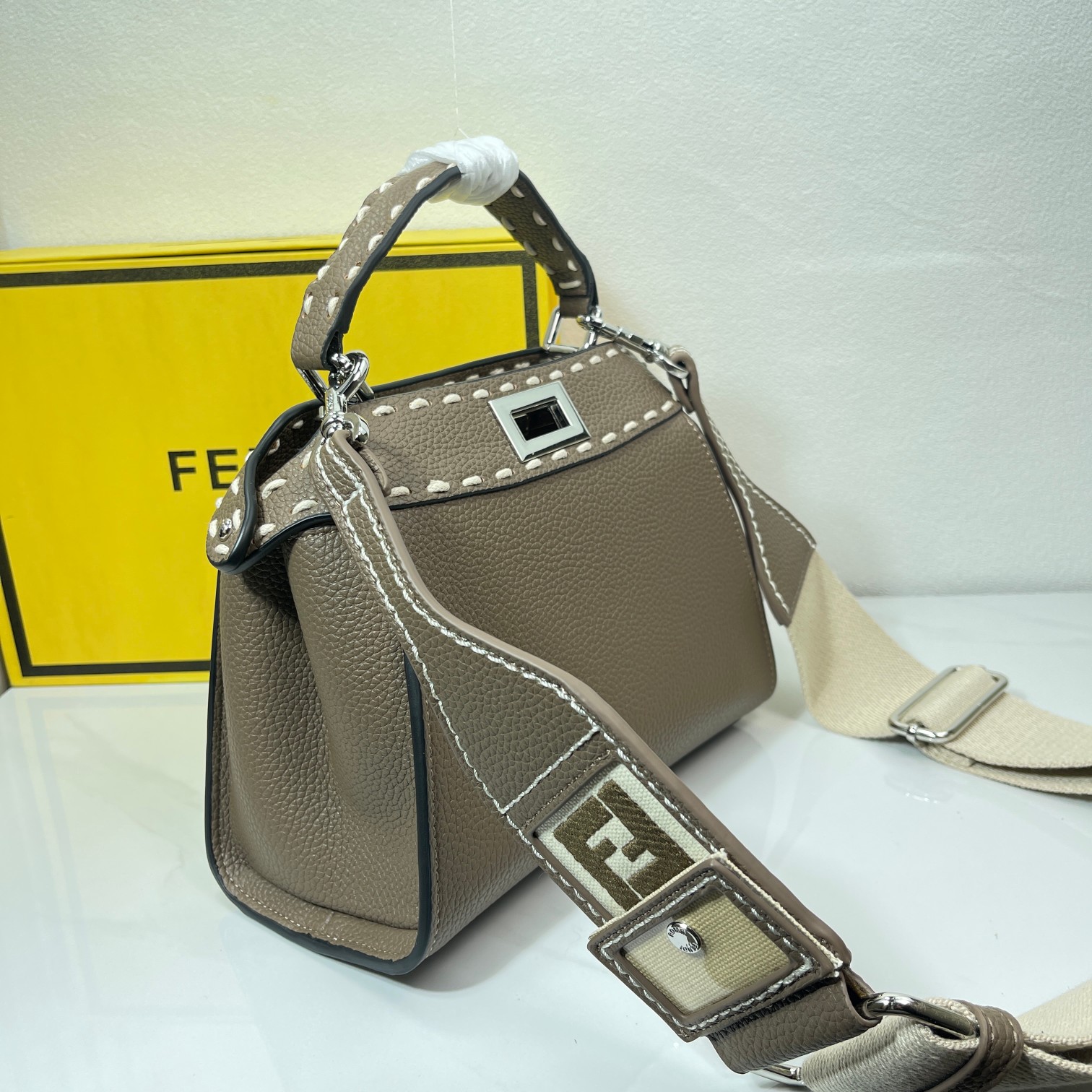 Factory Direct Sales Fendi Iconic Peekaboo Handbag, Full-Grain Leather Material, Hand-Stitched, Both Sides Adorned with Classic Twist Locks. Tonal Full-Grain Leather Lining, Two Compartments Separated by a Rigid Divider, Featuring an Internal Zippered Pocket and Silver Metal Hardware. The Handbag Comes with a Handle and an Adjustable, Detachable Shoulder Strap, Can Be Carried by Hand, on the Shoulder, or Cross-Body. Dimensions: 23×18×11cm