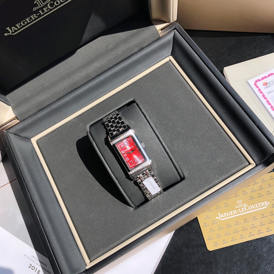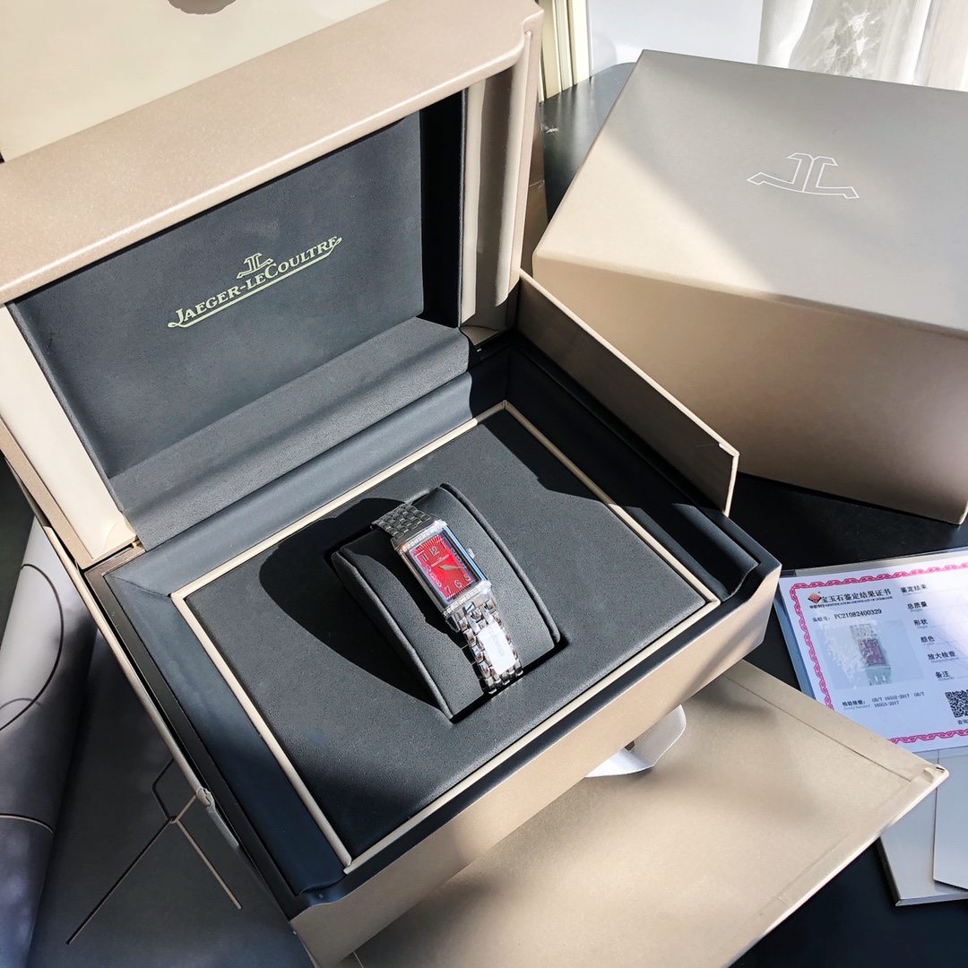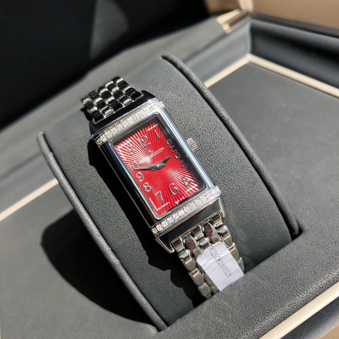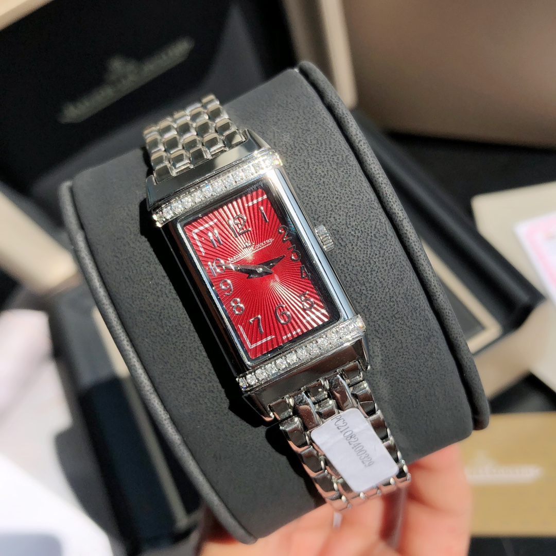 The Jaeger-LeCoultre Reverso watch features a dial set with 26 VS-grade full-cut diamonds. It comes with a GTC inspection certificate—one watch, one certificate. Equipped with an imported Swiss quartz movement. The upgraded German 316 stainless steel version adopts delicate and slender line design with pure manual brushing craftsmanship. The stunning and eye-catching rectangular design captures the heart at first sight. It interprets the Reverso One series with a blend of softness and boldness, creating a fashionable piece full of personality—the new ladies' Reverso One watch. Its charm is irresistible. The rectangular case, classic decorative engravings, elegant Arabic numeral hour markers, dauphine hands, and the lacquered dial surrounded by two rows of brilliant-cut diamonds—all reinterpret the aesthetic elements of the classic model in Jaeger-LeCoultre's iconic Art Deco style.