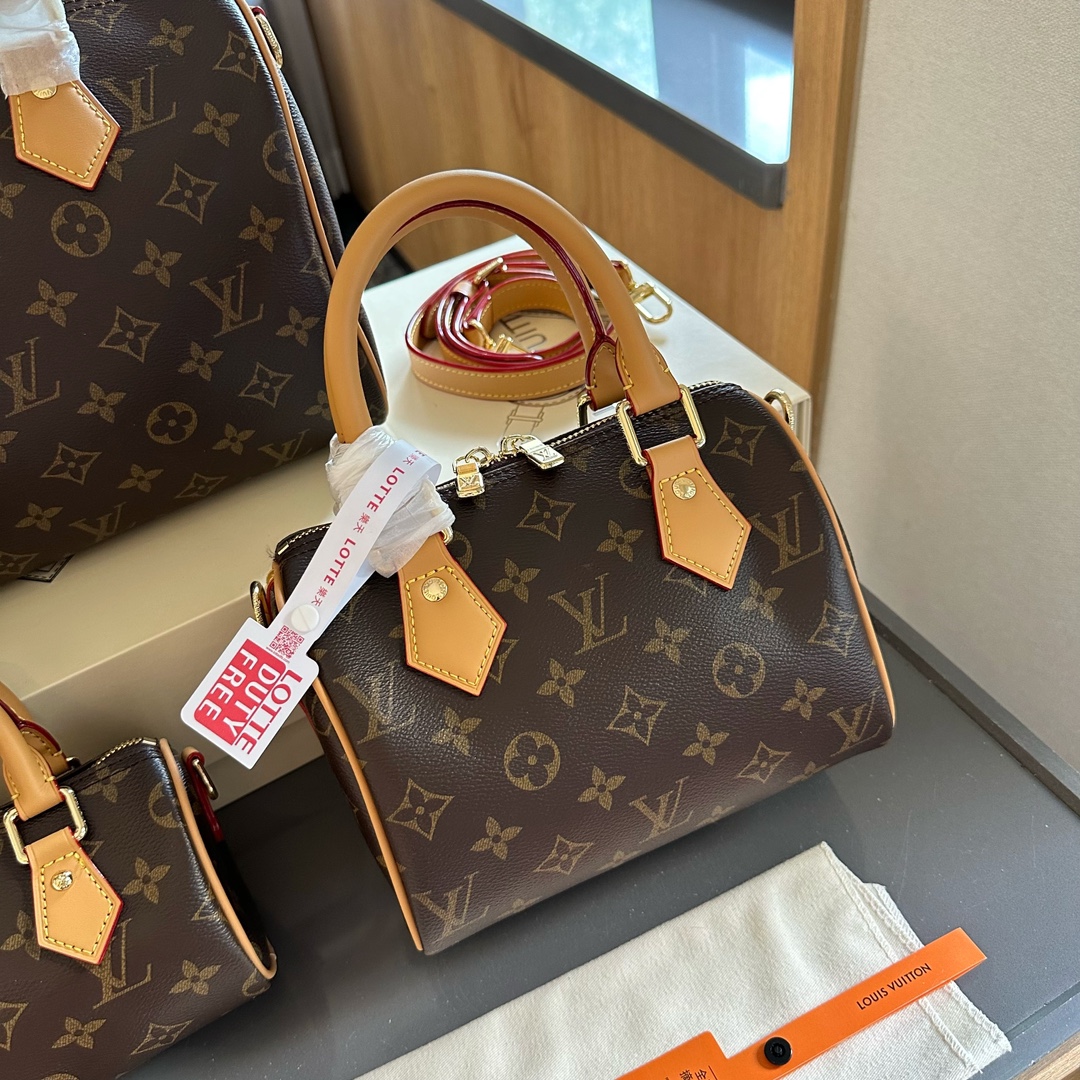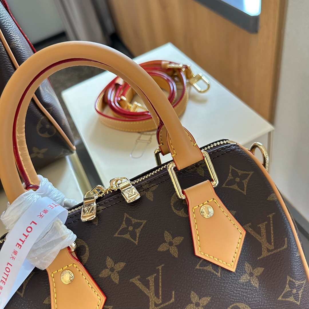 LV Original Checkerboard Pillow Bag with Bronze Hardware, Real Shot of NANO SPEEDY Handbag M61252! The Nano Speedy handbag, made of classic Monogram canvas, exudes ultimate femininity and is an ideal choice for carrying your daily essentials. This handbag is the perfect mini version of the original Speedy, with exquisite stitching, extremely lightweight, and can easily accommodate your smartphone. Dimensions: 16cm/20cm/25cm