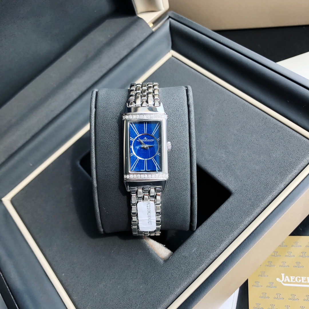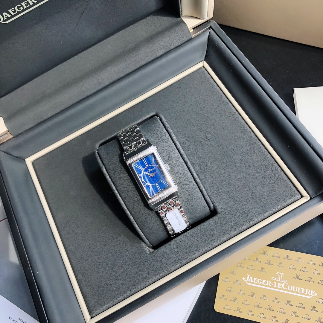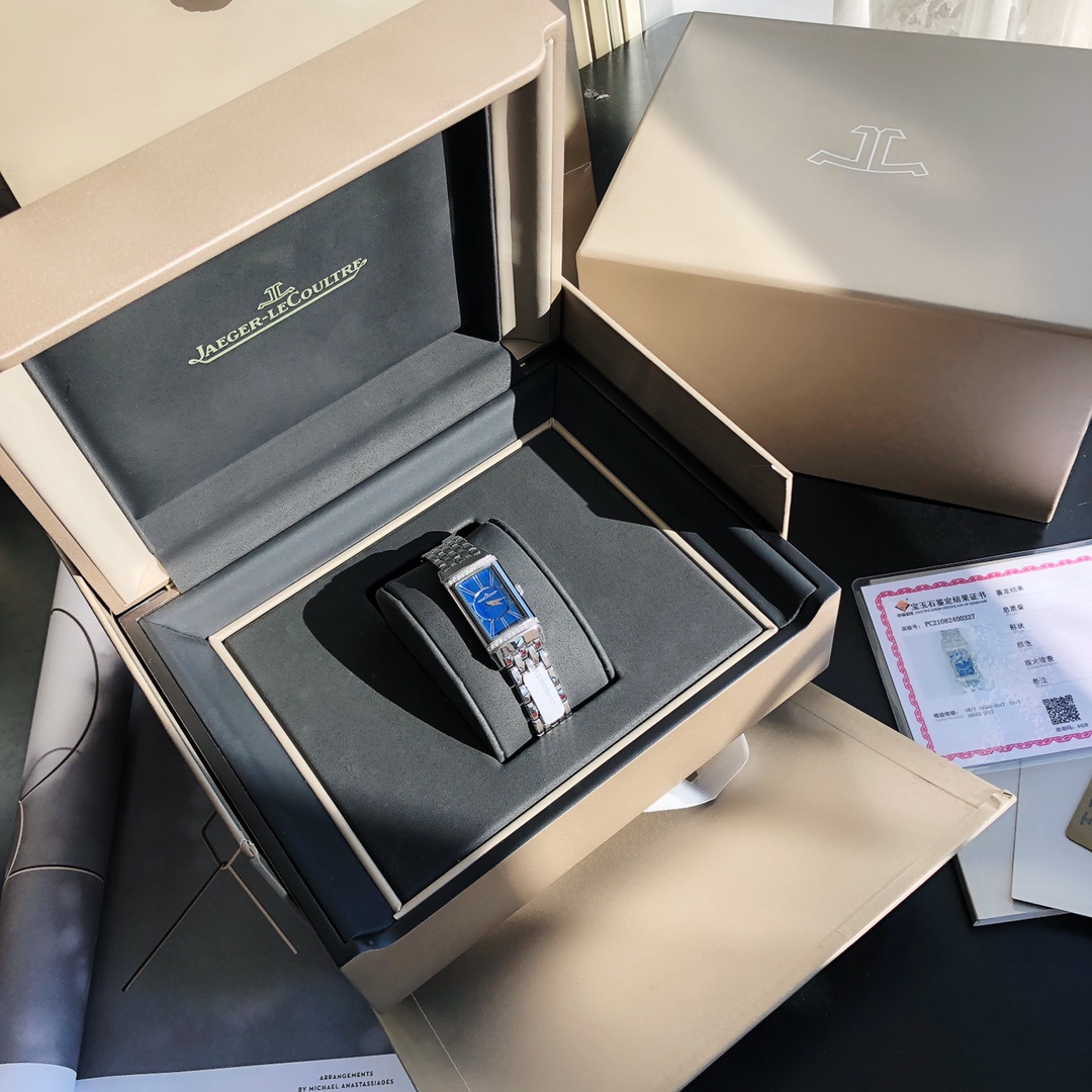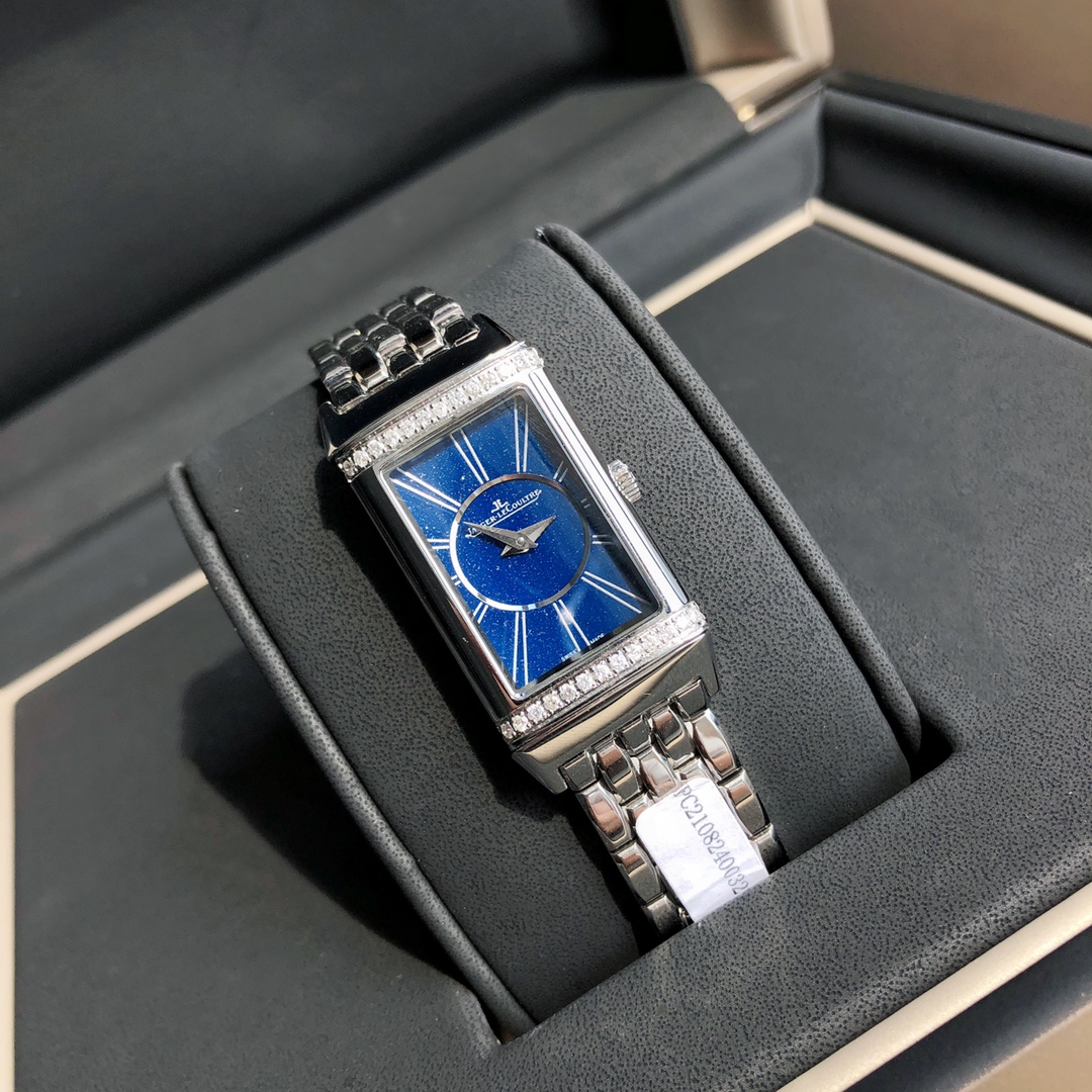 Jaeger-LeCoultre Reverso watch, the dial is set with 26 VS-grade full-cut diamonds. Comes with a GTC inspection certificate. One watch, one certificate. Equipped with an imported Swiss quartz movement. Imported German 316 upgraded stainless steel version, featuring delicate and slender line design and pure hand-brushed craftsmanship. The stunning and eye-catching rectangular design makes people fall in love at first sight. It interprets the Reverso One series with softness and boldness, creating a fashionable piece full of personality—the new ladies' Reverso One watch. Irresistible charm. Rectangular case, classic decorative engravings, elegant Arabic numeral hour markers, dauphine hands, and a lacquered dial surrounded by two rows of brilliant-cut diamonds—reinterpreting the aesthetic elements of the classic model in Jaeger-LeCoultre's representative Art Deco style.