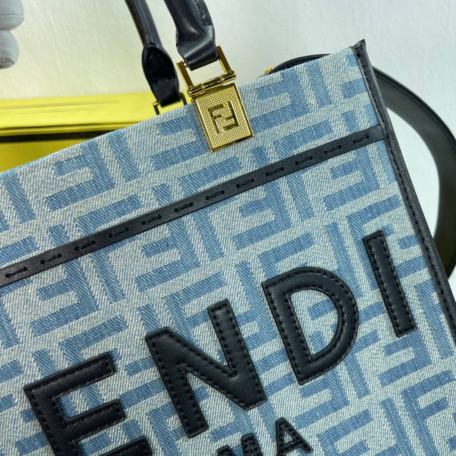 Factory direct sale ✽ New FENDI TOTE "Sun Tote Bag" classic denim double F monogram body. The dual handles are the biggest highlight of the bag. Carrying it alone gives a strong presence and doesn't hurt the hand. The overall retro feel is super strong, very suitable for fashion lovers who like the retro style. Highly recommended hard product!