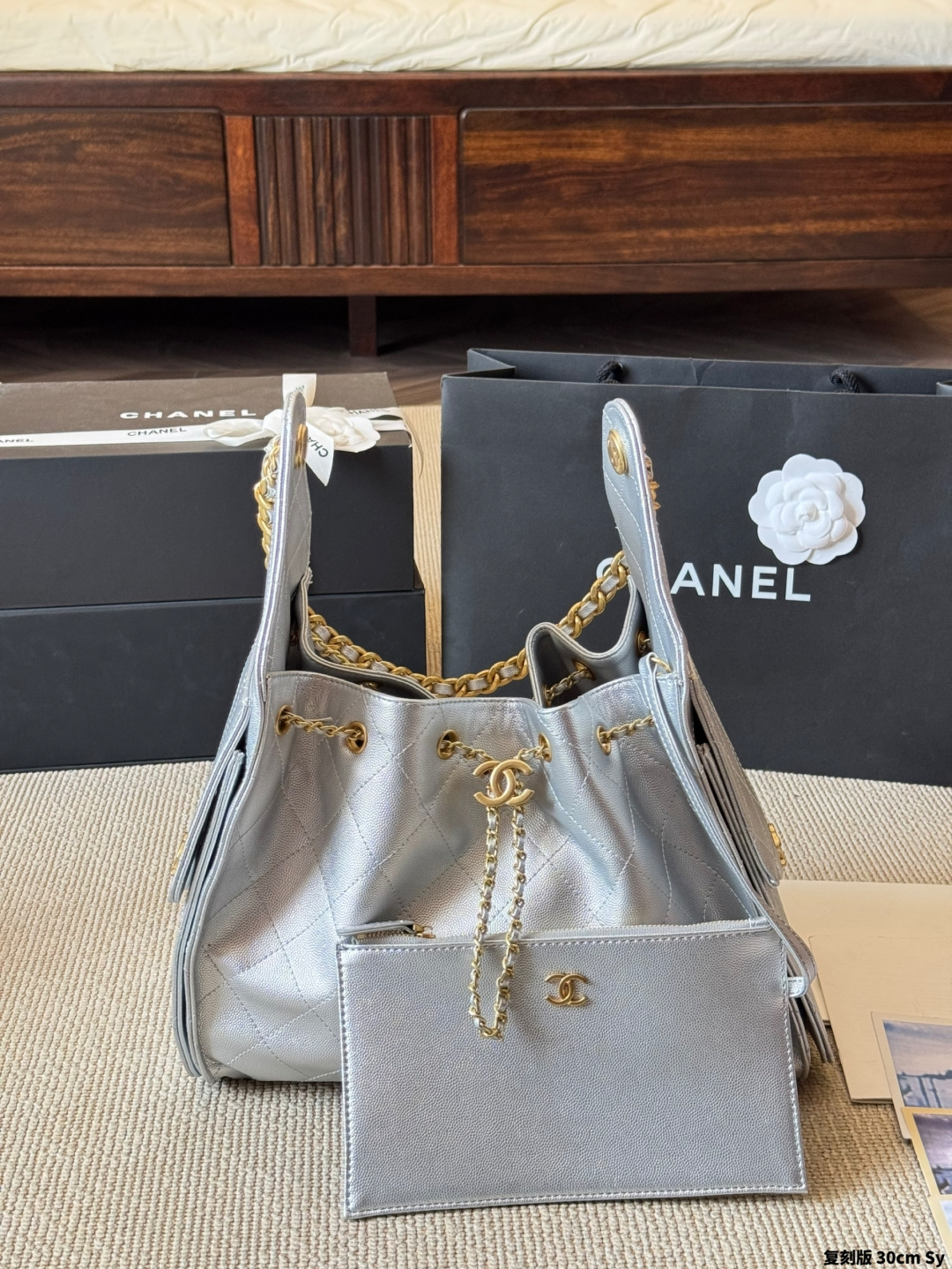 Chanel Calfskin Embroidered Shopping Bag now available, super soft, excellent tactile feel! Lining uses the same high-quality calfskin material! Superb item, waiting for you to carry! Size 30cm