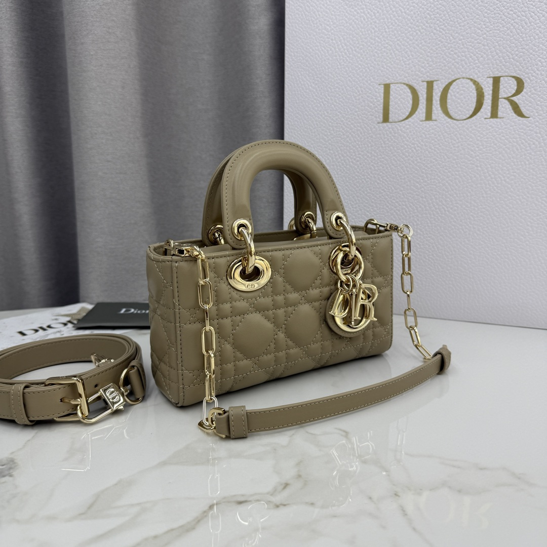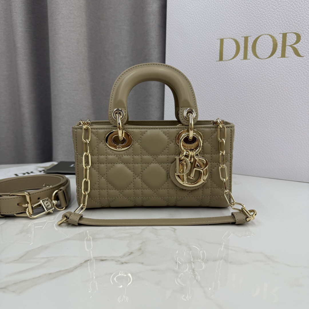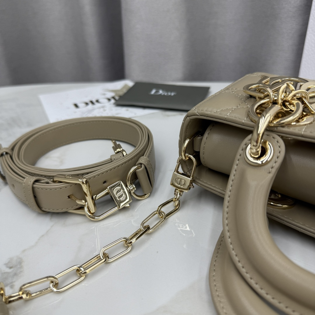 This Lady D-Joy bag is a new addition to the Fall-Winter 2025 ready-to-wear collection, highlighting the classic minimalist aesthetic of the Lady Dior line and fully embodying Dior's profound insight into elegance and beauty. Meticulously crafted from beige-apricot lambskin, it features cannage stitching, offering a timeless and chic design. The light gold-finish metal D.I.O.R. charm enhances the style, adding a touch of dynamism to the exquisite silhouette. The mini design comes with a detachable chain strap and an adjustable, detachable leather strap, allowing it to be carried by hand, on the shoulder, or cross-body, making it an ideal choice for everyday styling.