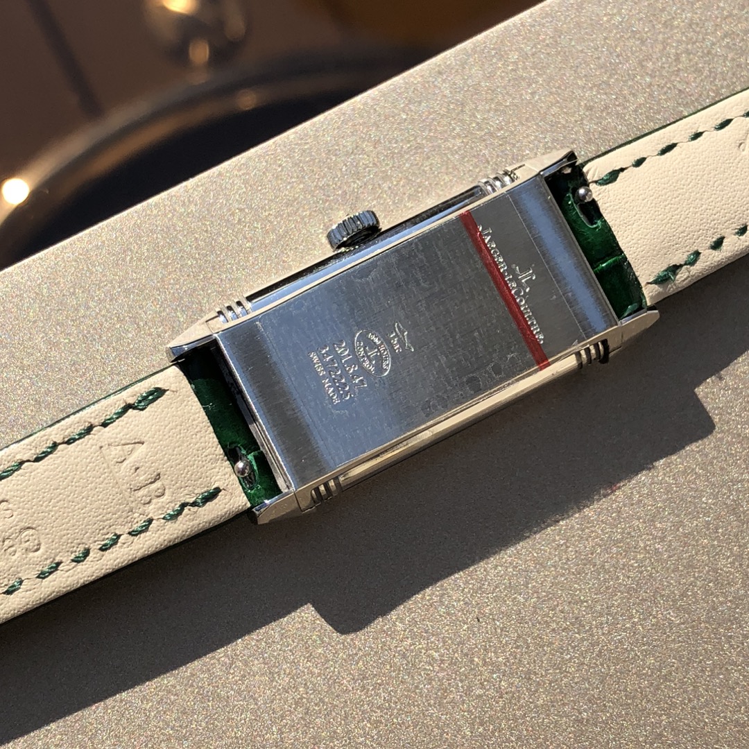 The Jaeger-LeCoultre Reverso One collection features clear, powerful, and pure flowing lines, showcasing the charm derived from Art Deco design. The new model adopts a distinctive green color, adding refined elegance to the series. Inspired by the original rectangular watches from the 1930s, the Reverso One collection is delicate and enchanting, exuding modern sophistication. The rectangular case, classic decorative engravings, elegant Arabic numeral hour markers, dauphine hands, and a lacquered dial surrounded by two rows of brilliant-cut diamonds—reinterpret the aesthetic elements of the classic model in Jaeger-LeCoultre's iconic Art Deco style.
