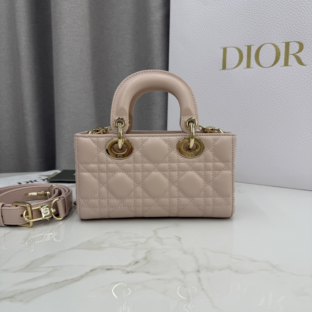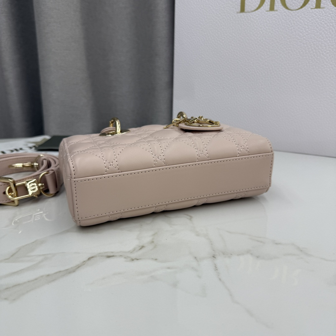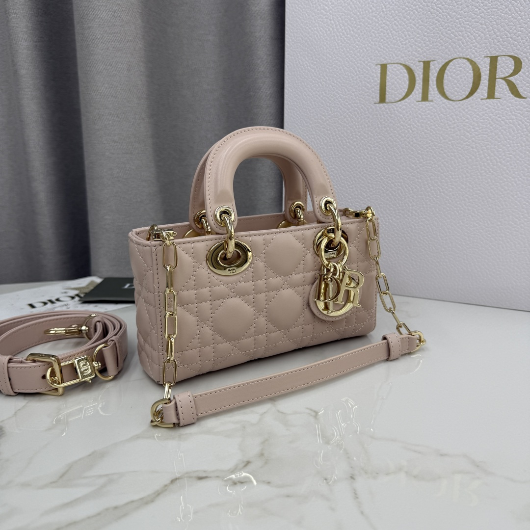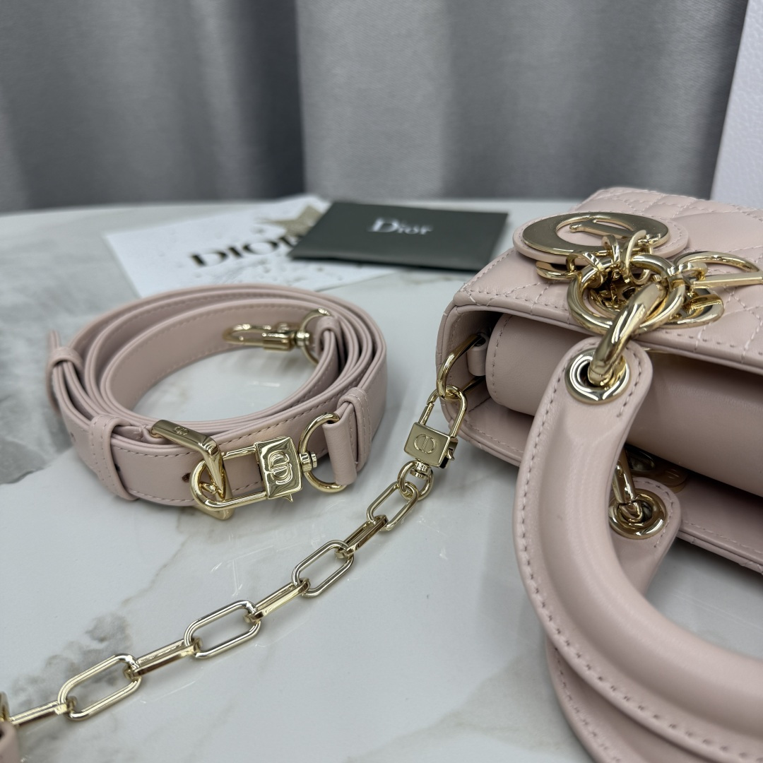 This Lady D-Joy handbag is a new addition to the 2025 Autumn-Winter ready-to-wear collection, highlighting the classic minimalist aesthetic of the Lady Dior line and embodying Dior's profound insight into elegance and beauty. Meticulously crafted from blushed pink lambskin and adorned with cannage stitching, the stylish and elegant design is timeless. It features a light gold-finished metal D.I.O.R. charm that enhances its sophistication, adding a touch of dynamism to the exquisite silhouette. The mini design comes with a detachable chain strap and an adjustable, detachable leather strap, allowing it to be carried by hand, on the shoulder, or cross-body, making it an ideal choice for everyday styling.
