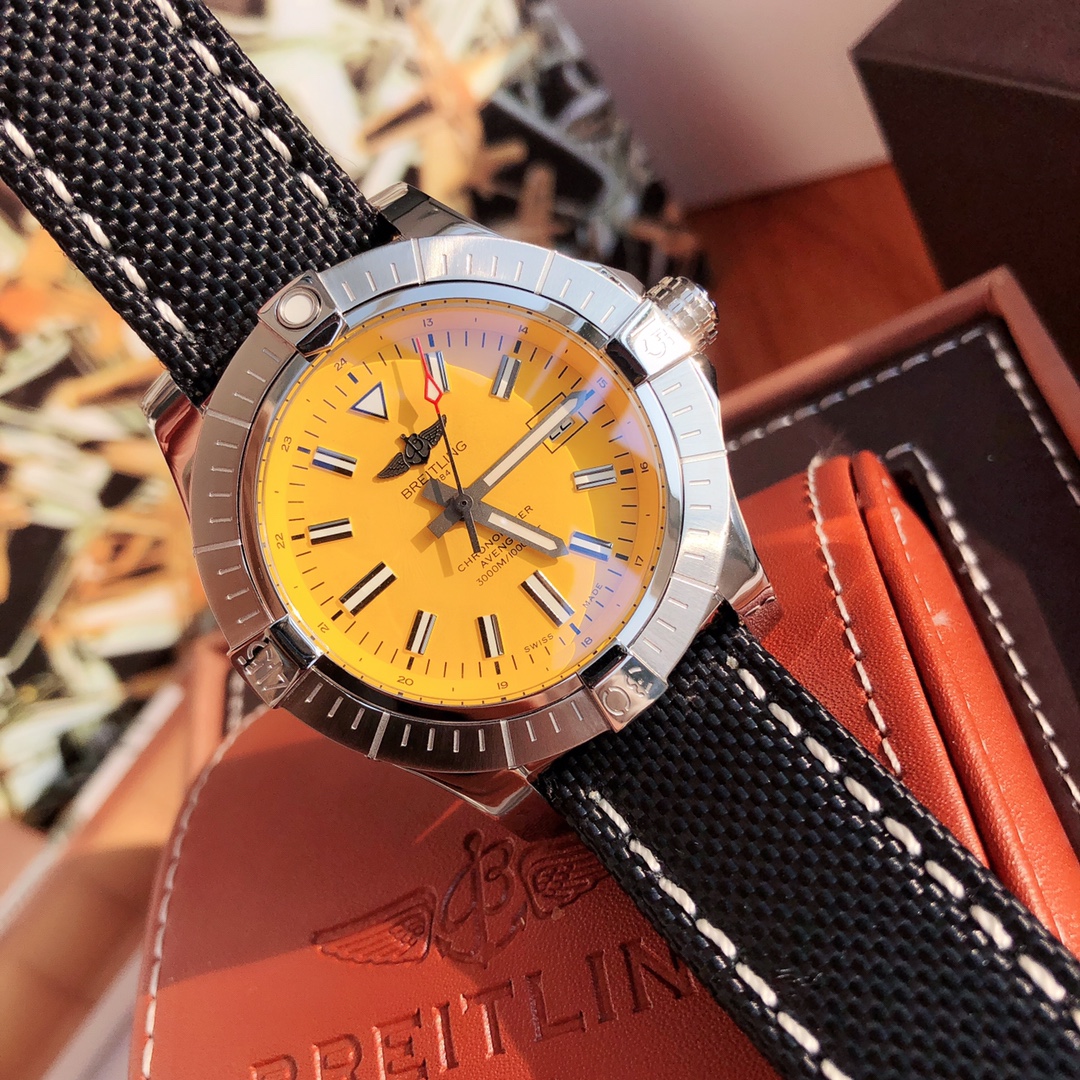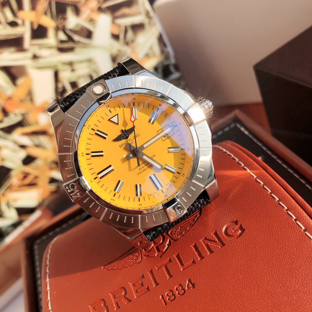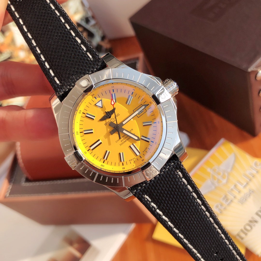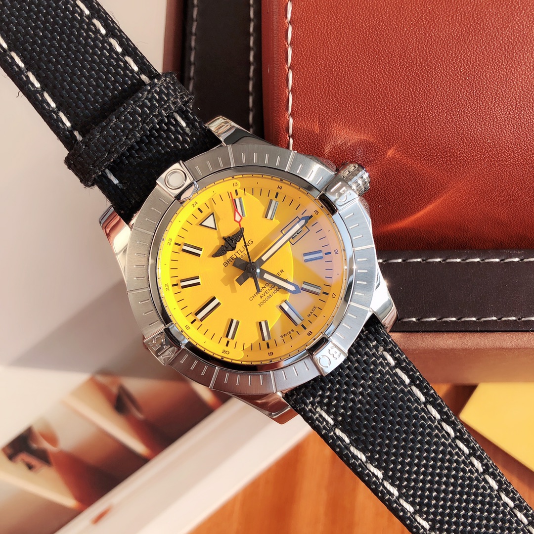 This Breitling Avenger watch features a robust stainless steel case with a diameter of 45 mm and a water resistance of up to 3000 meters. It is equipped with an automatic winding movement certified by the Swiss Official Chronometer Testing Institute (COSC), perfectly showcasing the youthful, dynamic, and invincible spirit of the Challenger series. The four distinctive bezel indicators on the satin-brushed bezel not only ensure optimal operability but also effectively protect the double-sided anti-reflective sapphire crystal. Options include steel and leather straps, both adorned with large luminous hands and hour markers.