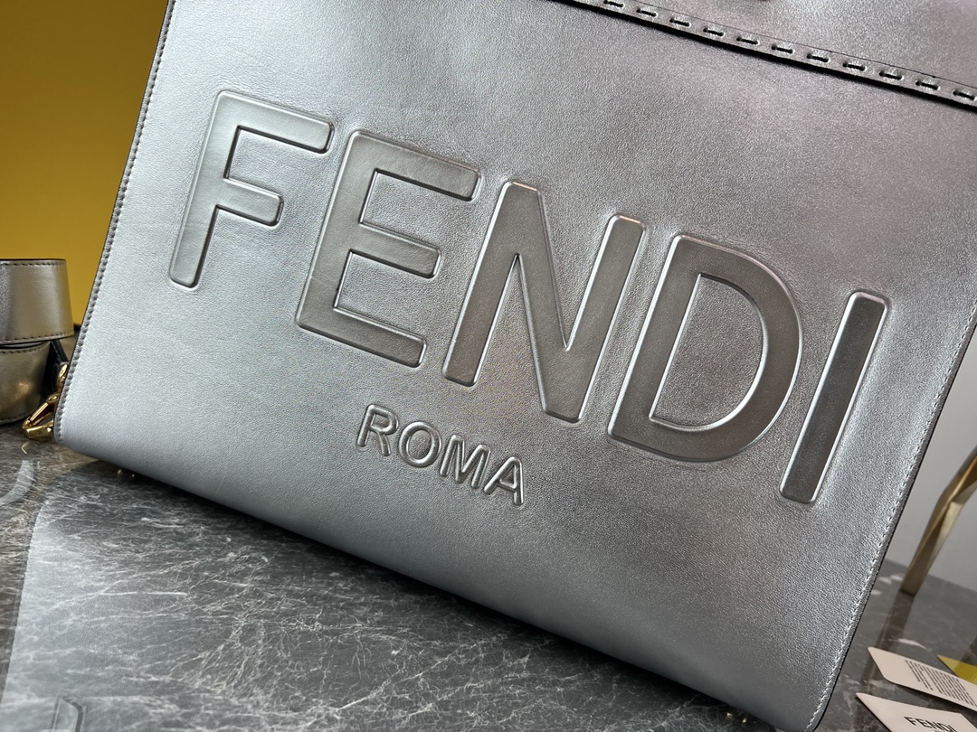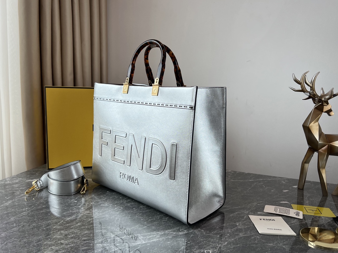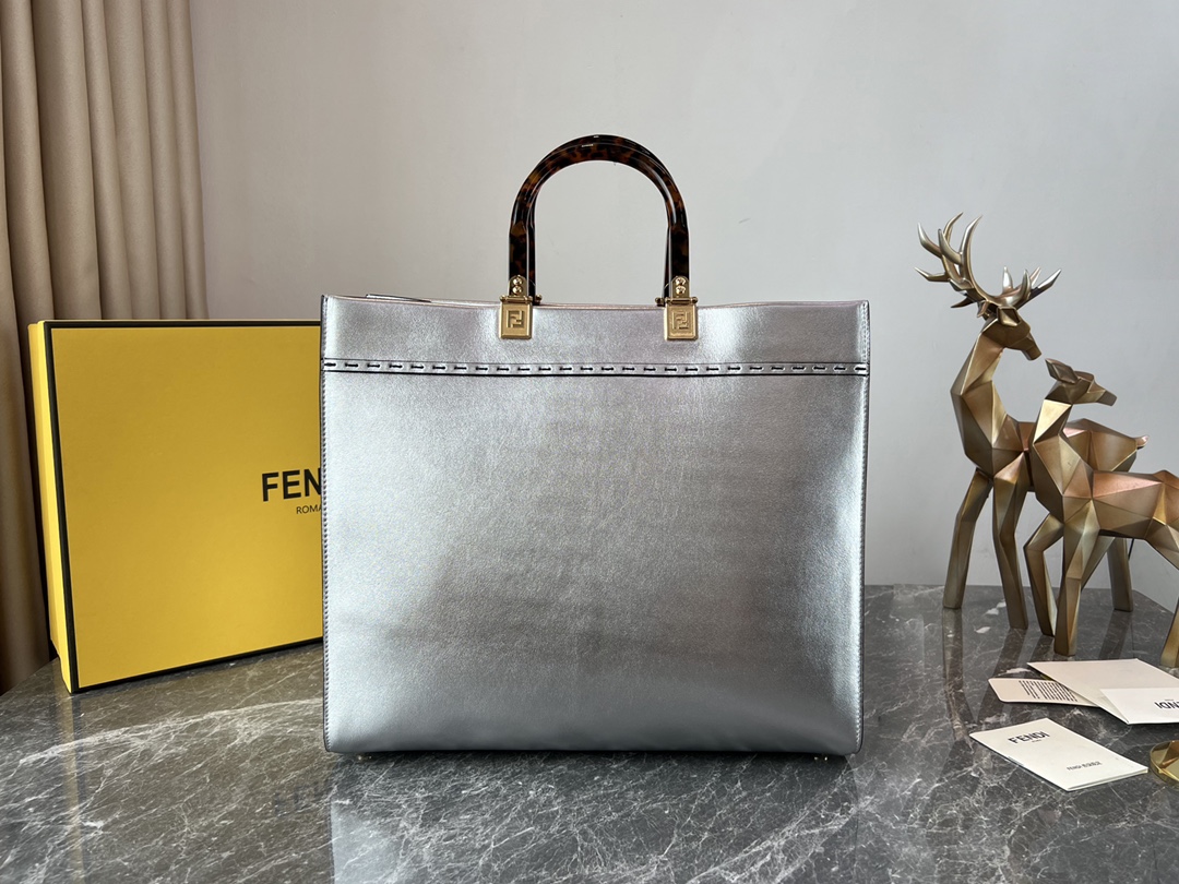 Factory Direct Sale ✽ Top Original Factory Medium Silver Fendi Popular Version Leather with Super High-Quality Amber Handles Shopping Bag is the long-awaited hit model. We strictly control and achieve the highest quality 🤟 100% ☑️ Authentic Version