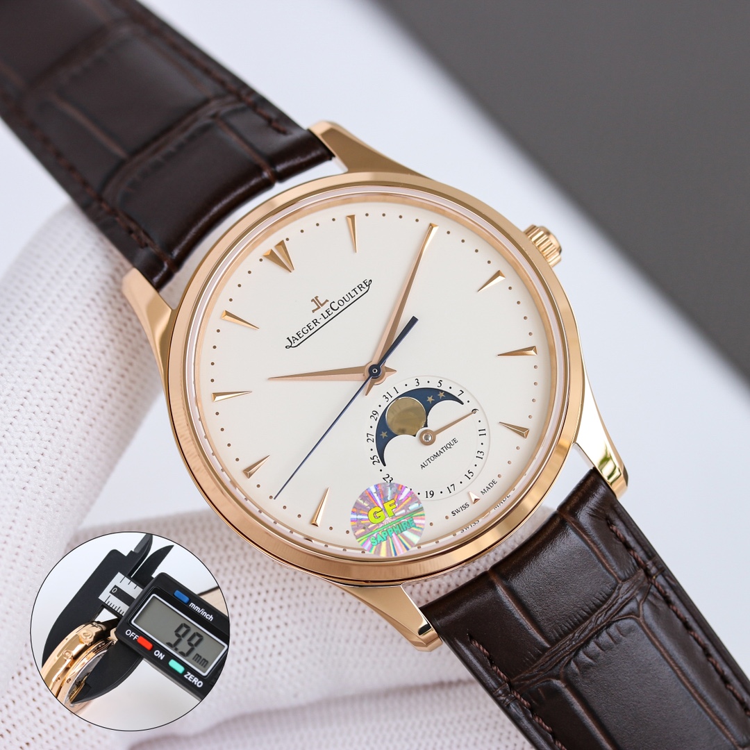 [GF Luxury High-End Edition] Jaeger-LeCoultre Master Ultra Thin Moon Phase Men's Dress Watch Q1368420. (Case diameter 39mm, thickness 9.9mm)