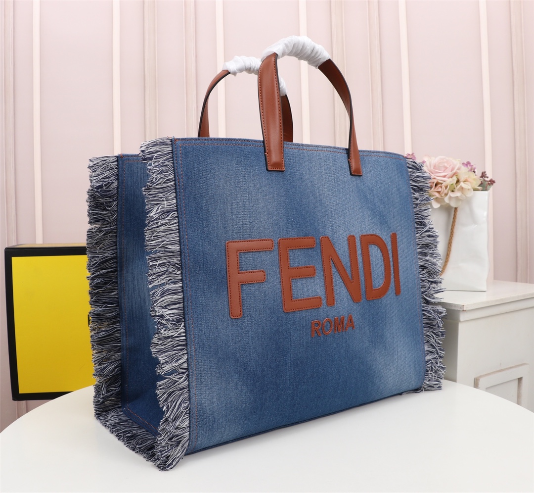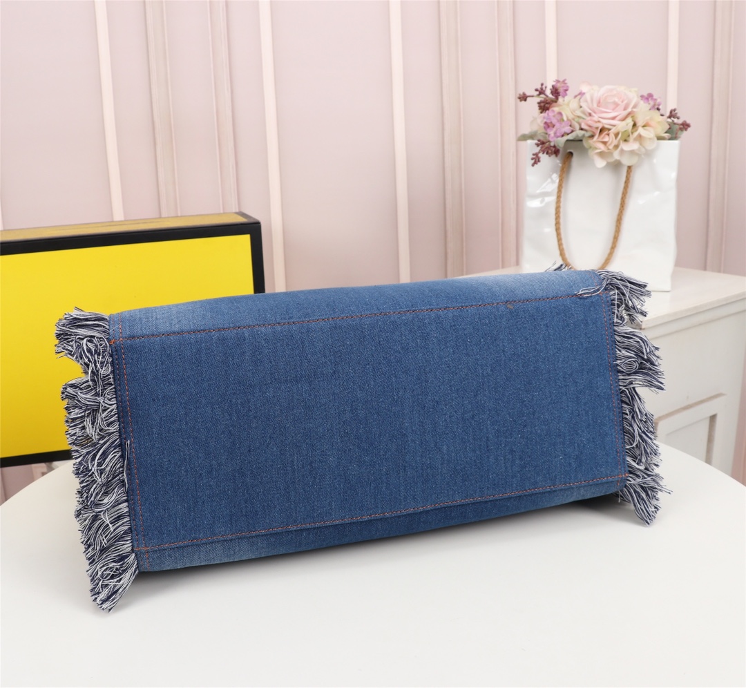 Original Title: Factory Direct Sale Fendi Denim Tote Bag. It's not a problem whether it's worn over the shoulder or across the body, it has a kind of lazy street style. Super practical! Dimensions 40 35 cm