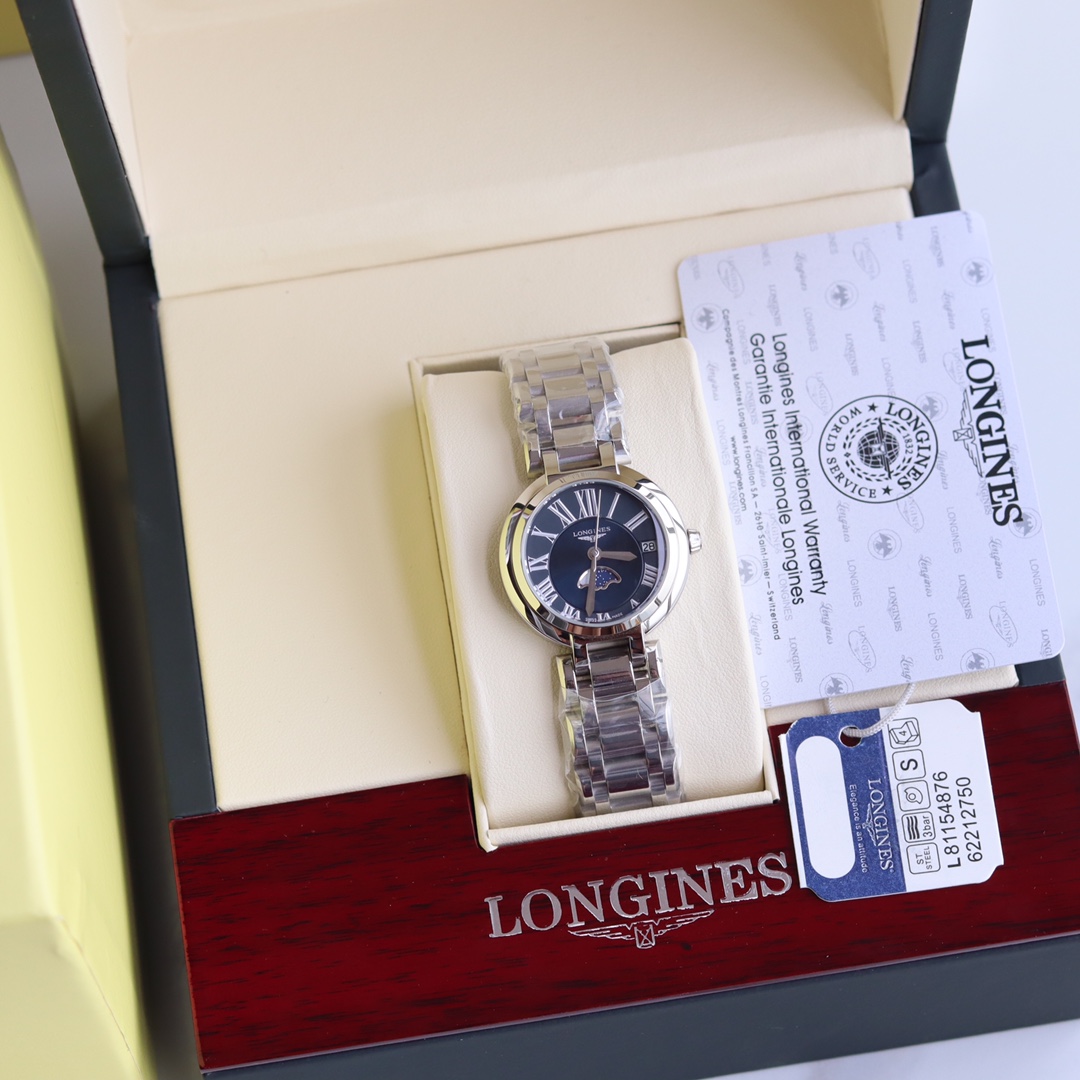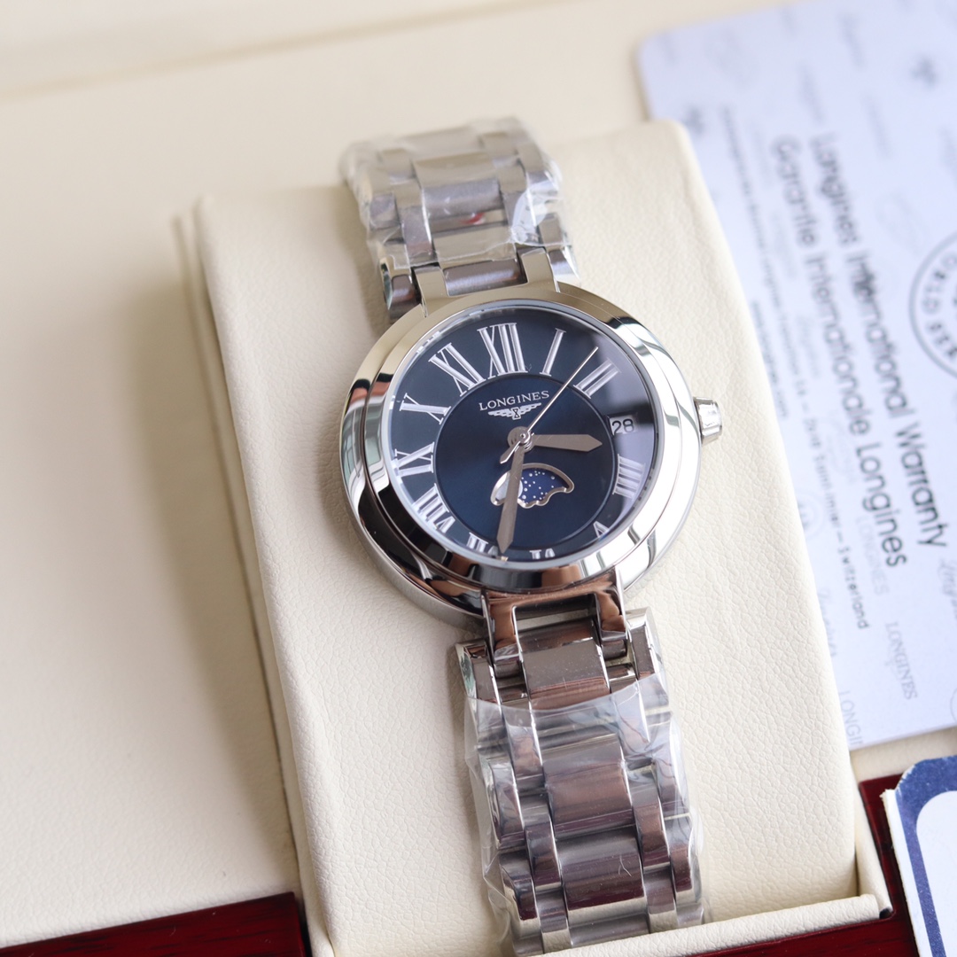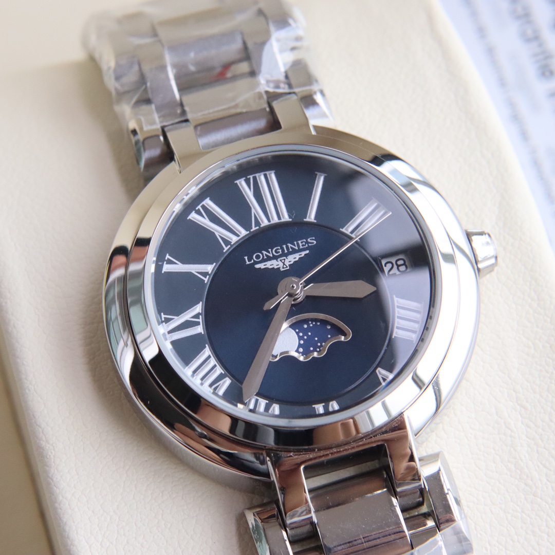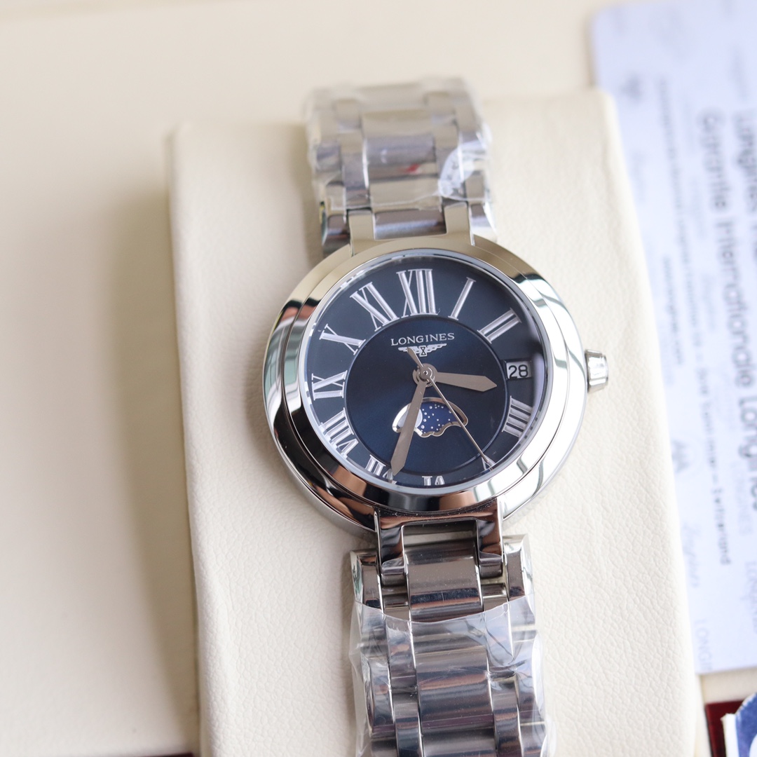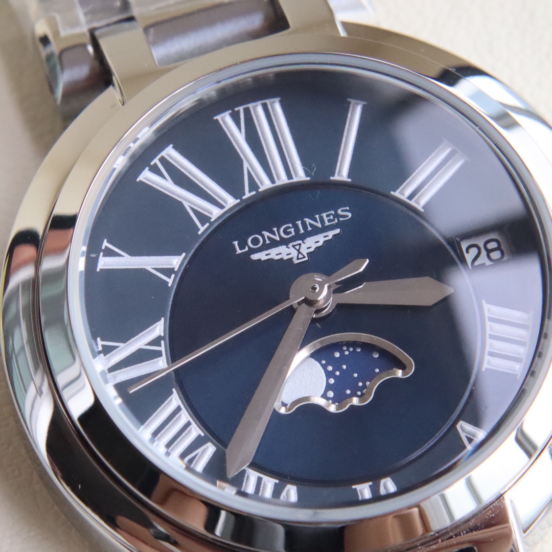 Longines... 2019 new series Moon Phase Stone watch for women, super beautiful and elegant fashion quartz wristwatch, suitable for various occasions. Start your powerful aura with the Moon Phase series~ Two styles: Roman numeral version and diamond-set version. Manufactured by Shenzhen OEM, exquisitely packaged in original box for sale. Perfect condition with one-year warranty. Experience the concept of great value. The movement ensures precise timekeeping, sapphire crystal with 30-meter water resistance for daily life. This women's fashion quartz wristwatch complements your powerful aura, and various platforms are raving about this versatile essential!!! Product name: Moon Phase Roman Numeral / Moon Phase Diamond-set. Dimensions: diameter 30.5cm, thickness 0.8cm.