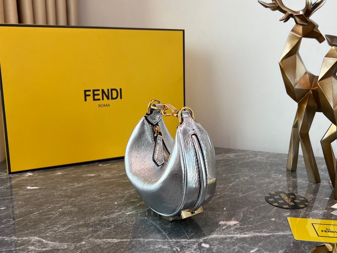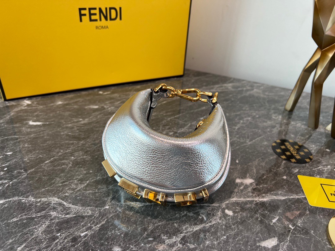 Factory direct sale ✽ Top original FEND1praphy underarm bag, featuring a crescent moon shape, with the classic large metal logo [FEND1] decorated at the bottom of the bag. The bag's contour fits the body's lines very well, and when worn under the arm, it is full of fashion sense—simply a walking grass-planting machine!