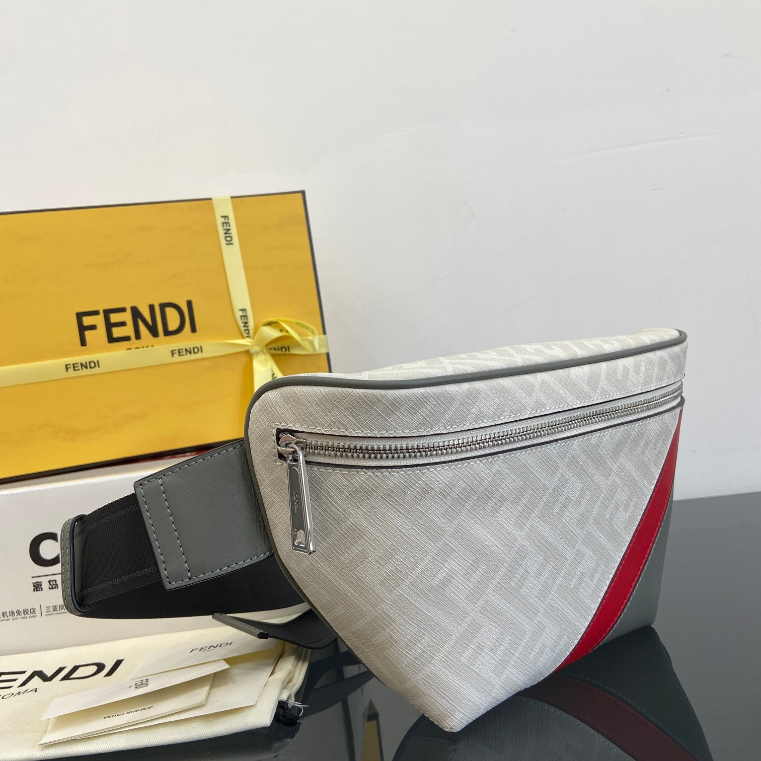 Factory direct sales, tax-free genuine grade Fendi retro pattern chest bag with FF letter pattern contrasted with a bright large logo, made from imported top-layer Napa leather, truly full of trendy feel, highly popular upon pre-launch, simple and practical bag design, looks extremely cool when worn, can be worn on the waist or chest, its creativity is truly unique, unisex.