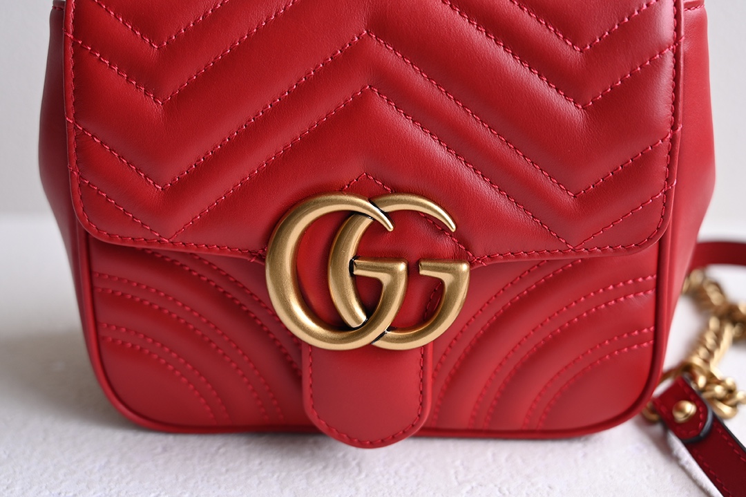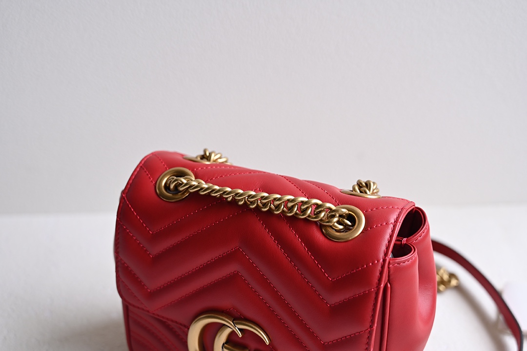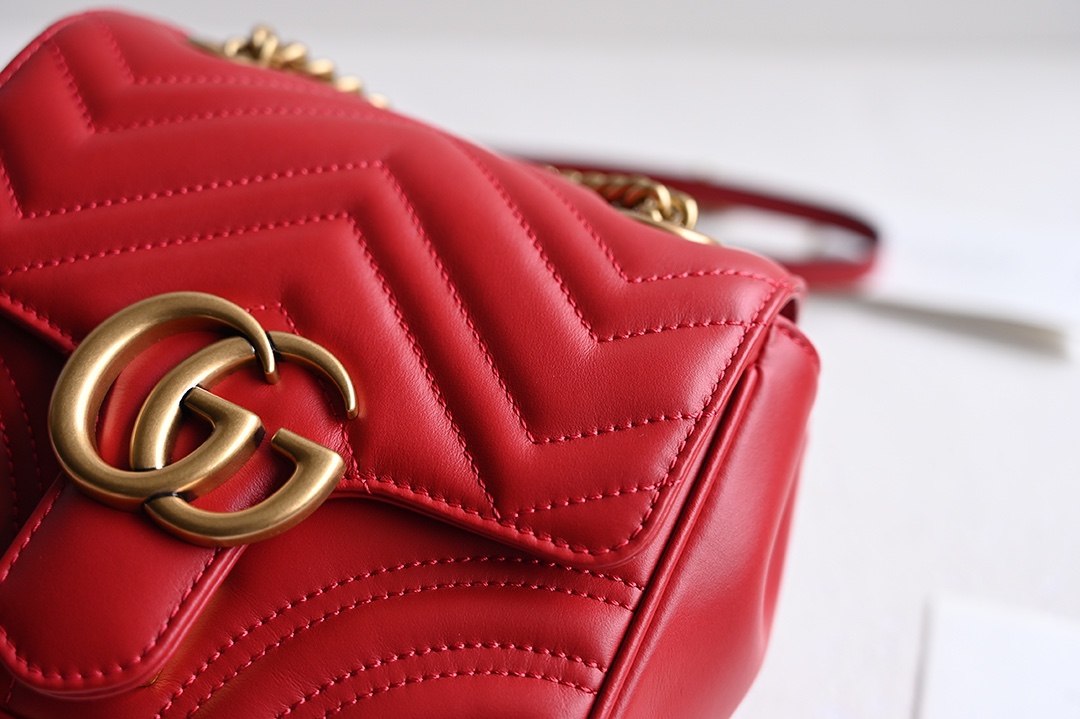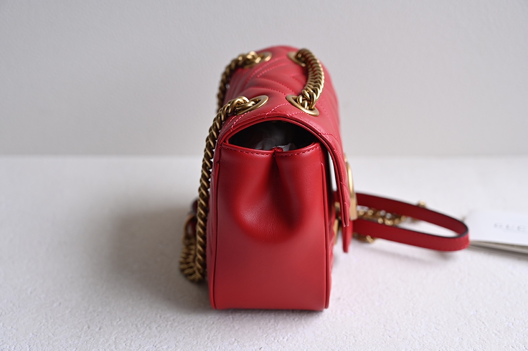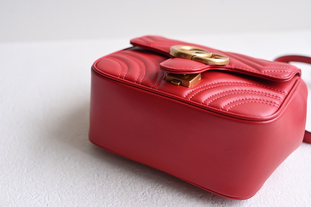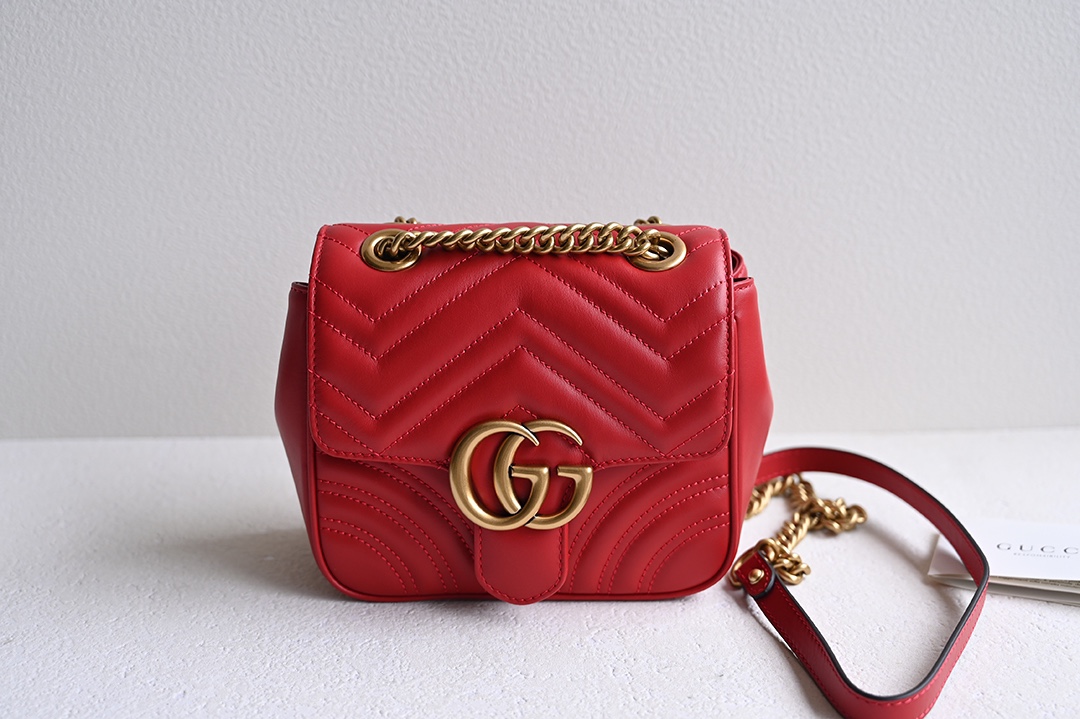 2023 Hottest Item GG Marmont All-New Upgraded GG Marmont Square Bag. With its highly recognizable quilted fabric and double G hardware, the GG Marmont series of handbags has become a brand symbol. This classic collection introduces new silhouettes each season, aligning with Gucci's current aesthetic philosophy. This shoulder bag is meticulously crafted from black leather, skillfully incorporating antique gold-toned details.