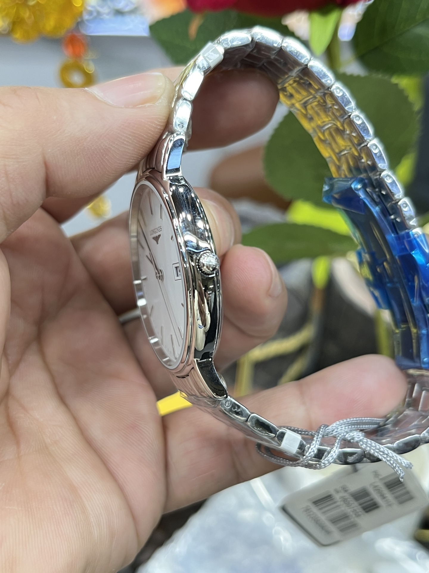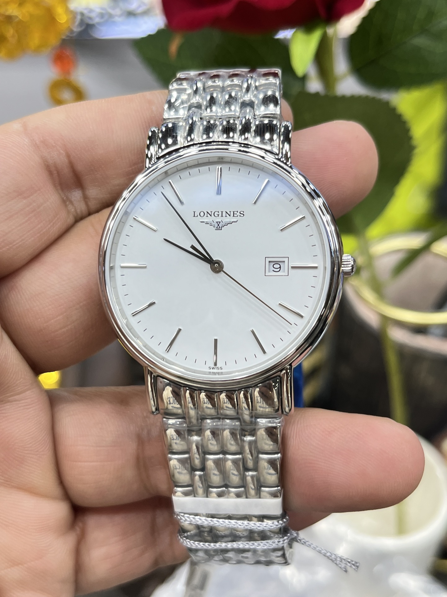 Longines Elegance quartz watch for women, 38.5mm for men, 24mm for women. Swiss L209 movement, sapphire crystal, stainless steel case, classic design.