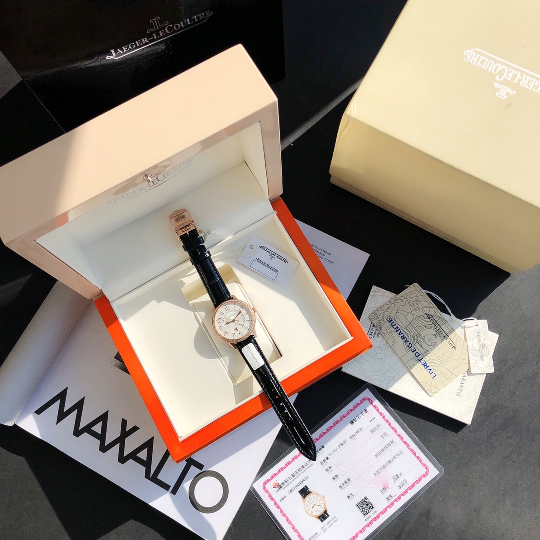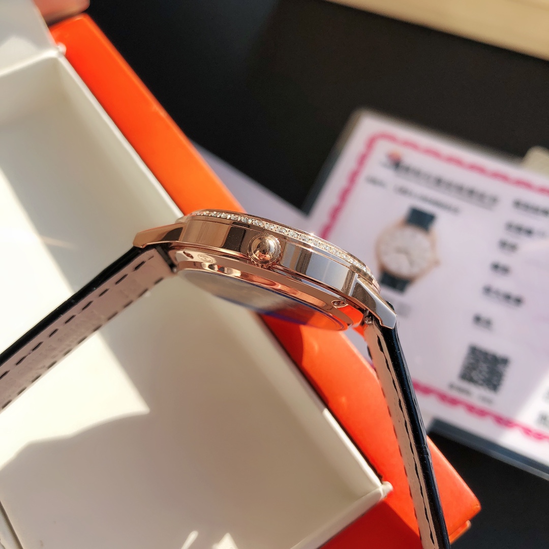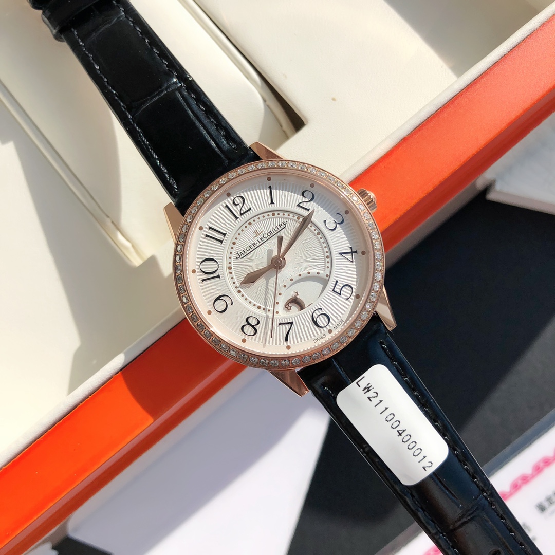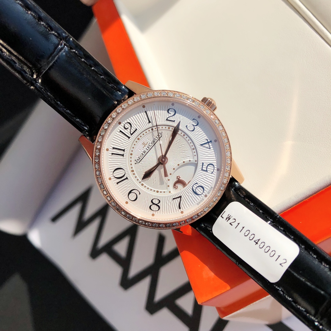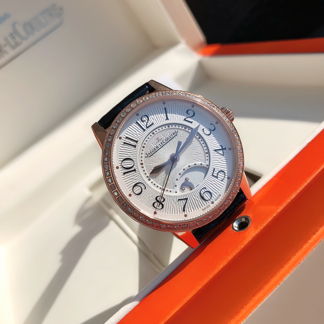 Simple and elegant, fully displaying romantic charm! Watch size 34MM/thickness 8.9MM, the bezel is set with a total of 60 VS1.5 top-grade natural South African diamonds weighing 0.69 carats. Buying diamonds at this price is worth it! Each one is hand-set. The setting work is rigorous, built with heavy investment. Corrects all shortcomings of any version currently on the market, the simple and sleek case is finely polished, ensuring the polishing craftsmanship matches, and the texture is synchronized with the genuine product. Restores the most beautiful style of the genuine product! Uses a 9015 modified Jaeger-LeCoultre self-produced CAL.898A movement, perfectly achieving the original calendar day/night star option/hour-minute-second change functions, closely following the original replica! Stable timekeeping, quality assured! Exactly the same as the genuine product, electric light blued hands shine brilliantly in the sun. Italian calfskin is lightweight and breathable, with excellent texture, paired with Jaeger-LeCoultre's classic folding clasp. Equipped with a national inspection agency testing certificate, original gift box, lifetime warranty, perfect recommendation for gifts or personal use!