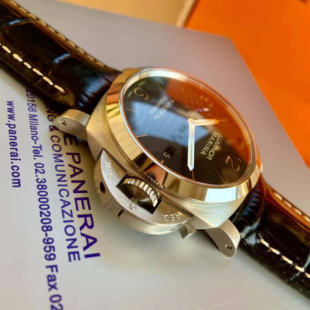 The new Panerai PAM01312, another miracle in the replica watch industry. The only product on the market that uses genuine watches disassembled for molding, ensuring quality. Features independent blue small seconds hand, a case with distinct edges and curves, mature craftsmanship, and restores the genuine product's essence. Case diameter 44mm, black dial with blue torpedo independent small seconds hand, S series, equipped with ultra-thin custom movement, accurate timekeeping, a popular and hot model. The unique "satin" effect resembles the blue radiance of the azure ocean under sunlight, exuding a calm and grand atmosphere, while still featuring the iconic Luminor 1950 crown guard bridge without losing its imposing presence. As long as you like it, it's the real deal.. Full set packaging, great for gifting.