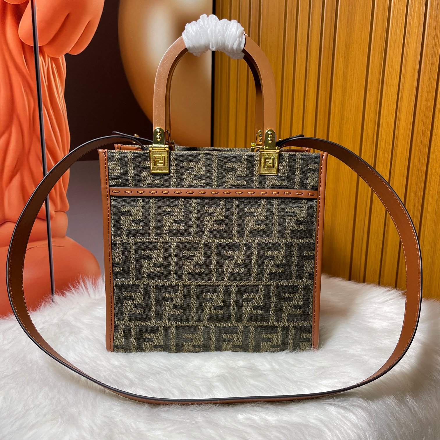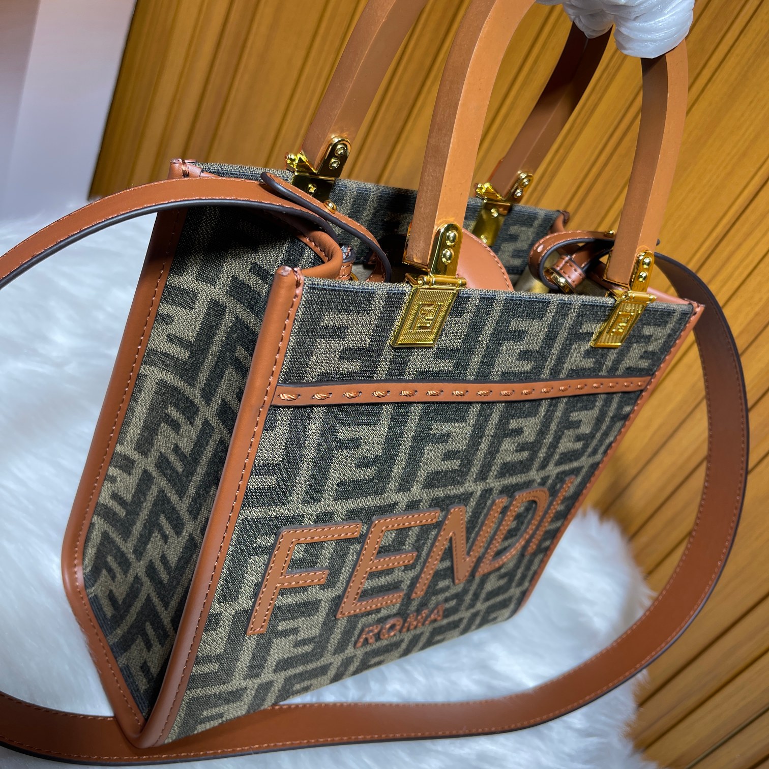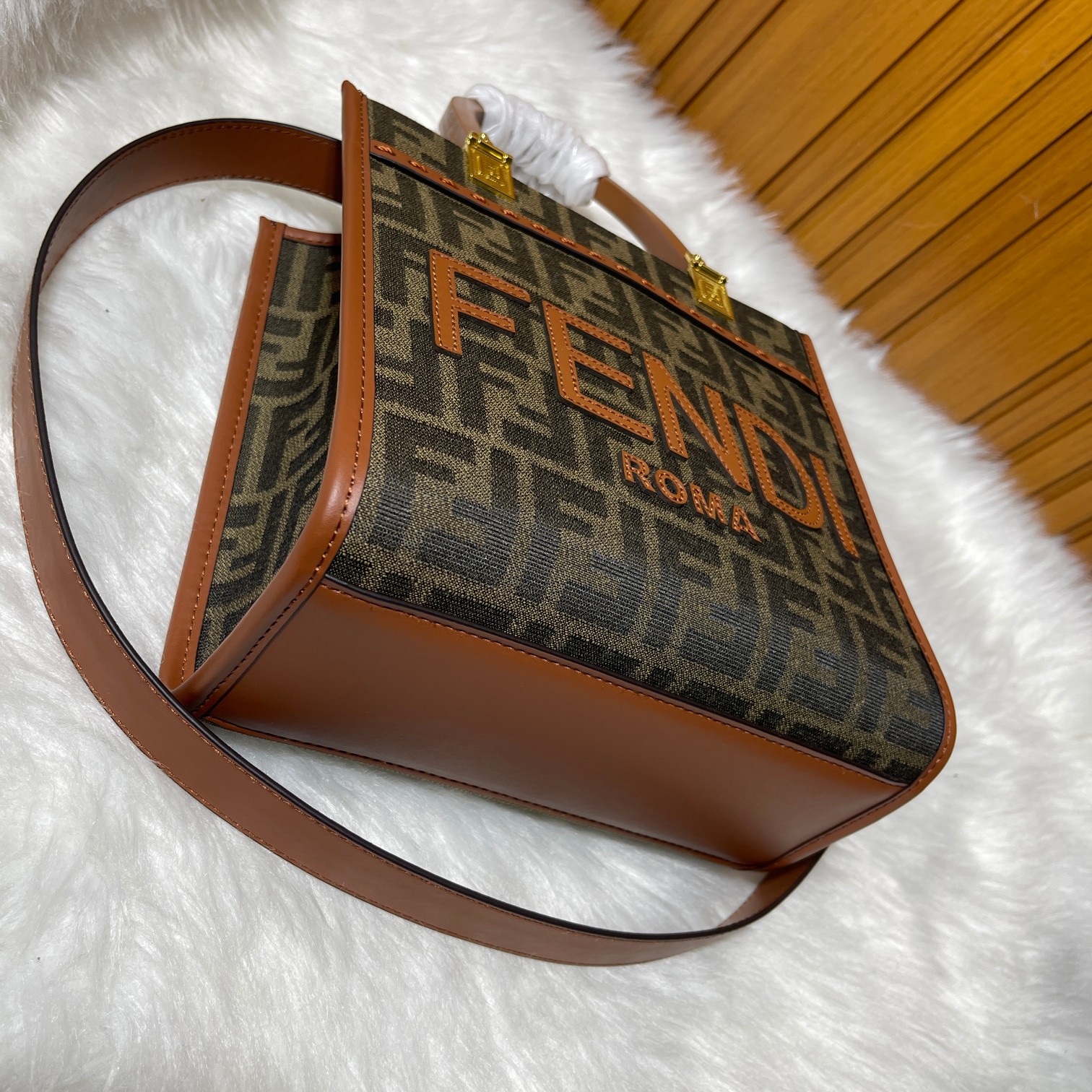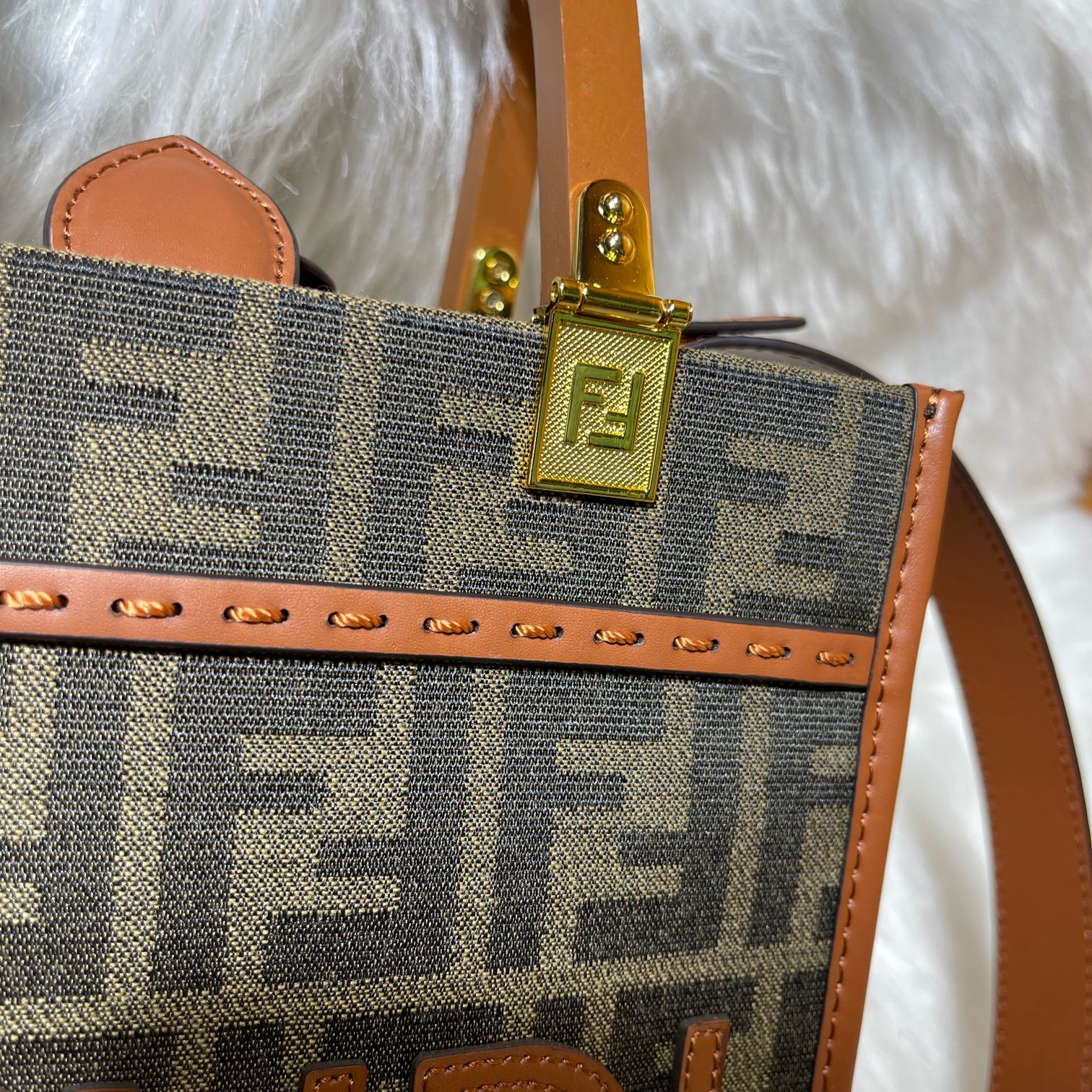 Factory direct sales small size 0FÉŃĎI TOTE "Sunlight Tote Bag" classic double F monogram body, the dual handles are the biggest highlight of the entire bag. Carrying it alone exudes a strong presence and doesn't hurt the hands. The overall retro feel is very strong, making it perfect for fashion enthusiasts who love the vintage style. Highly recommended hard product!