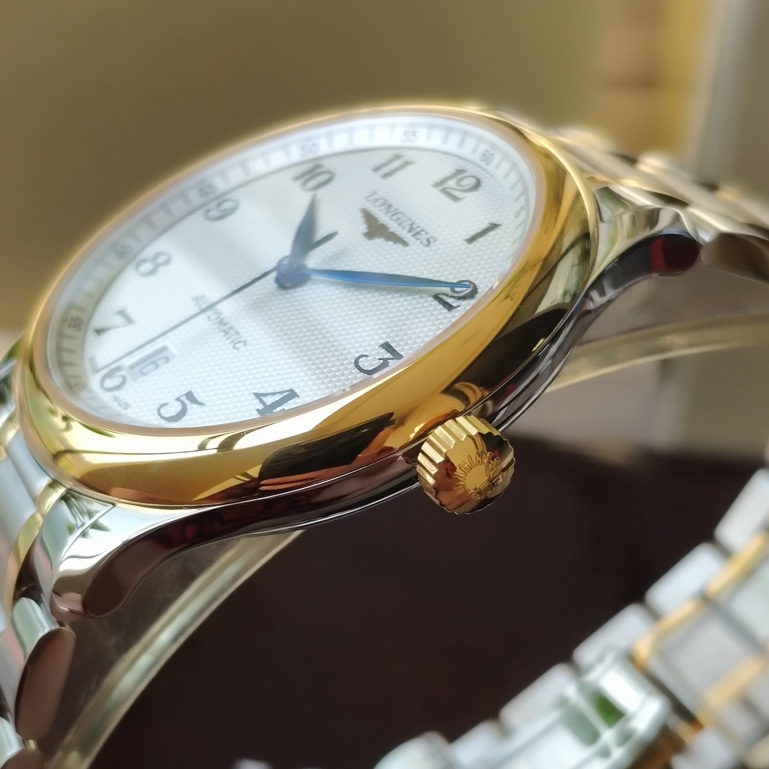 Top-notch goods, top-notch goods, the classic undefeated Longines Master Collection - casual and stylish men's automatic mechanical watch, 316L stainless steel, 40mm case diameter, 18K gold-plated, embodies the oldest manufacturing aesthetics of the Longines brand, renowned for its winged hourglass emblem. The uniquely designed case, with its ultra-thin profile, creates timeless beauty. Equipped with an original Swiss 2892 movement, scratch-resistant sapphire crystal, triple-fold safety clasp and push-button opening mechanism. The simple blue hands add refinement to the entire dial. Original large accessories highlight the essence of the watch. One watch, one code. The watch case back, hang tag, and warranty card have matching codes. Welcome to place your order!