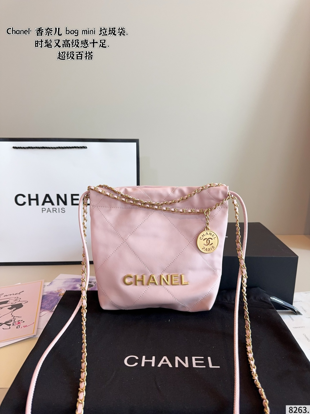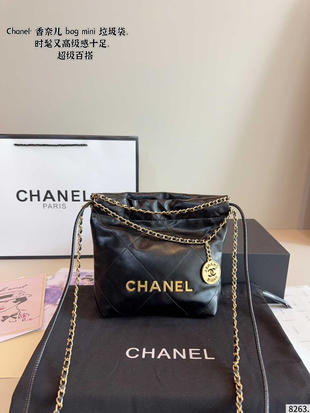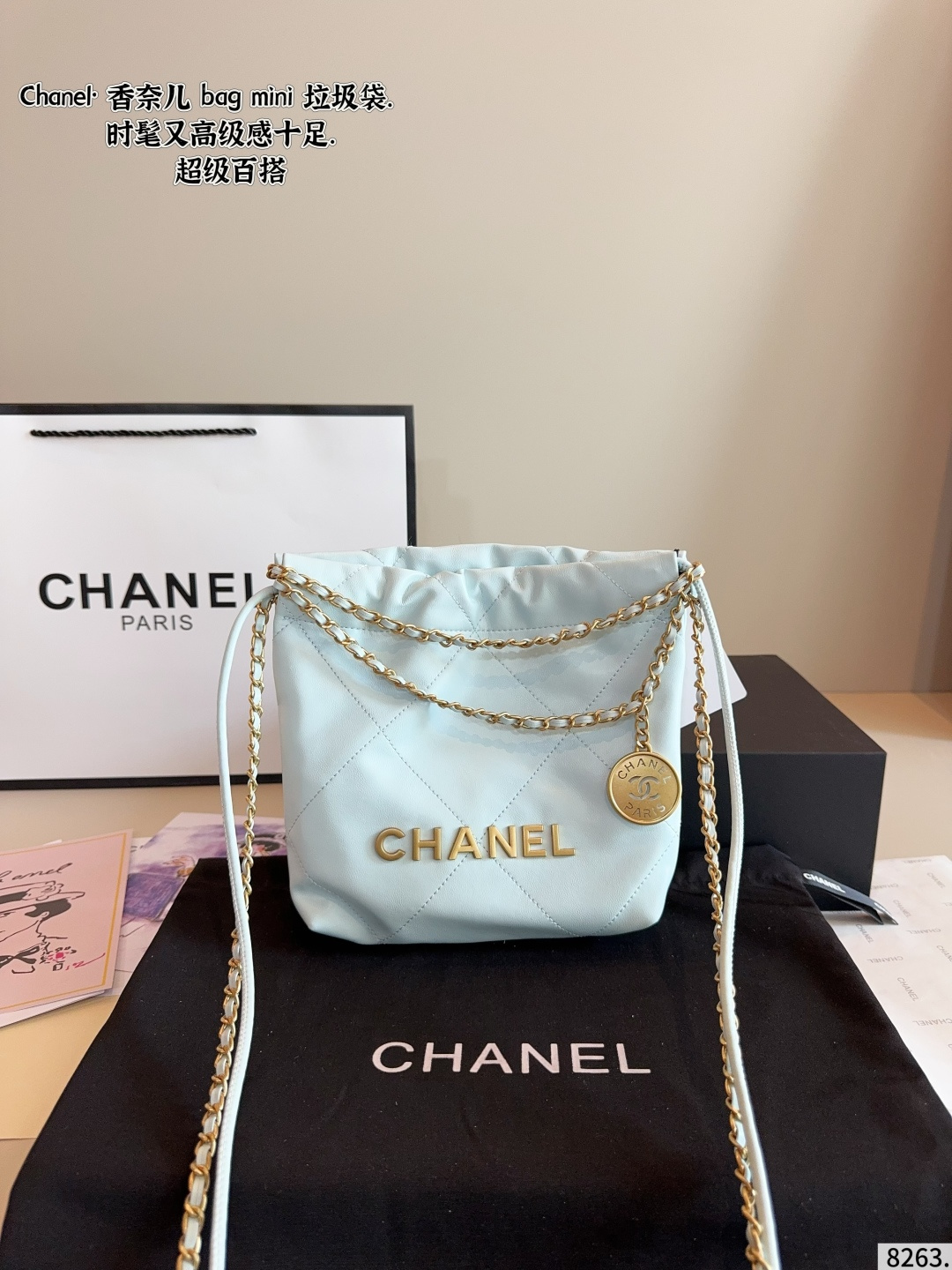 Chanel Early Spring Collection new chain trash bag tote bag coin bag. Superb feel, original hardware, very luxurious. With its gorgeous and elegant appearance, it has become the most popular piece of the moment. A must-have for everyone, highly praised by celebrities, a work of fine craftsmanship. Dimensions: 18*6*21cm