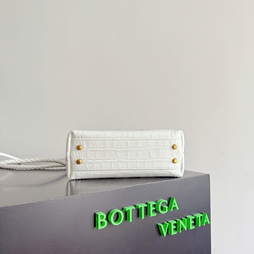 BOTTEGA VENETA crocodile skin mini Andiamo with oak hardware four-piece set adds more layers to the entire bag. The figure-eight buckle, as a classic design from BV, brings different surprises to fans with each innovation. Three ways of carrying match different makeup styles. Crocodile skin is known as the gold of leather, renowned for its top-tier luxury and rarity. During use, the luster of crocodile skin does not fade or dim over time. No matter how long it is used, it remains as good as new. Moreover, because each piece of crocodile skin is different, every crocodile skin bag has a unique effect.