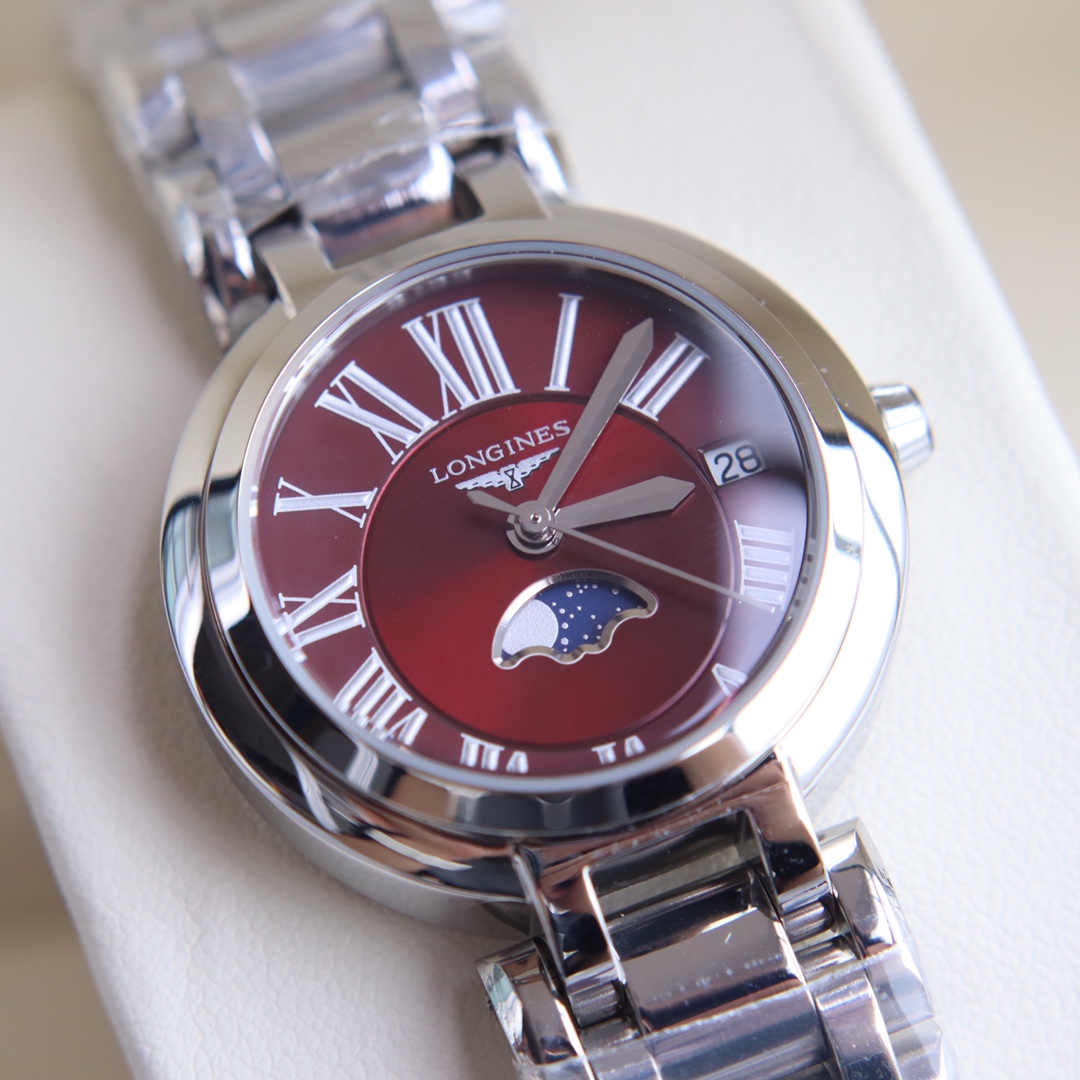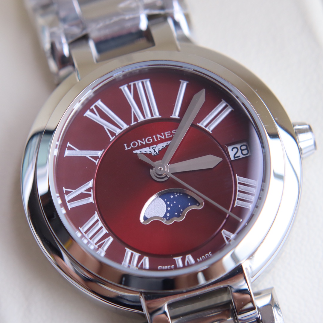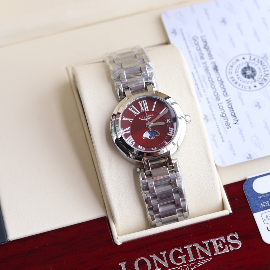 Longines... 2019 new series Heart Moon Moonphase Stone watch for women, super beautiful and elegant fashion quartz wristwatch, suitable for various occasions. Start your powerful aura with the Heart Moon series~ Two styles: Roman numeral version and diamond-set version. Manufactured by Shenzhen OEM with exquisite original box packaging, perfect condition with a one-year warranty. Experience the concept of great value. The heart movement ensures accurate timekeeping, sapphire crystal with 30 meters water resistance for daily life. This women's fashion quartz wristwatch complements your powerful aura, and various platforms are raving about this versatile essential!!! Product name: Heart Moon Roman Numeral / Heart Moon with Diamonds. Dimensions: diameter 30.5 cm, thickness 0.8 cm.