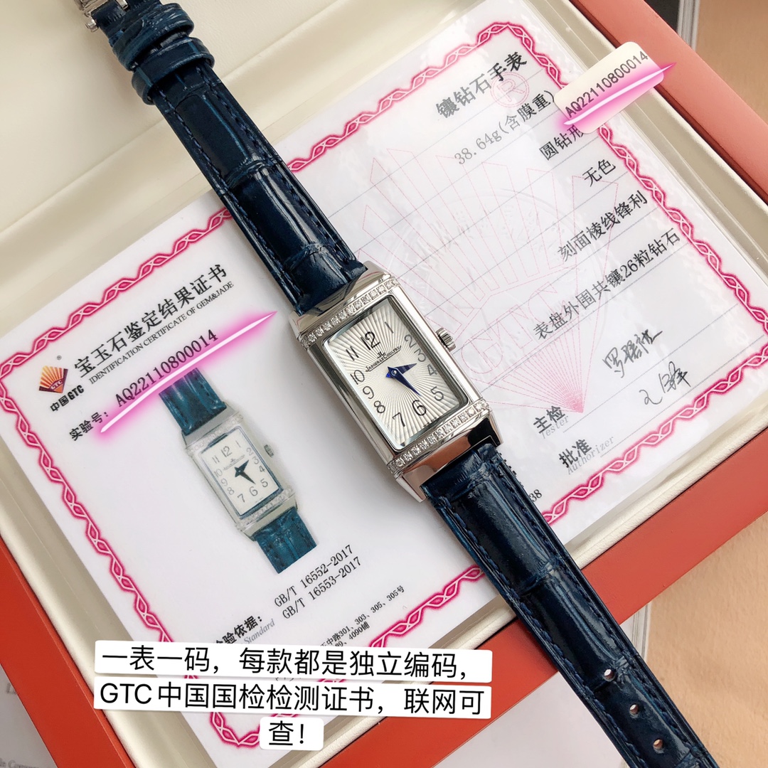 Reverso series watch, imported German 316 upgraded stainless steel version. Features delicate and slender line design, pure manual brushing craftsmanship, paired with jewelry British setting method 26 1.4 Vs grade full-cut diamonds (comes with China GTC national inspection certificate). Skillfully fits slender wrists, showcasing eternal imported craftsmanship. The legendary history behind the reversible case originates from the Reverso series watch, born from a challenge—to create a watch for British officers stationed in India that could withstand impacts during intense polo matches. Its case back can cleverly flip to the front, thus protecting the dial from accidental hits by polo mallets. The Reverso series watch was born in 1931, drawing inspiration from the simple lines of Art Deco, with a classic dial surrounded by a three-fold edge decoration, a design that continues to this day. Reversible case technology: each component is meticulously polished by German CNC (Computer Numerical Control) machine tools, with one case taking up to 8 hours, plus engraving, gem setting, or enamel painting. The strap is made from imported Mississippi alligator leather approved by China's wildlife management, with anti-counterfeiting certification labeled CNWM, indicating strict control over every step. The dial features Burgundy red guilloché patterned lacquer, and based on the Duetto dual-face and Duoface dual-time-zone design concept, the reverse dial showcases the exquisite watchmaking skills of the master craftsmen in the grand workshop.