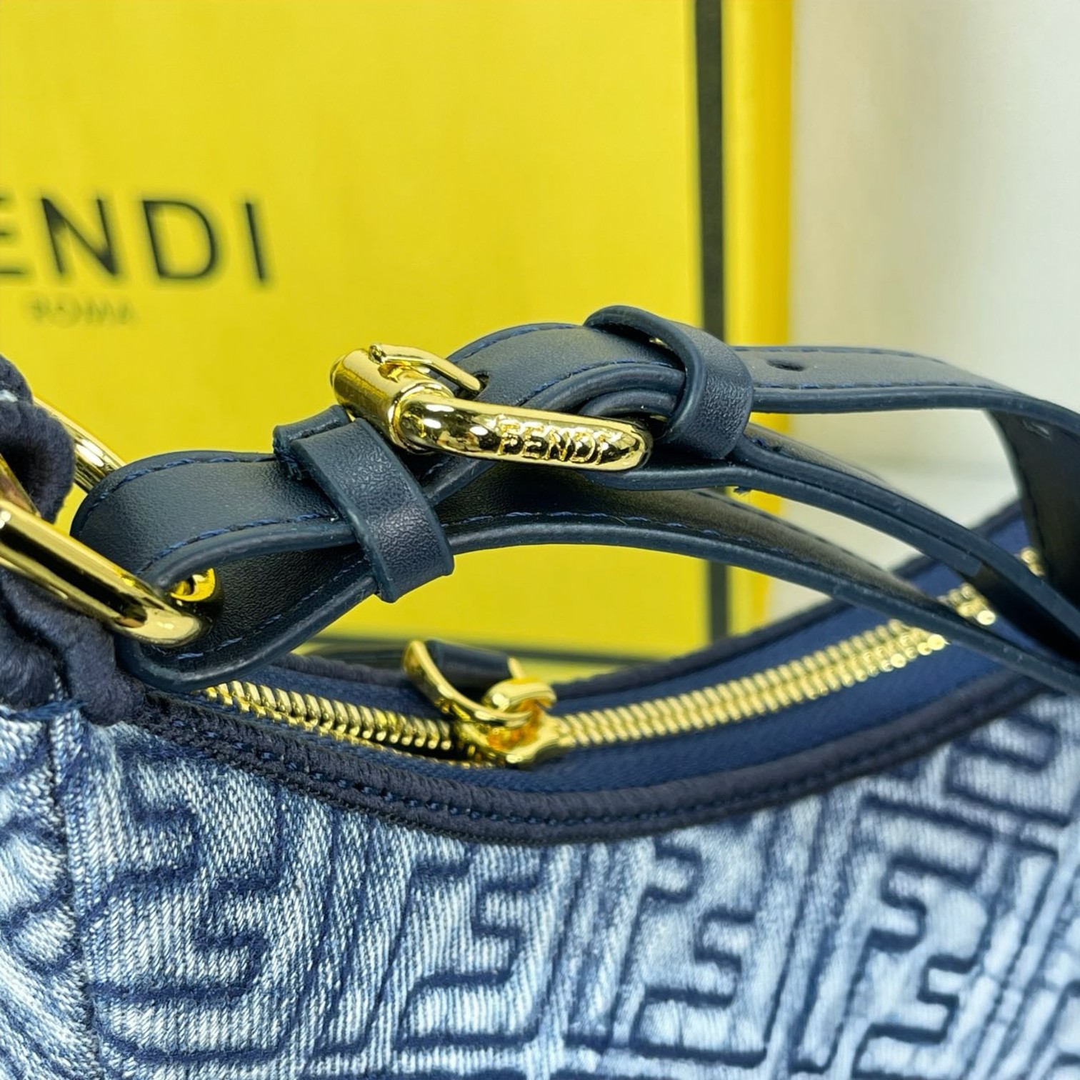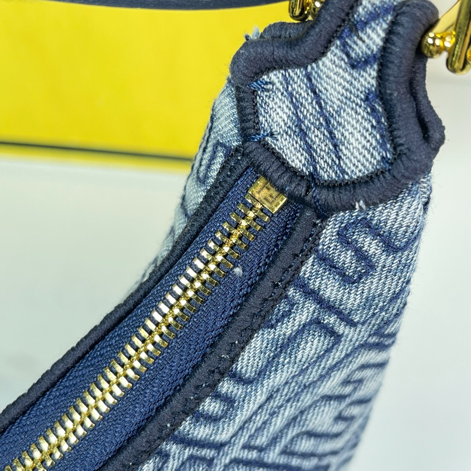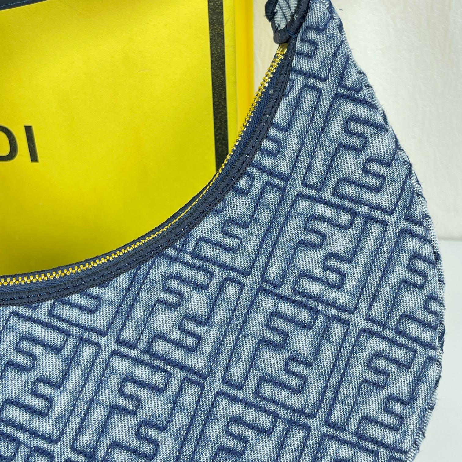 Factory Direct Sales ✽ New Medium Women's Half-Moon Bag Denim FF Embossed Underarm Bag. Denim F-embossed material, visible retro gold metal FENDI lettering when worn underarm. A versatile piece for summer outfits with a zipper closure. Size 24CM. To place an order, please add WeChat Hi881689.