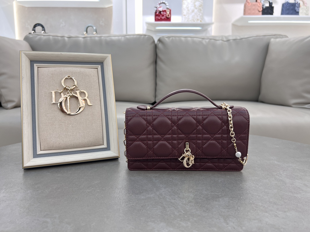 Lady Dior Pearl Clutch in Burgundy Calfskin