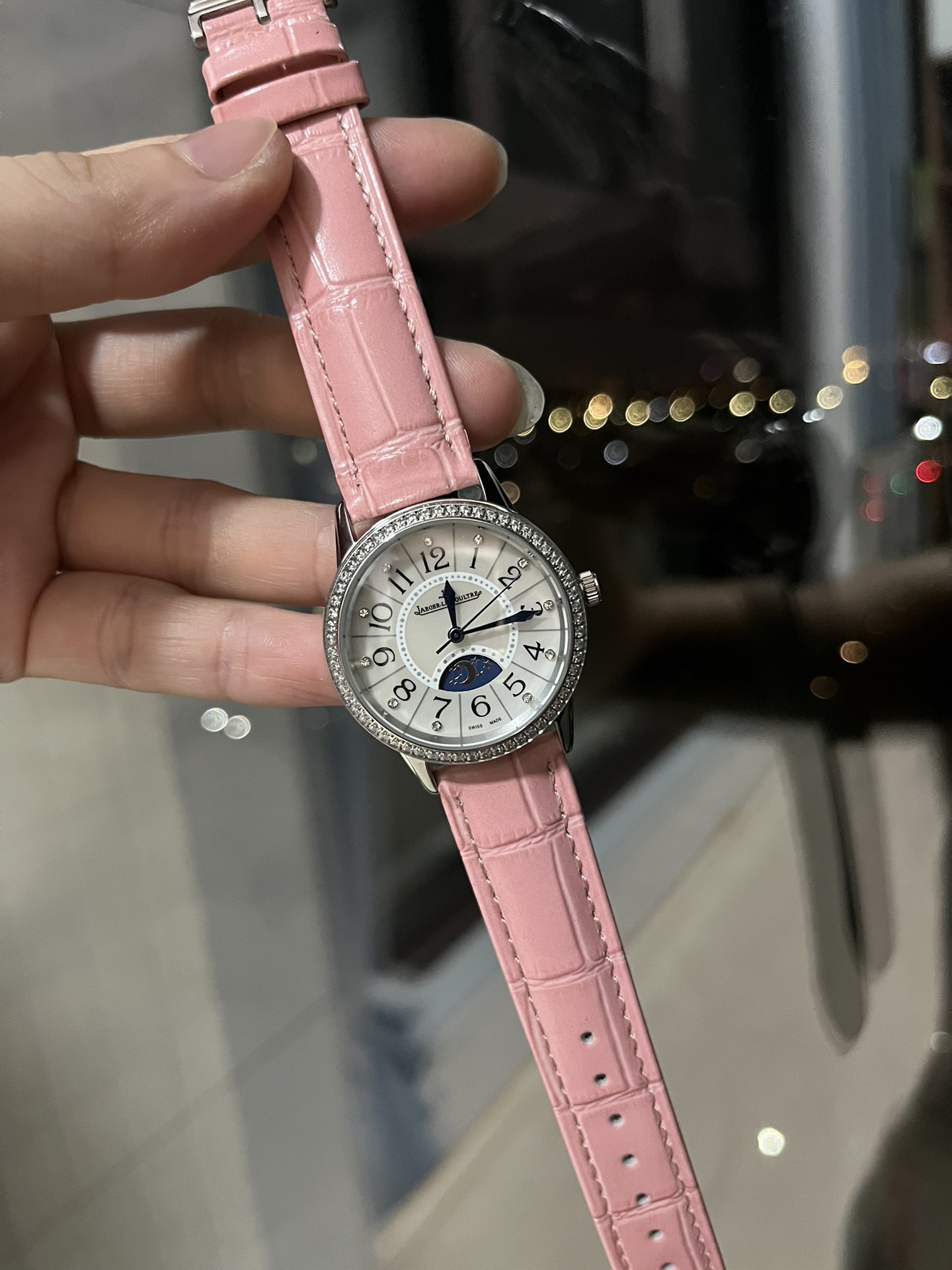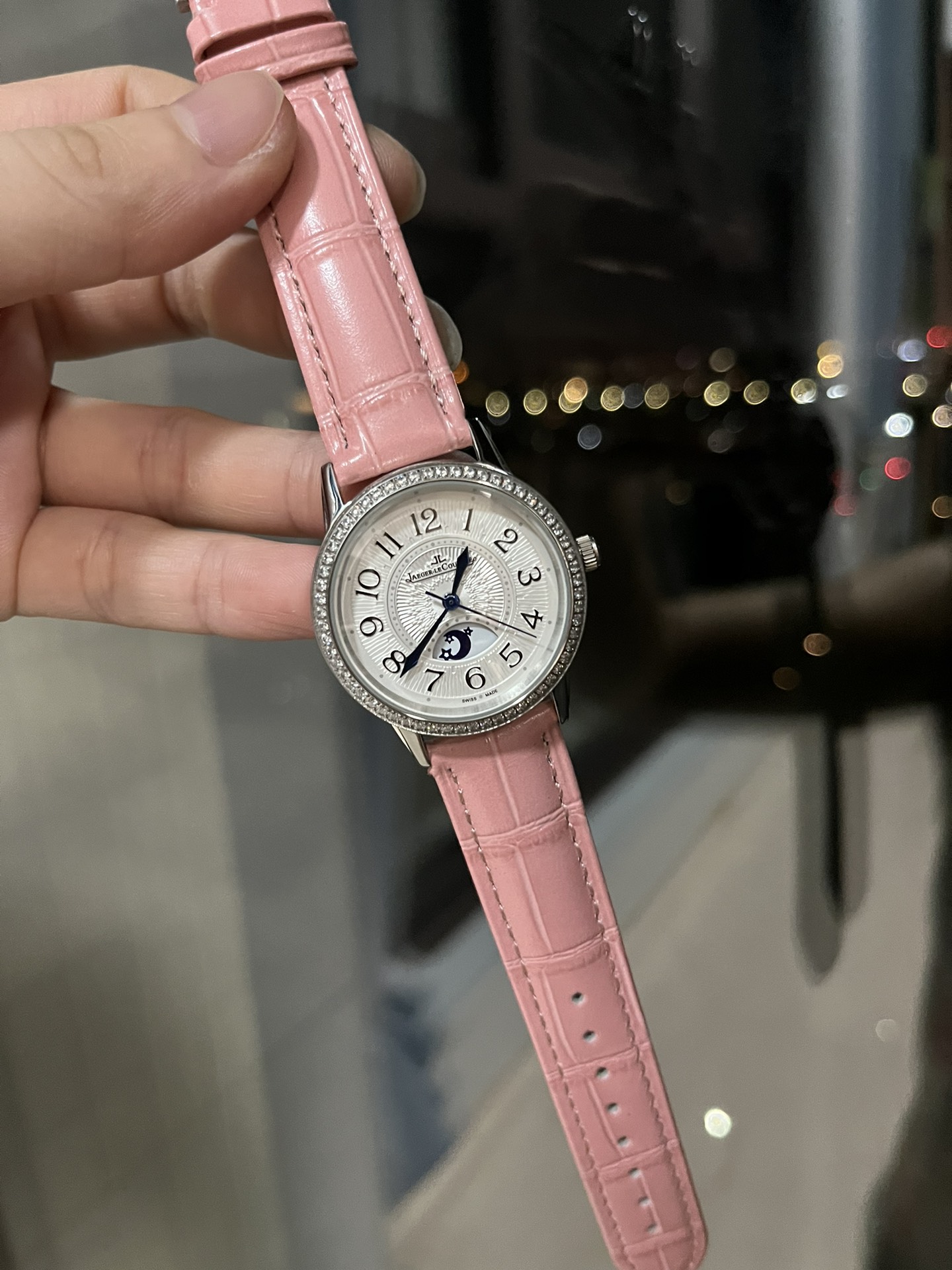 High-quality Jaeger-LeCoultre Rendez-Vous women's watch, sun, moon, and star display, imported quartz movement, original folding clasp/stainless steel strap, dimensions width 33mm, thickness 10mm.