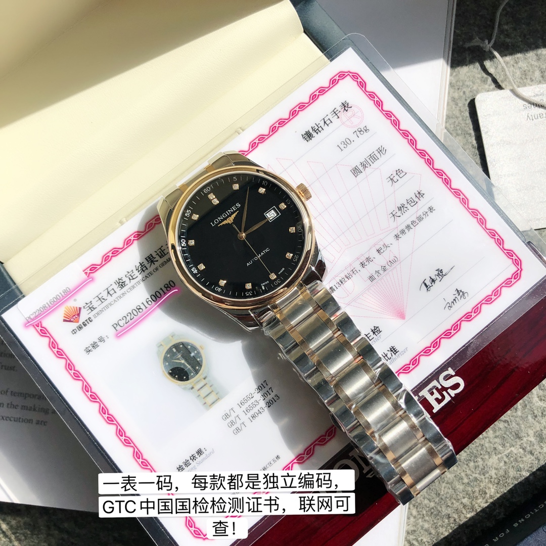 Top-tier luxury goods! Longines "Master Collection Real Gold Edition" – the "only one in the entire city" using genuine materials and real gold craftsmanship! The watch case, crown, and gold parts of the bracelet are made of authentic 18k gold plating, never worrying about fading. The thickness of the gold plating is clearly visible on the cross-section of the bracelet! Original century-old classic, ultra-thin design style presents a minimalist quality on the wearer's wrist. Case diameter 40mm, featuring a two-tone gold triple-fold safety clasp and push-button opening mechanism, "see-through" Swiss fully automatic mechanical movement, with the movement's dynamics clearly visible! Water resistance up to 30 meters, lug width 21mm. The dial features a white "barley grain" pattern, and each watch comes with a genuine gold certificate issued by China's authoritative GTC certification body, ensuring that every watch is made of genuine 18k gold plating. Each watch has a unique number, and every certificate has a unique serial number without repetition. Scan the QR code on the institution's official website to verify authenticity. Blued steel polished hands, scratch-resistant synthetic sapphire crystal glass, adorned with elegant numeral hour markers, complementing the simple and aesthetically pleasing central blued steel large three hands, making time display clear and intuitive. The movement uses the Swiss 2892 observatory-certified highest grade fully automatic mechanical movement, with original parts from factory channels. The bracelet, clasp, and case are all manufactured to the Swiss factory-specified standard using 316 stainless steel for superior wear resistance and corrosion resistance! Ultra-clear English and numeric information on the case back, visible craftsmanship of hand color and length, one watch one code, with the case back code, hang tag, and warranty card having three matching codes. Protective film intact, supports returns and exchanges. The movement is covered by a lifetime free warranty for non-human damage.