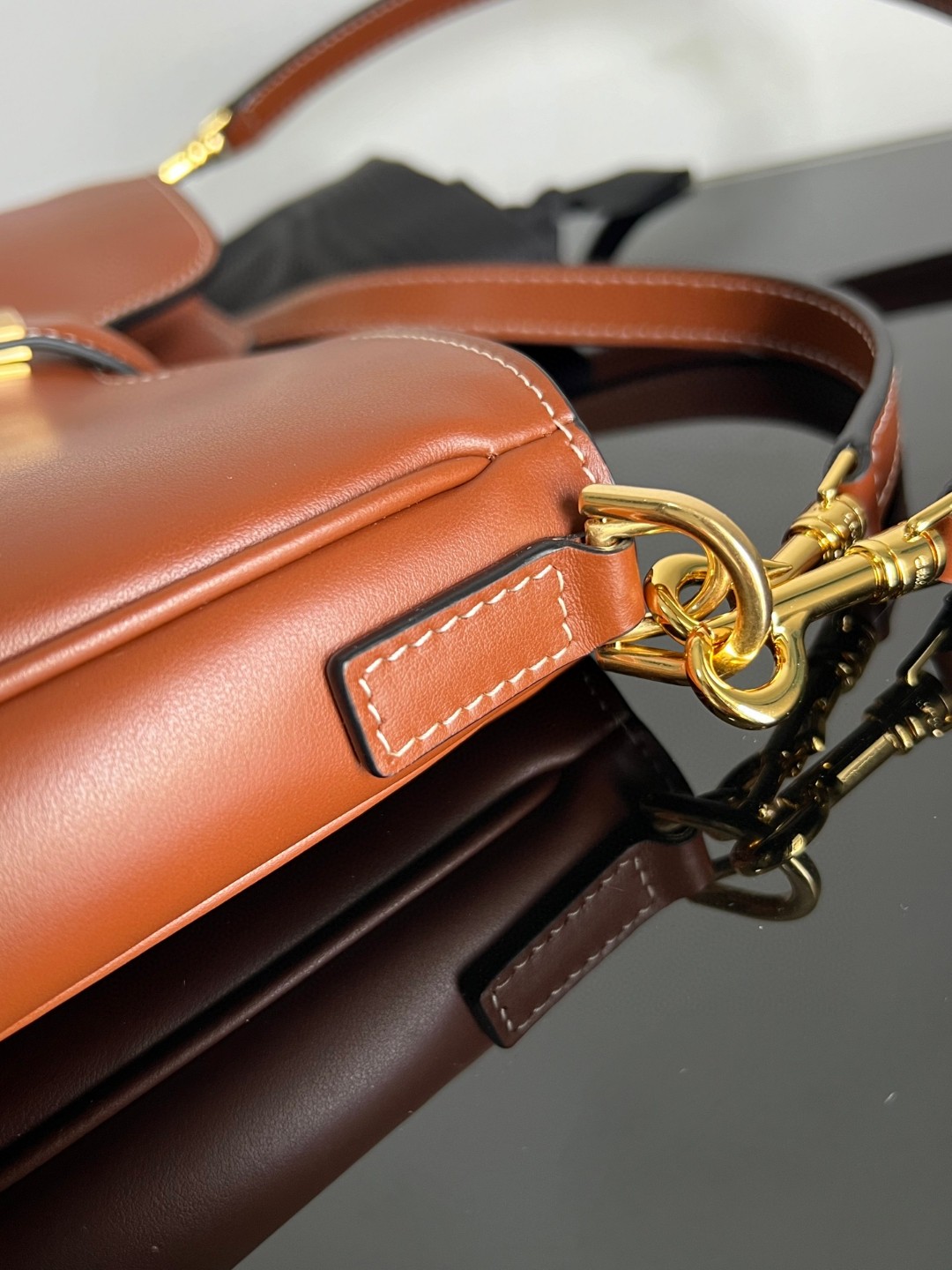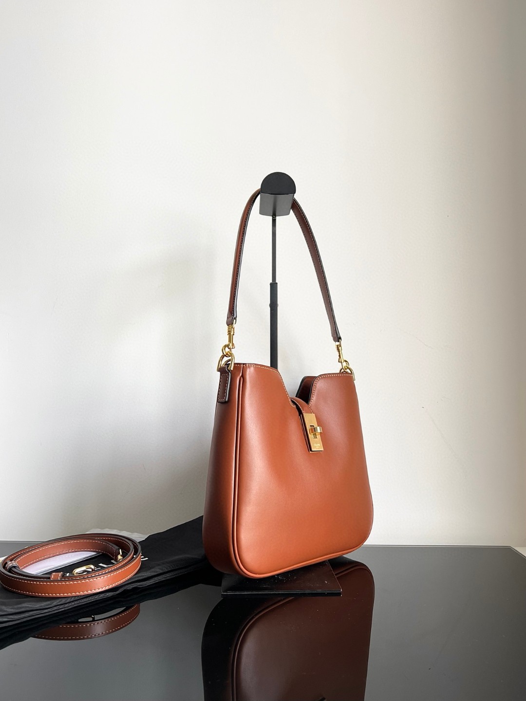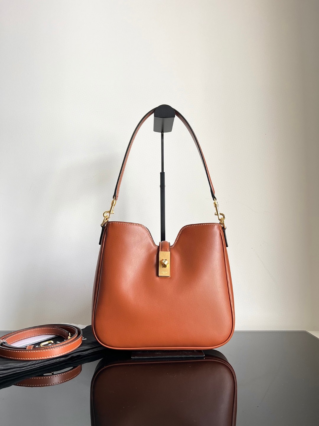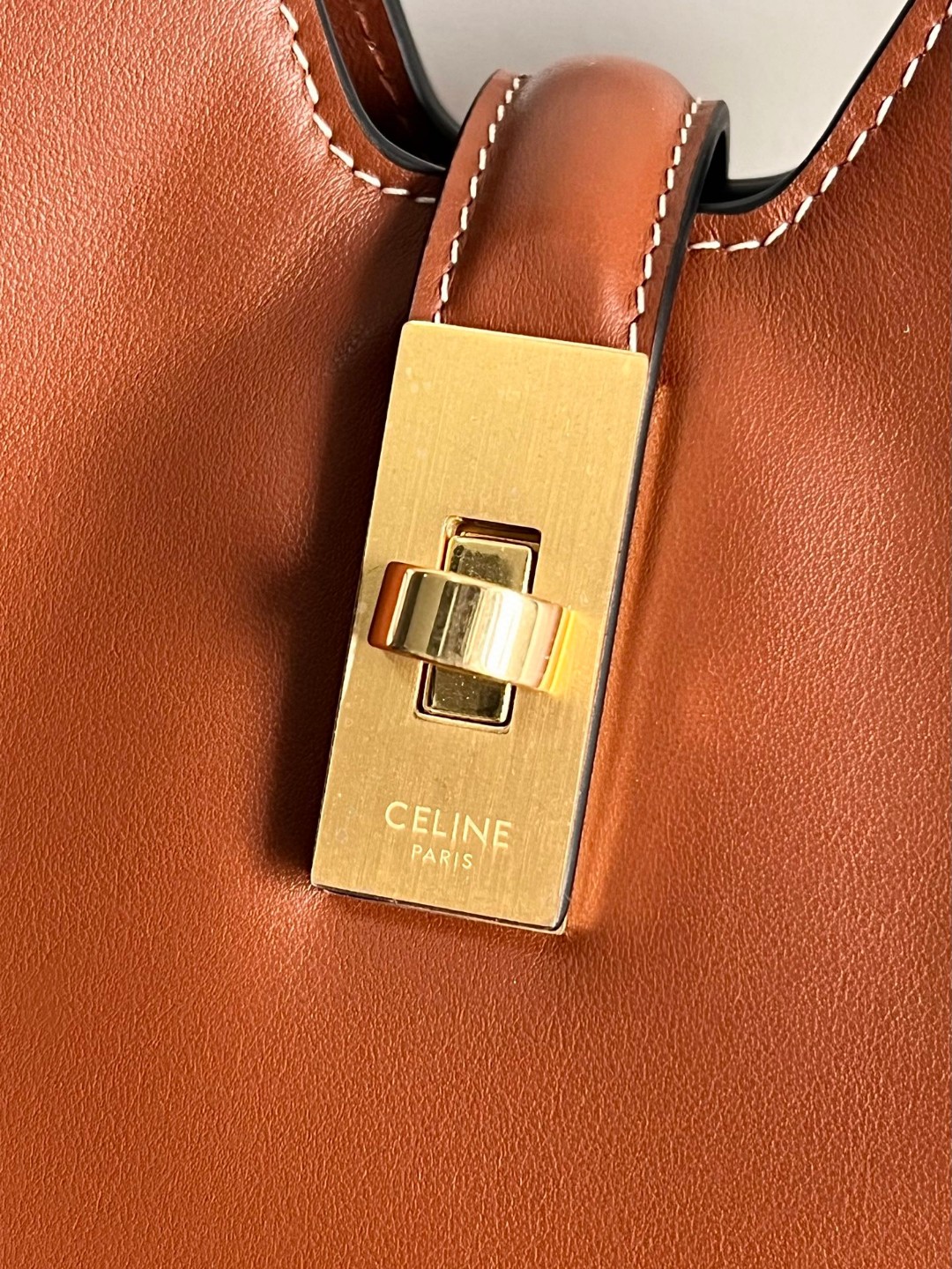 Celine CAMILLE 16 2025 New SOFT Small Smooth Calfskin Handbag This model cannot accommodate larger tablets such as the iPad. Calfskin with lambskin lining. Can be carried by hand, on the shoulder, or crossbody. Rotating lock closure. 1 main compartment, 1 inside zippered pocket, 1 detachable handle/shoulder strap with a length of 8.6 inches (22 cm), 1 detachable and adjustable shoulder strap measuring 9.7 x 8.5 x 2 inches (24.5 x 21.5 x 5 cm), suitable for crossbody wear. Minimum length 16.5 inches (42 cm), maximum length 19 inches (48 cm).