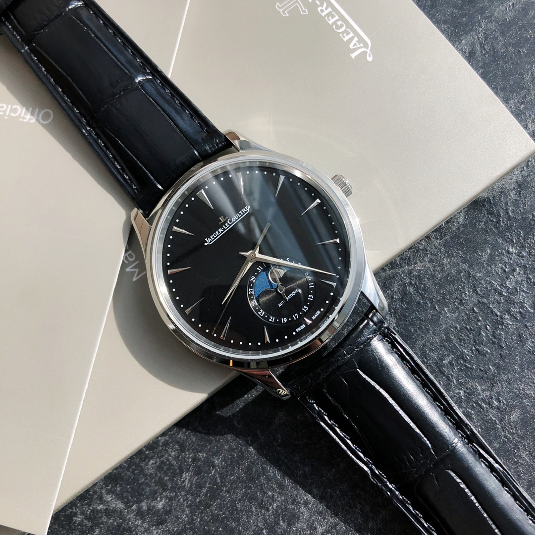 Jaeger-LeCoultre Master Moon Phase men's watch, 2021 new model. 39mm case, 9.9mm thickness. Dual calendar and moon phase display at 6 o'clock. Replicated Cal.925/1 movement with full functions.