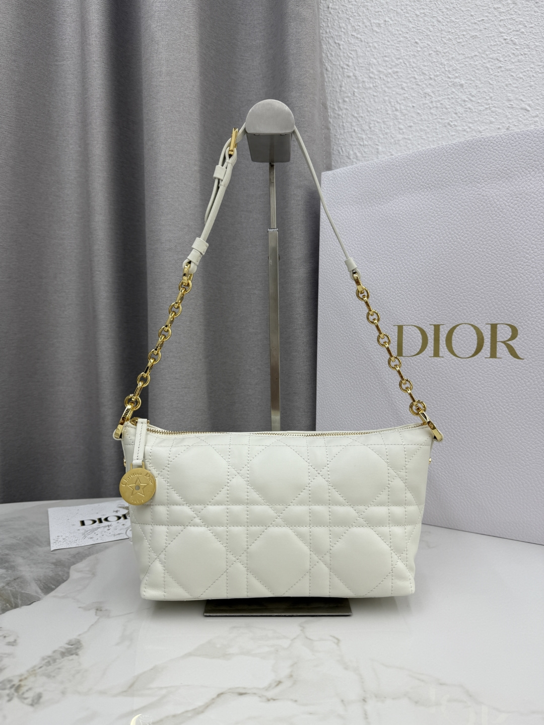 Diorstar Hobo chain bag in white lambskin.