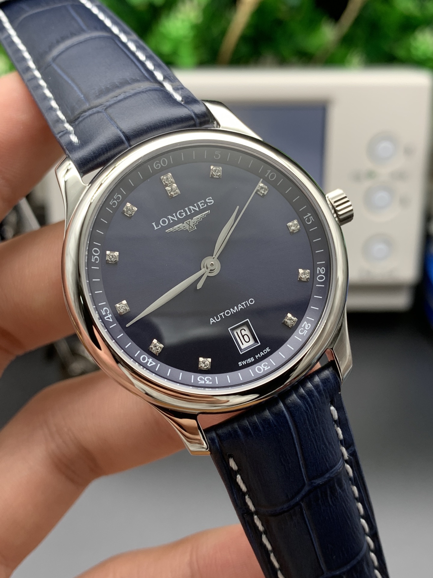 Longines Elegance quartz watch for women, 38.5mm for men, 24mm for women. Swiss L209 movement, sapphire crystal, stainless steel case, classic design.
