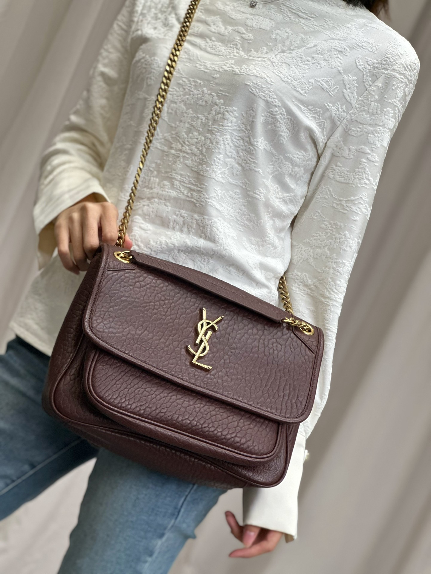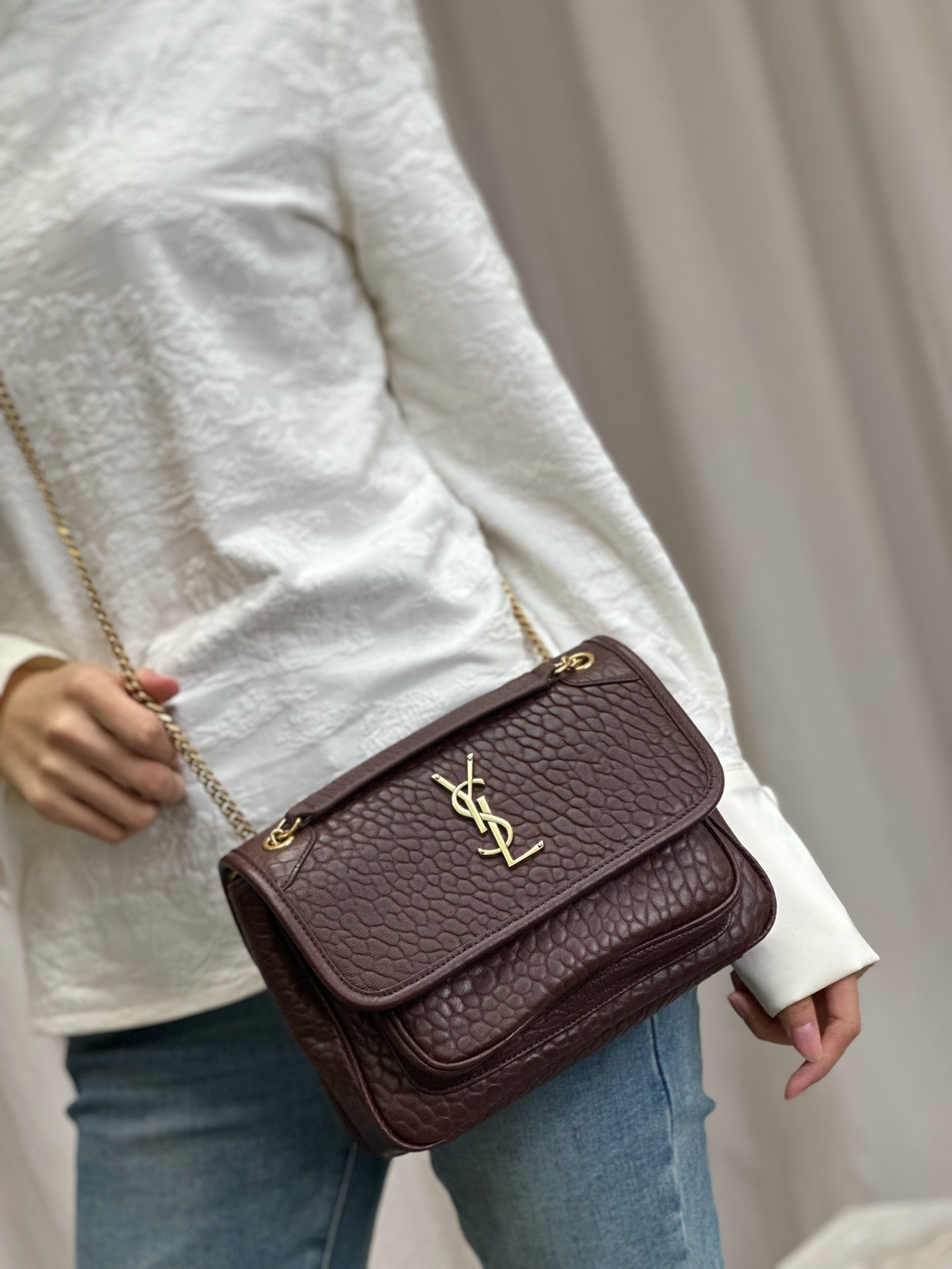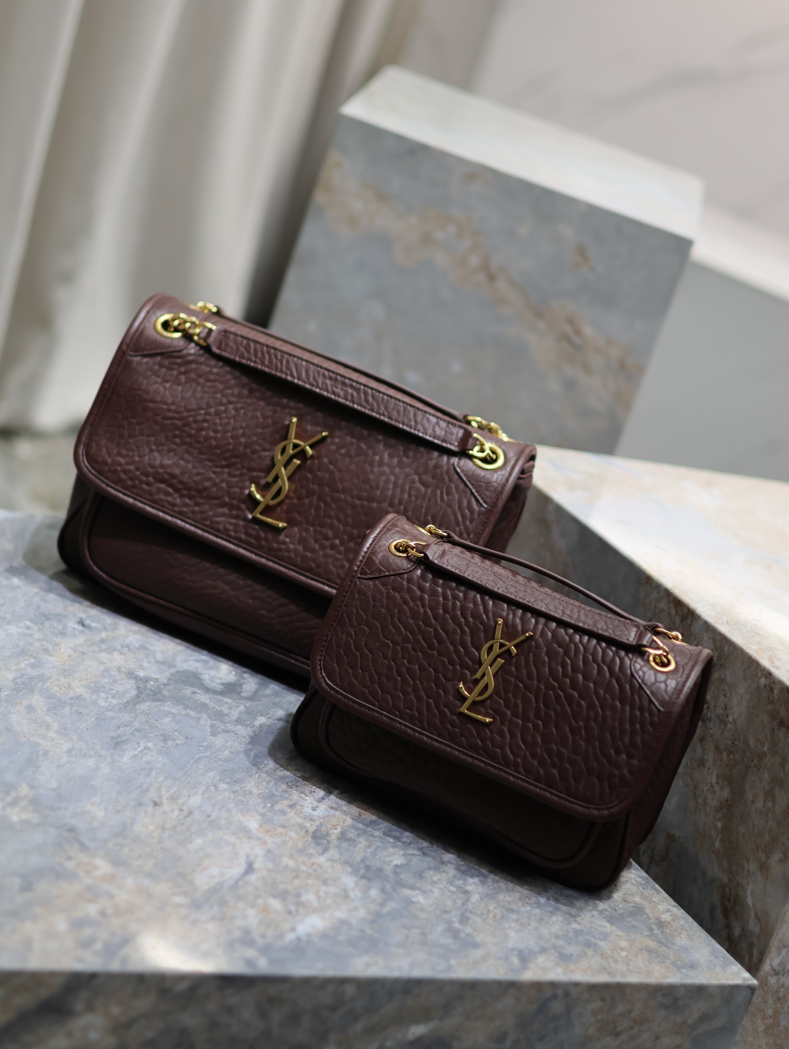 Niki_ Coffee-colored elephant print with gold buckle