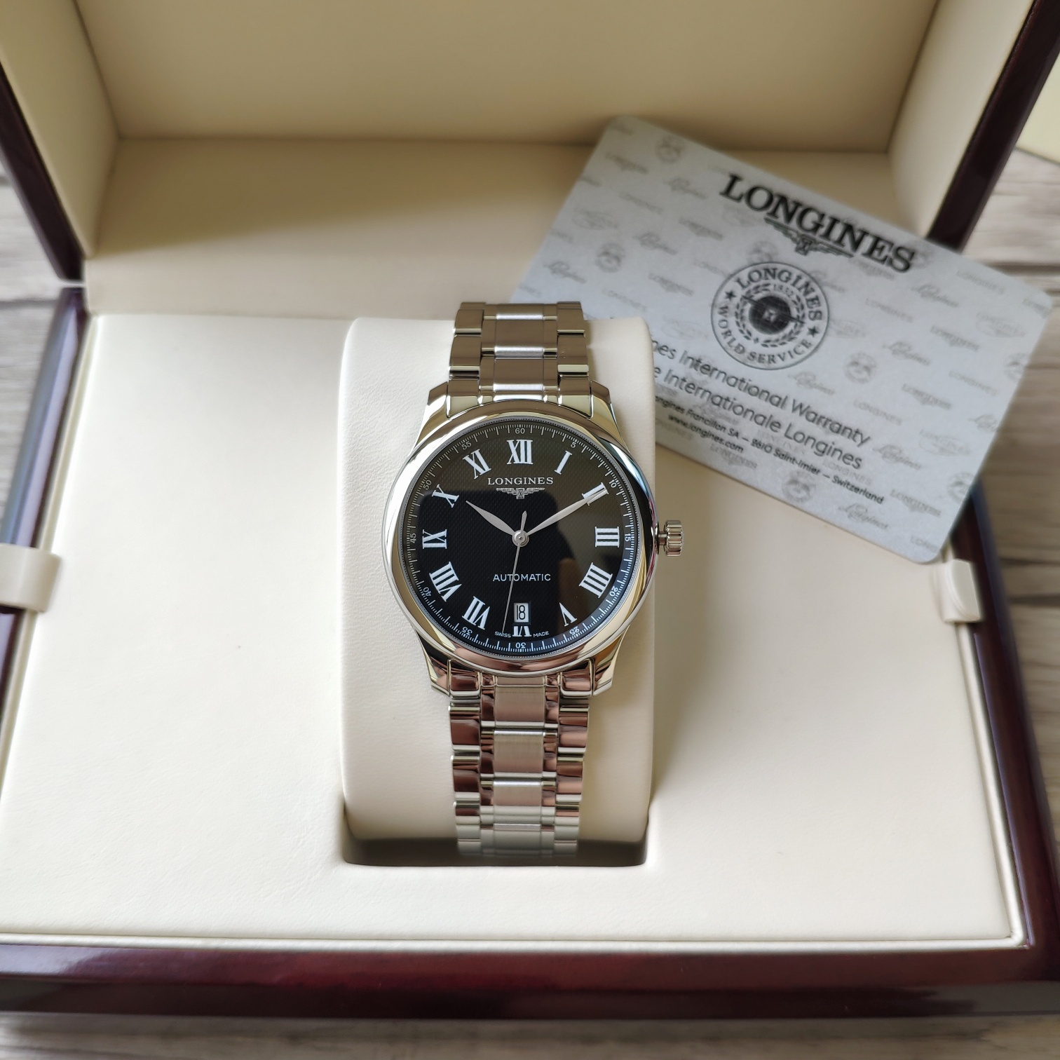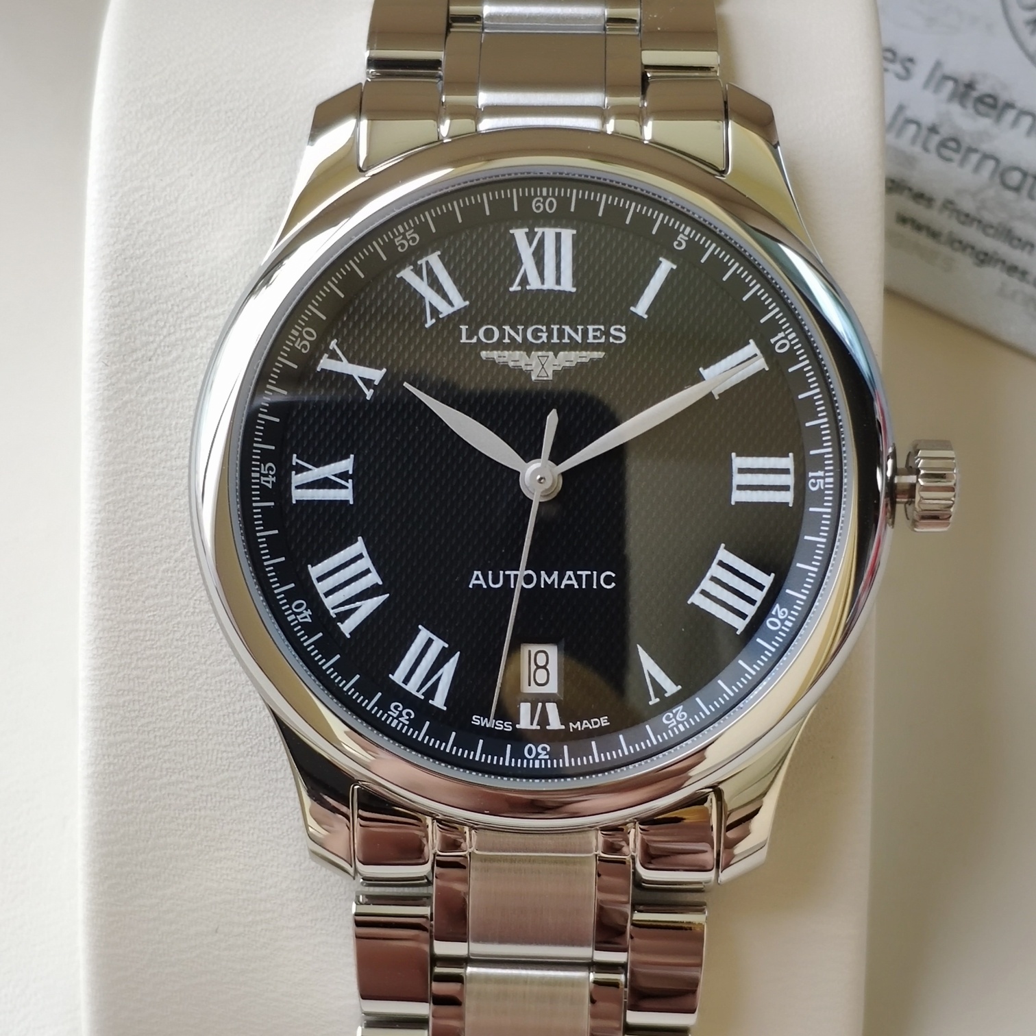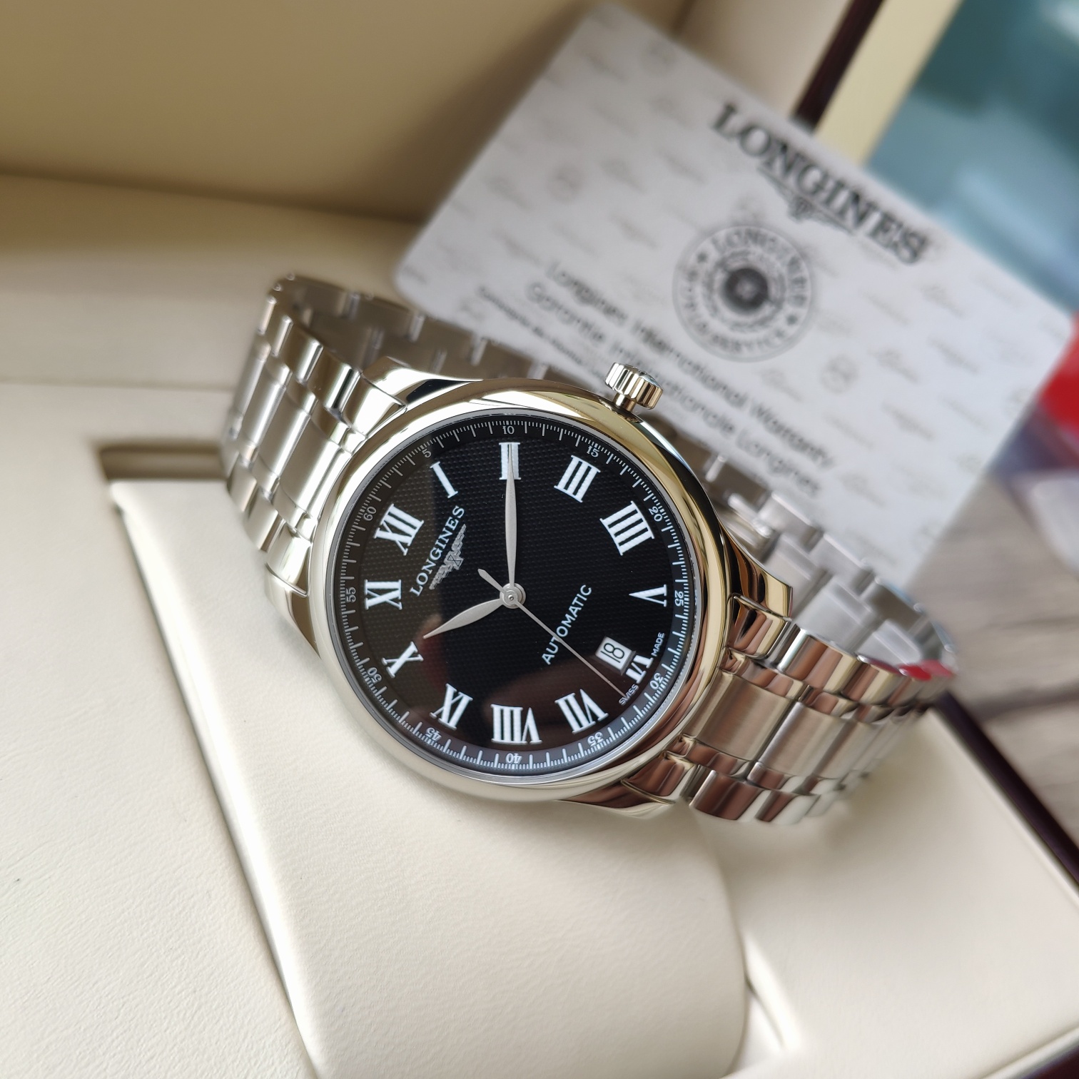 Genuine authentic product! A century-old classic, the Longines Master Collection showcases the wearer's wrist with full minimalist quality. It features a highly sporty stainless steel case with a diameter of 40 mm. Adorned with elegant black Roman numeral hour markers, it complements the simple and aesthetically pleasing central blue steel大三针 (three hands), presenting time clearly and intuitively. The movement uses the highest grade EAT2892 observatory (blue nail) and comes with original配件 from the代工厂 channel. The 316 stainless steel case and strap support inspection!
